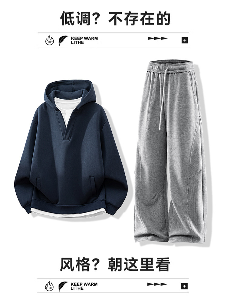 NASA ABOUT 남성용 아메리칸 캐주얼 스포츠 슈트 가을 신상 루즈 후드 스웨트셔츠와 바지 세트