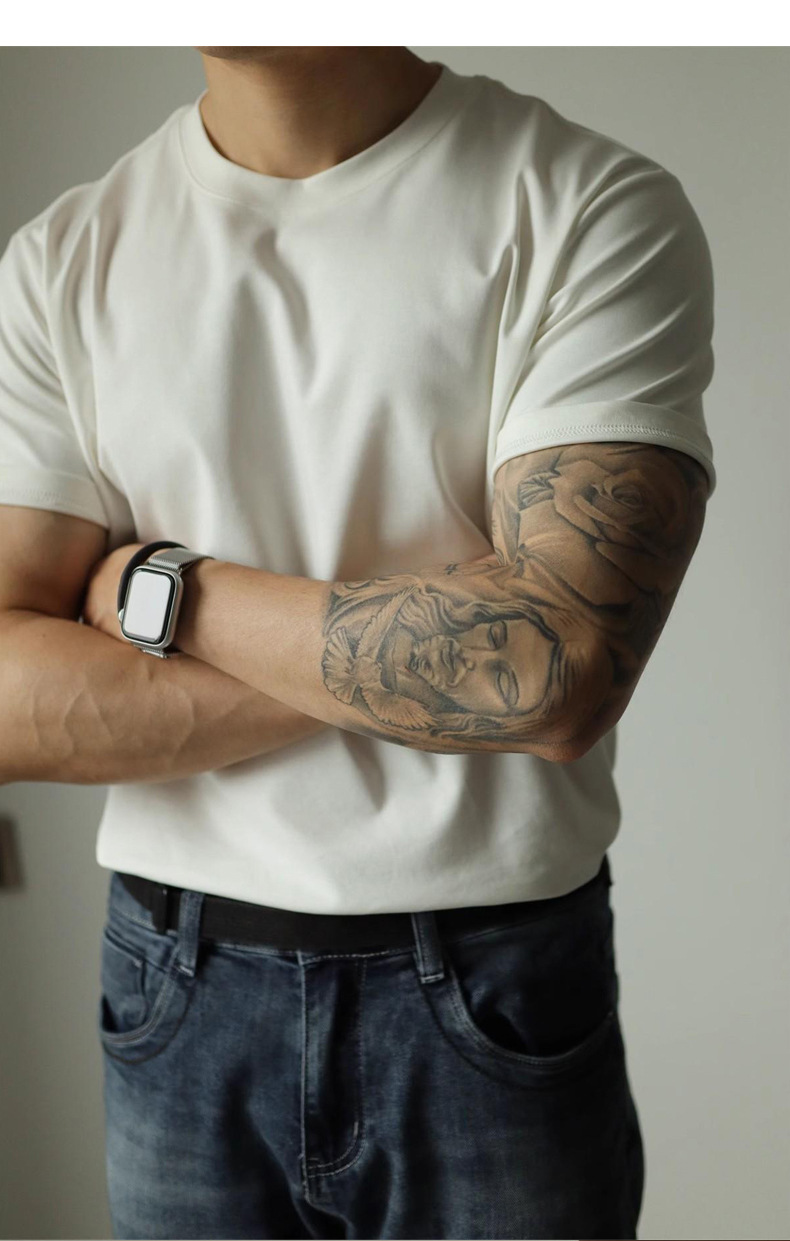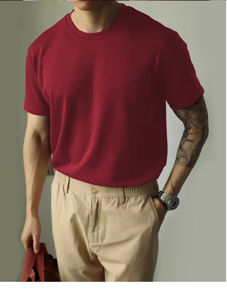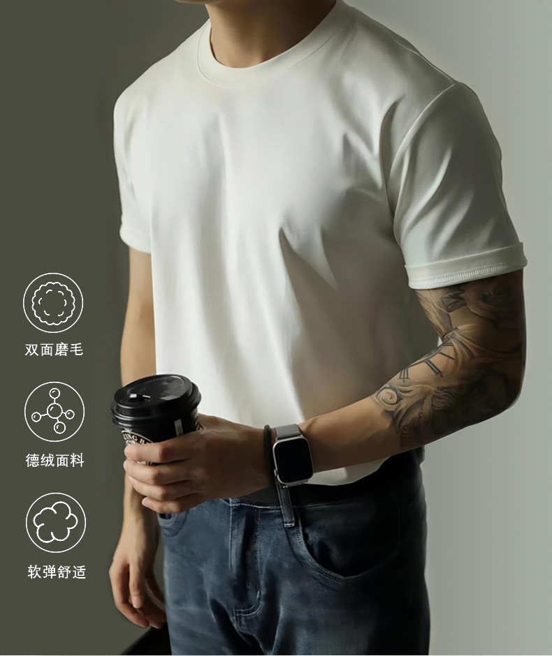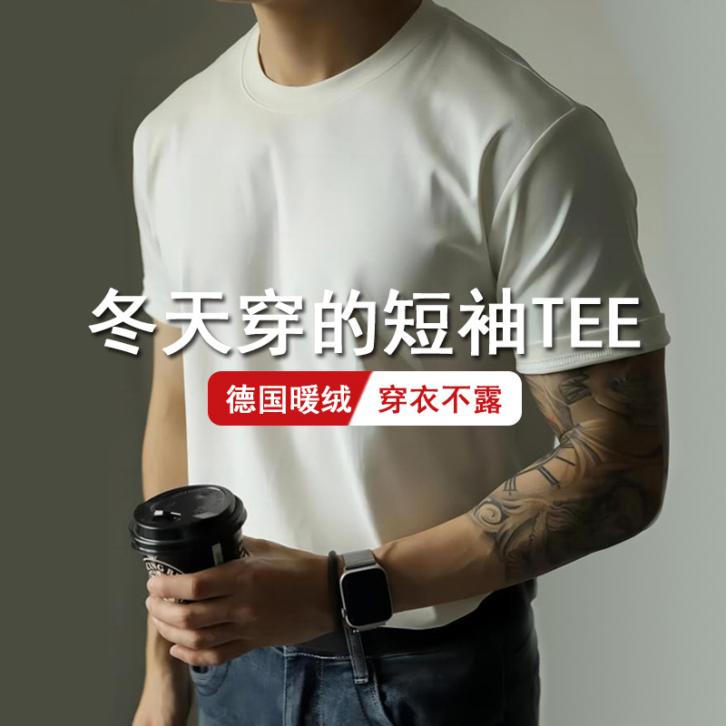 남성용 기모 티셔츠, 헤비급 독일 벨벳, 새로운 따뜻한 반팔 바닥 셔츠, 라운드 넥, 다재다능한 트렌디 브랜드, 내부 및 외부 착용
