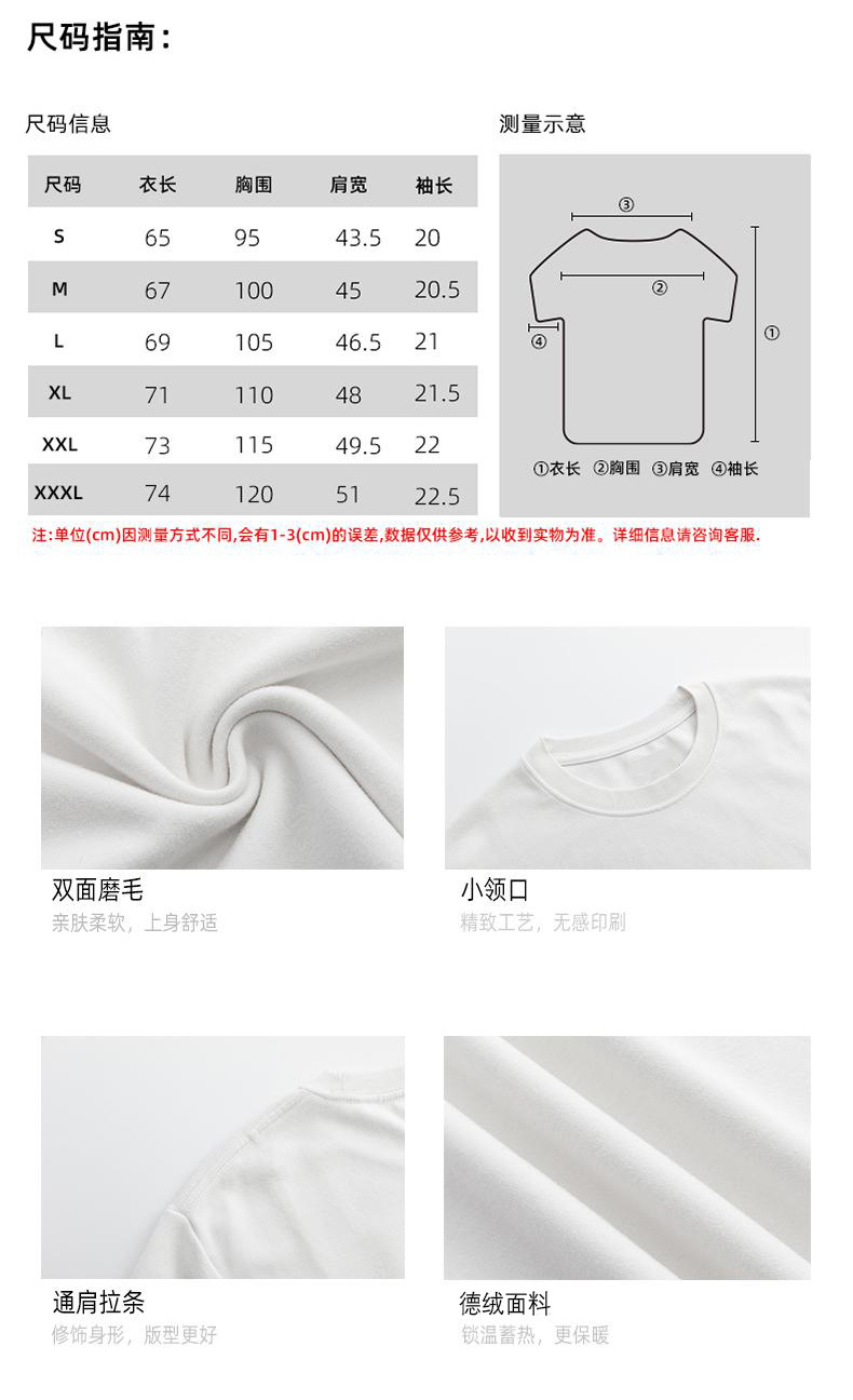 | 领型 | 圆领 | 袖长 | 短袖 |