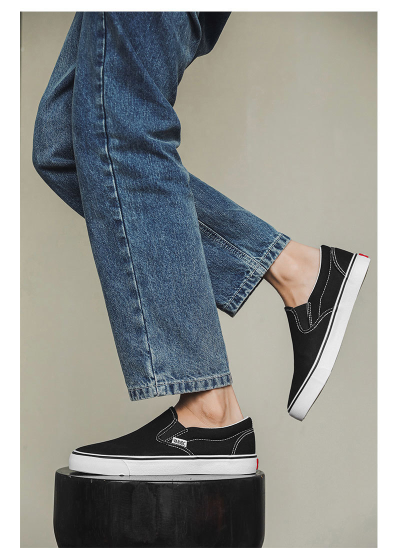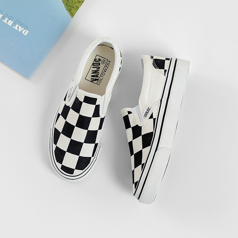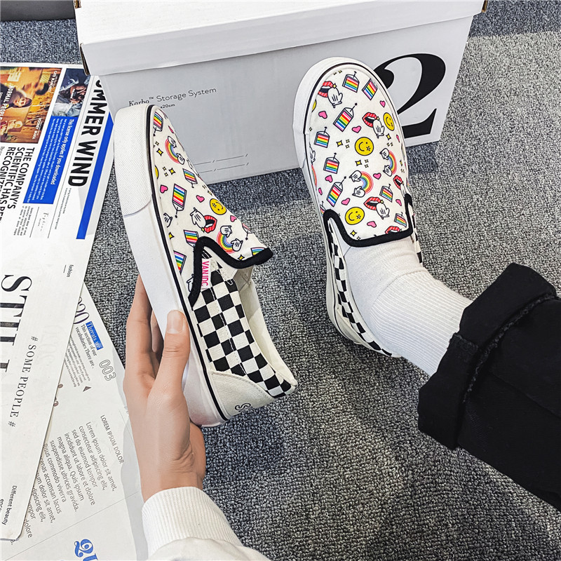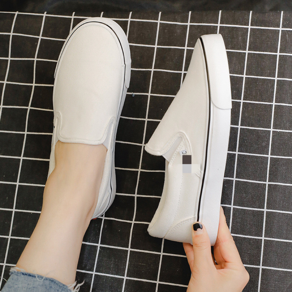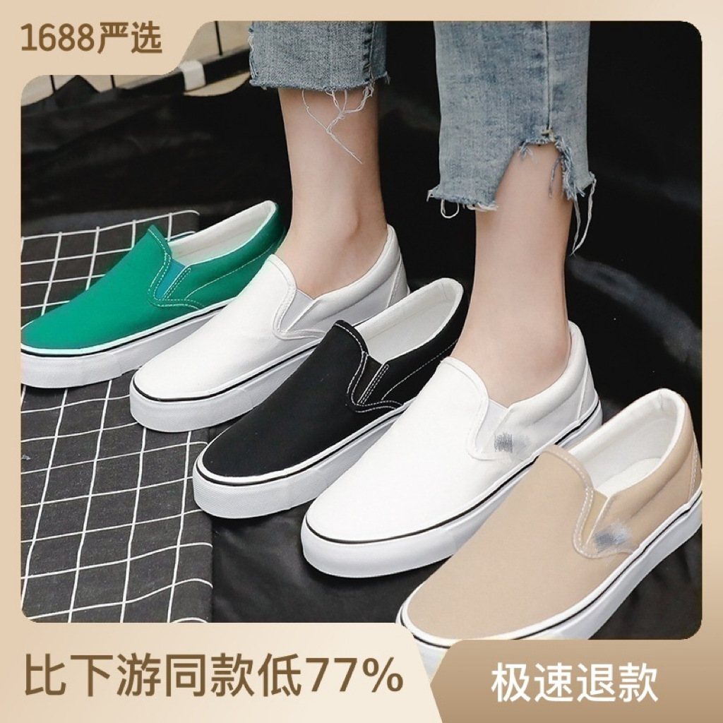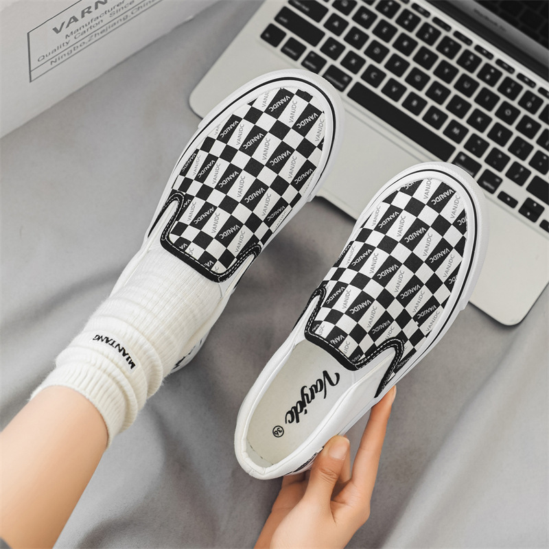 여성과 남성을위한 캔버스 신발 2025 봄 새로운 슬립 온 슬립 온 신발 학생 캐주얼 플랫 신발 한국 스타일 커플 신발