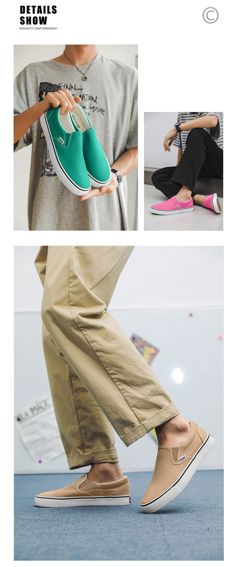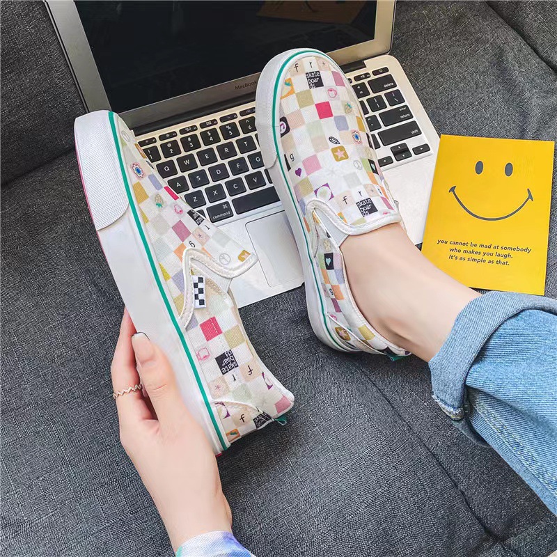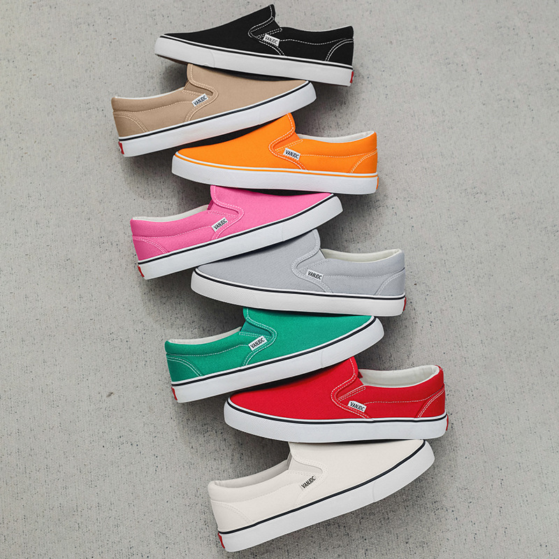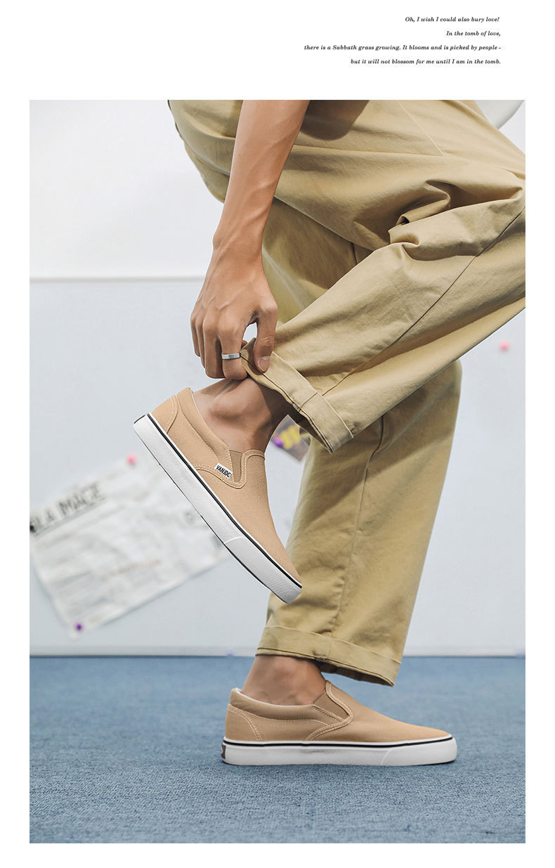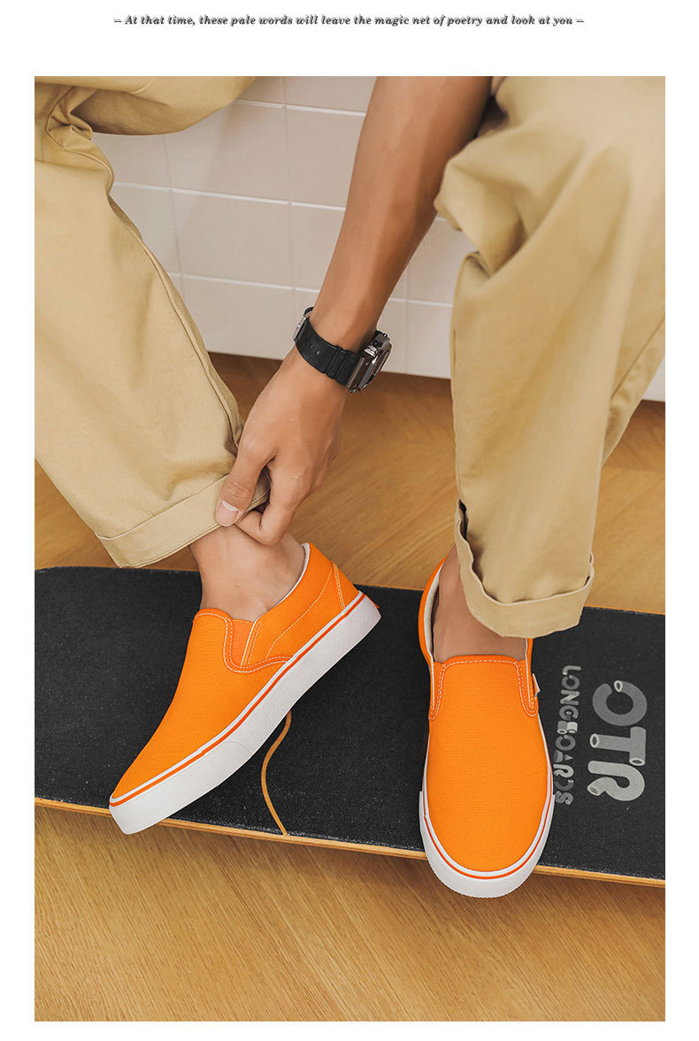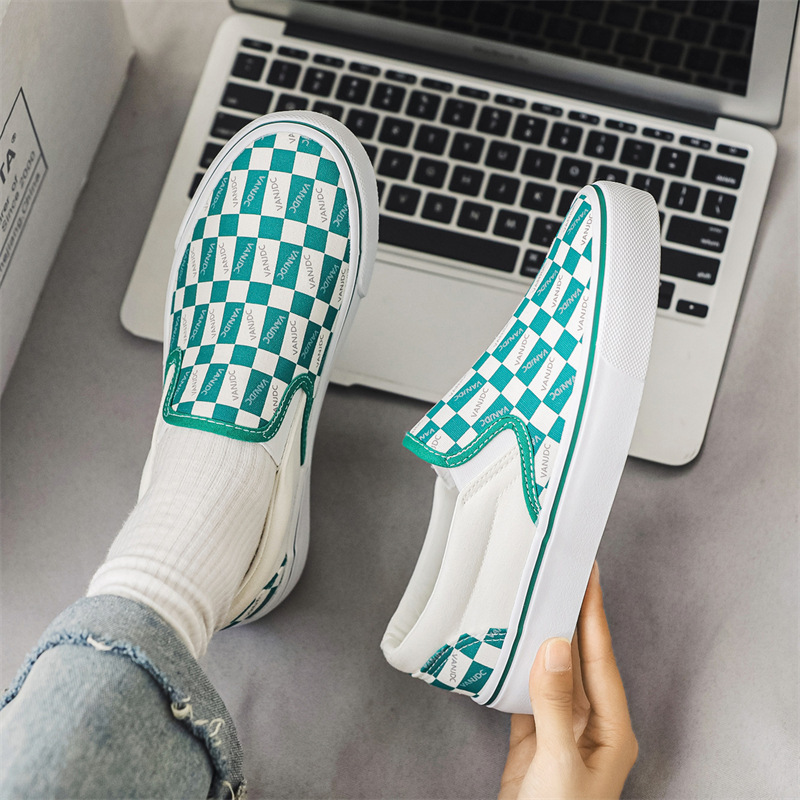 여성과 남성을위한 캔버스 신발 2025 봄 새로운 슬립 온 슬립 온 신발 학생 캐주얼 플랫 신발 한국 스타일 커플 신발