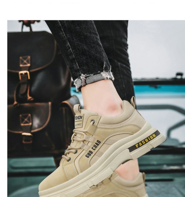 남성 신발 가을, 겨울 두꺼운 밑창 작업 미끄럼 방지 내마모성 남성 노동 보호 유행 신발 2025 새로운 마틴 부츠 학생 신발