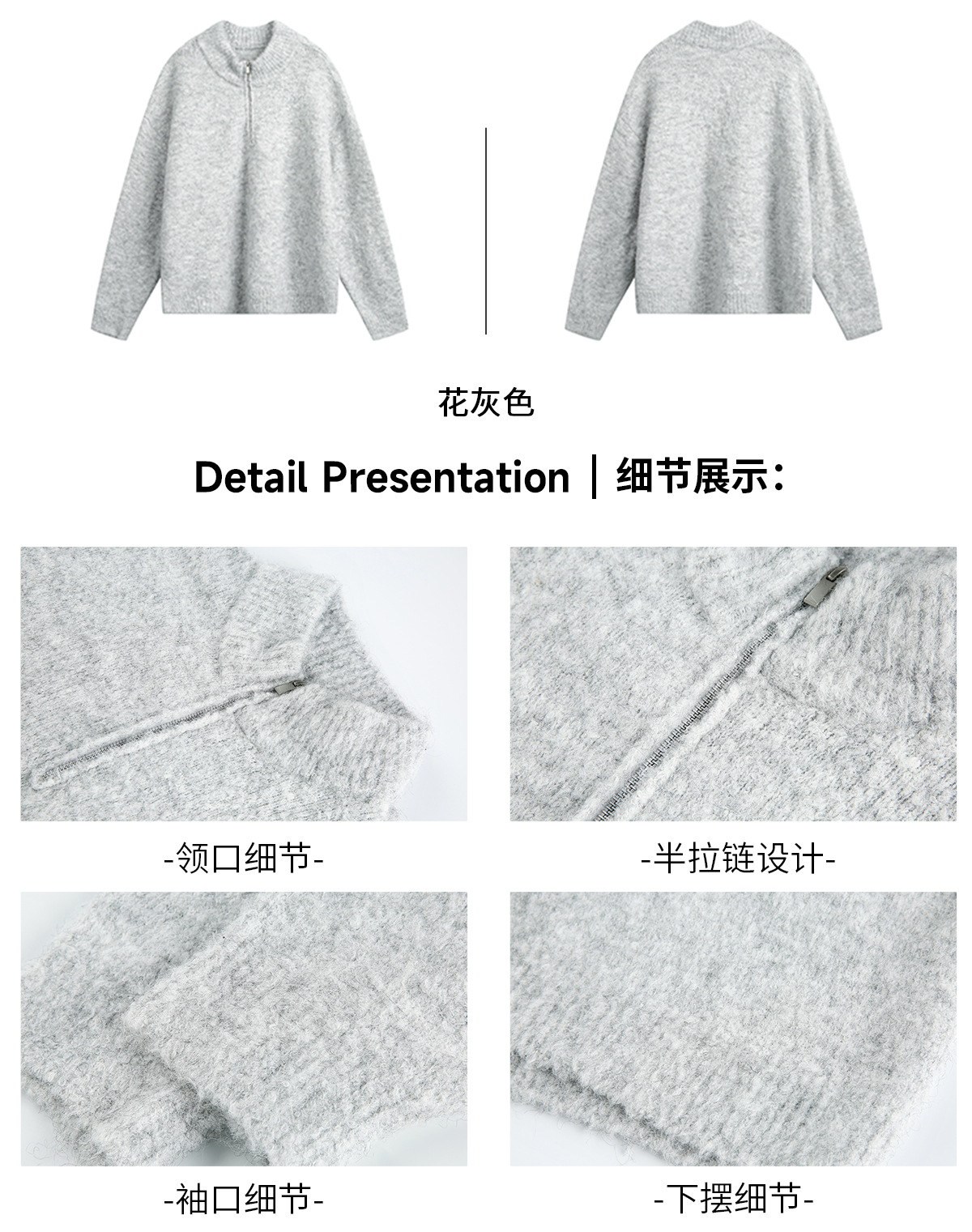 | 颜色 | 碳灰色, 花灰色, 燕麦色 | 尺码 | M, L, XL, XXL |