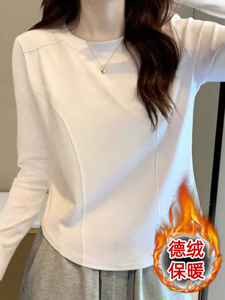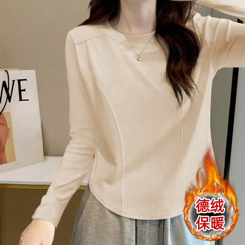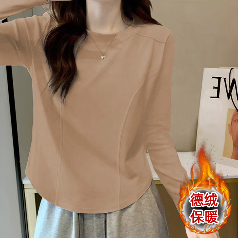 작고 게으른 스타일의 가을 겨울 독일 벨벳 다용도 라운드 넥 프렌치 긴팔 양면 따뜻한 티셔츠 여성용 이너 탑