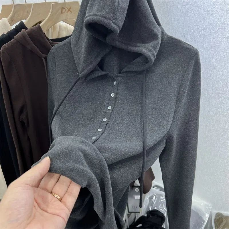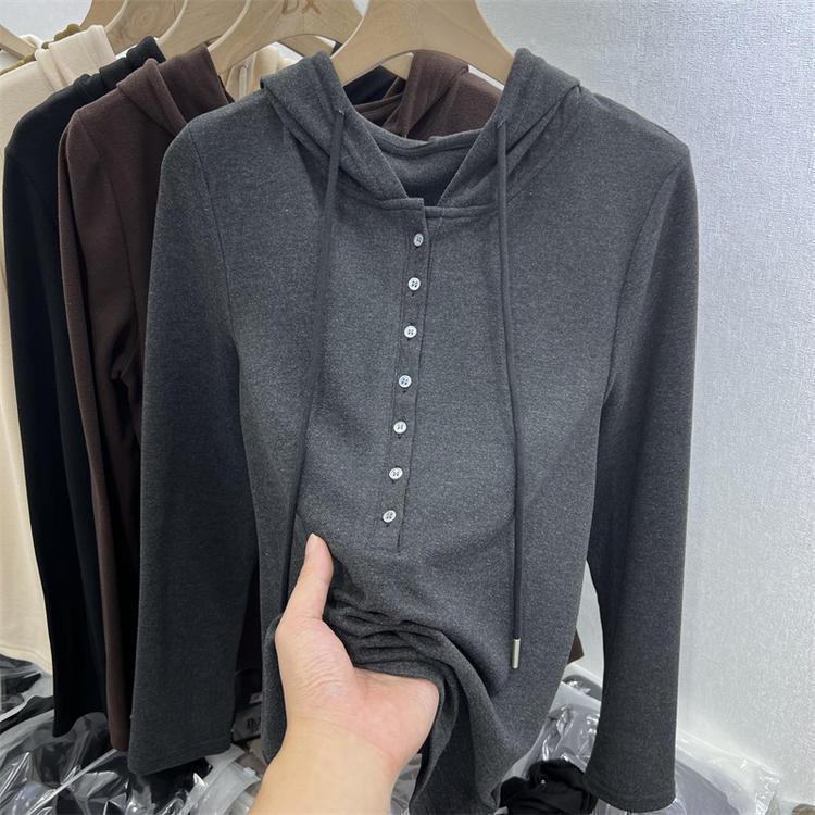 매우 부드럽고 왁시한 양면 독일 벨벳 후드 긴팔 벨벳 따뜻한 베이스 레이어 가을 겨울 새로운 스타일의 작은 셔츠 다용도 탑