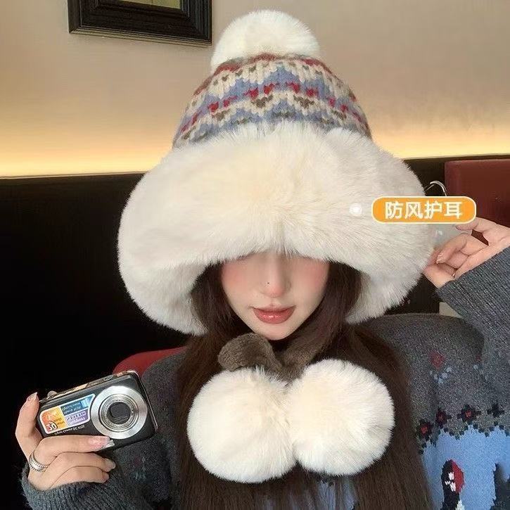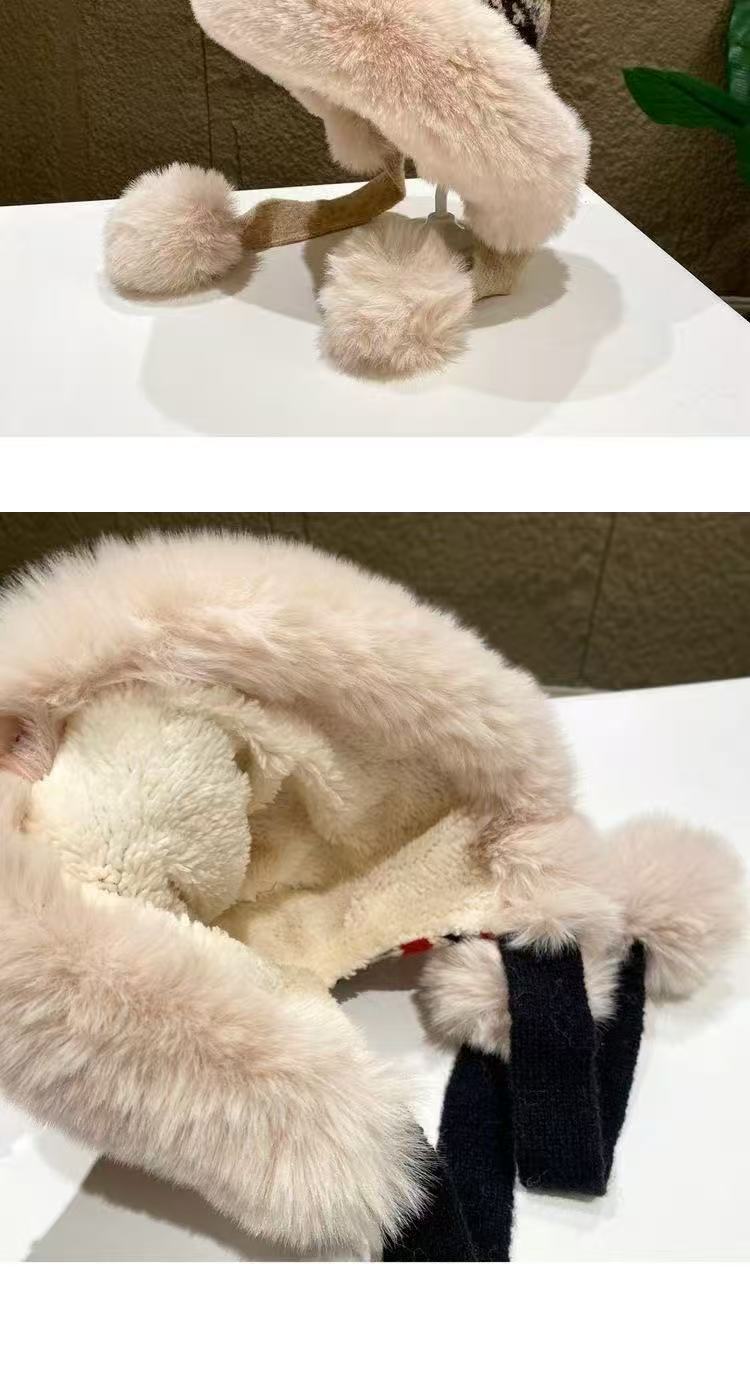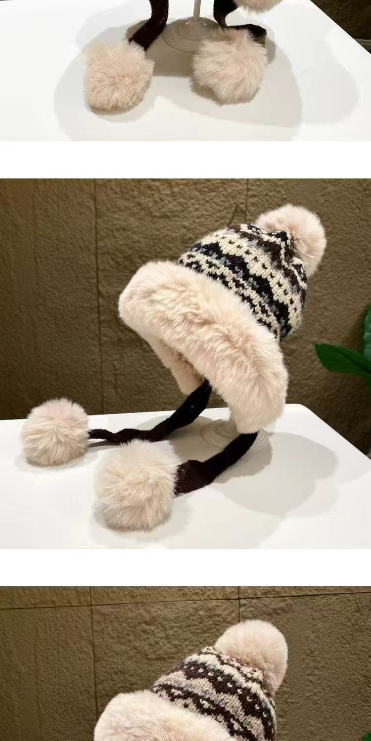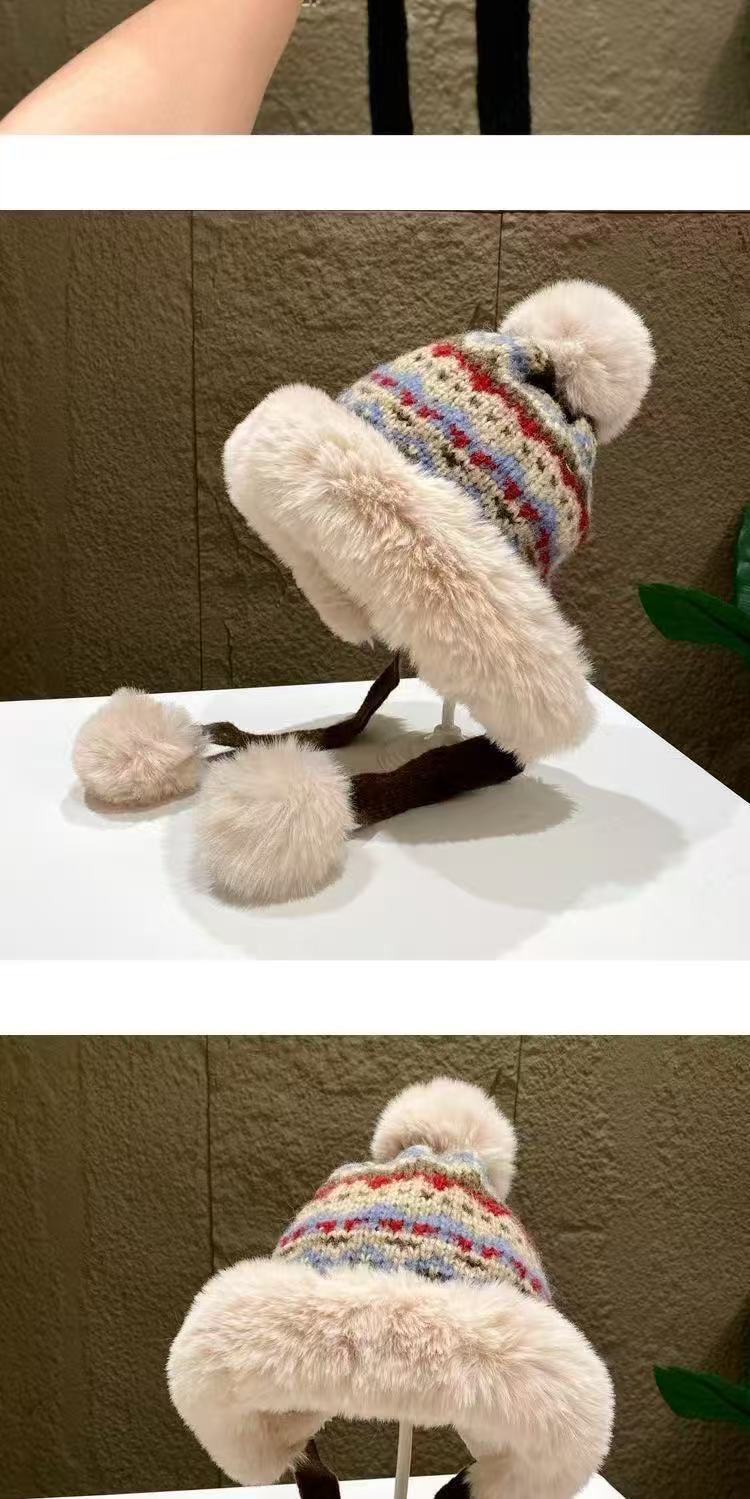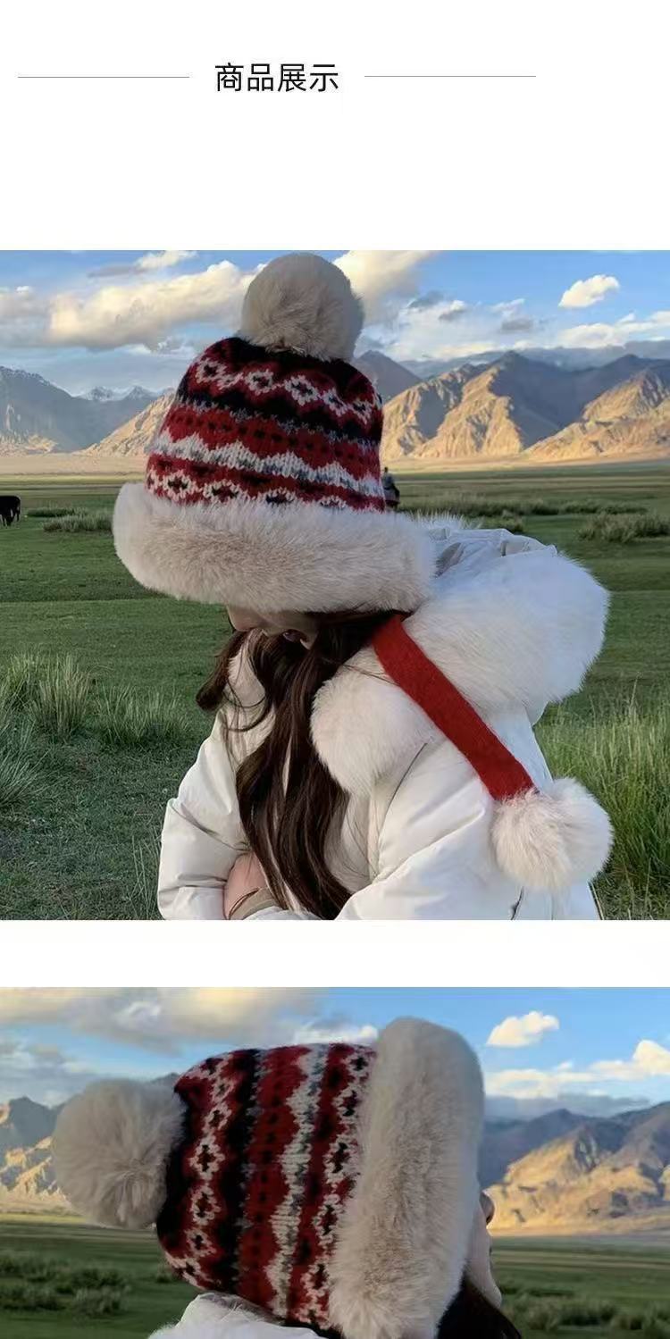 여성을 위한 겨울 두꺼운 민족 따뜻한 플러시 레이펑 니트 모자, 방한 및 귀 보호 기능이 있는 벨벳, 인기 있는 북동부 모직 모자