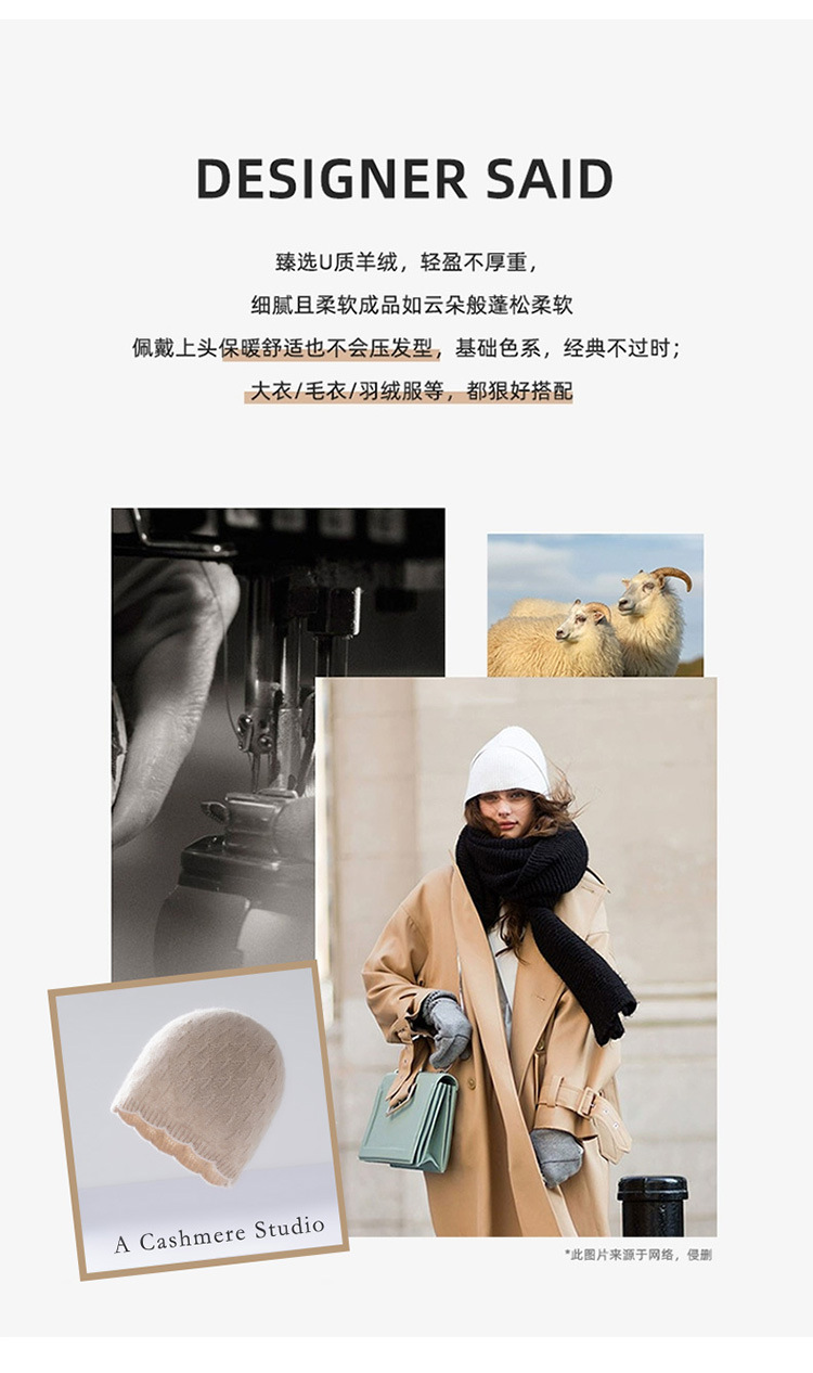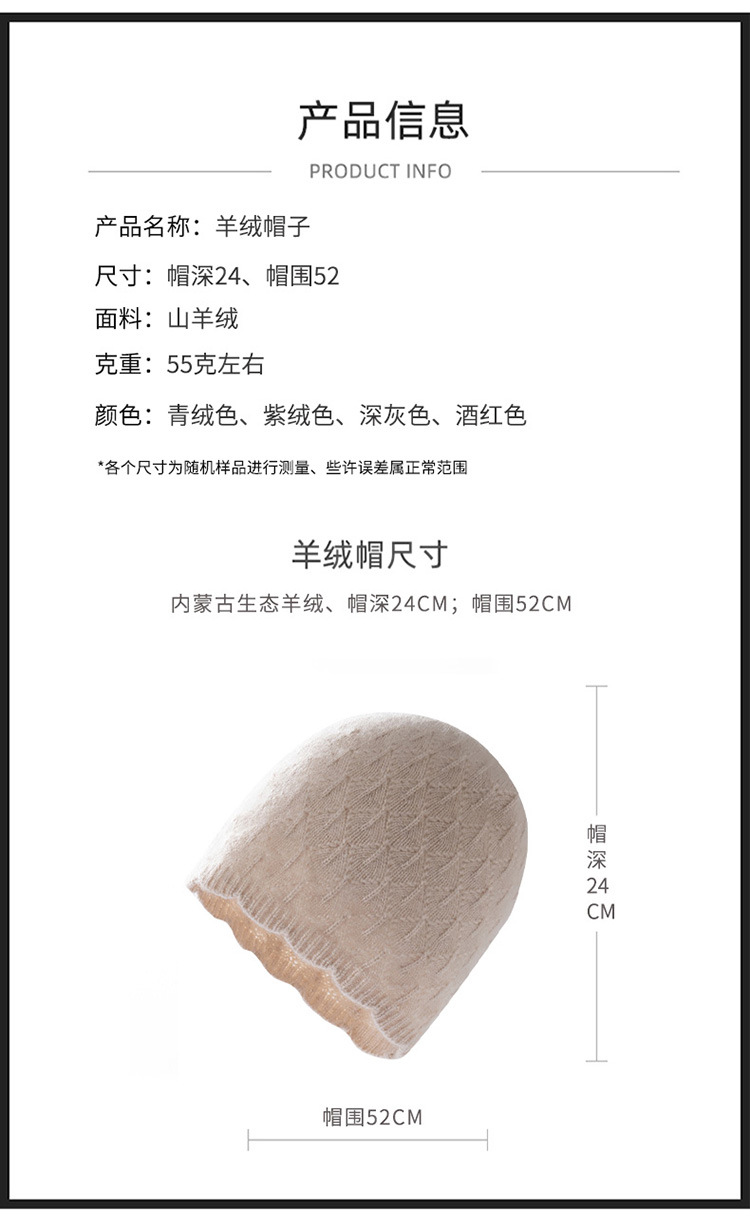 | 产品类别 | 羊绒帽 | 流行元素 | 纯色 |