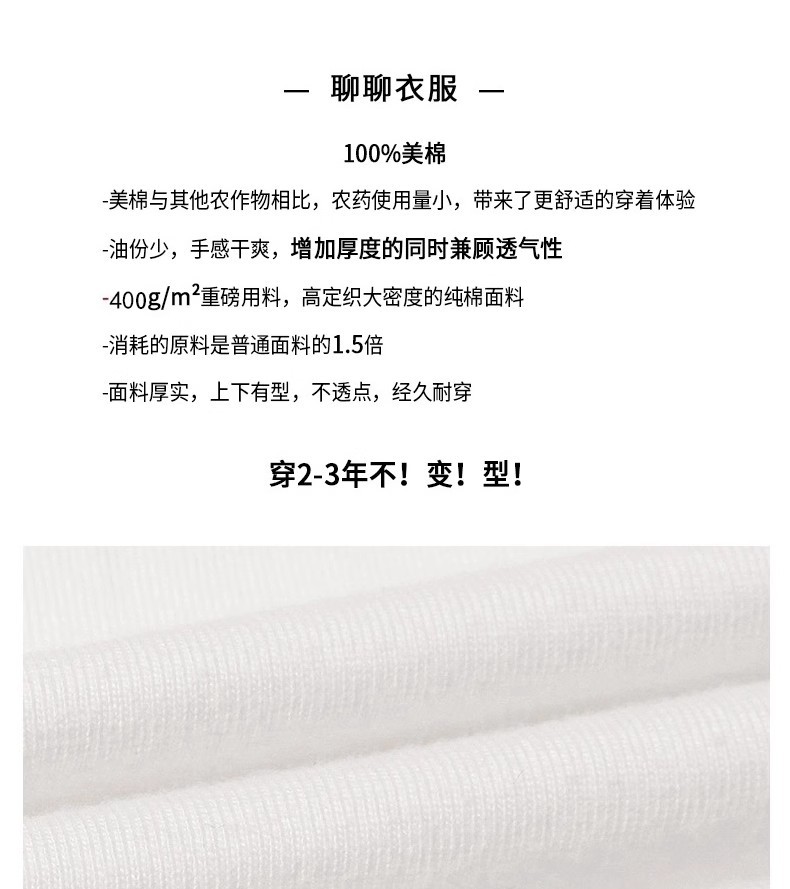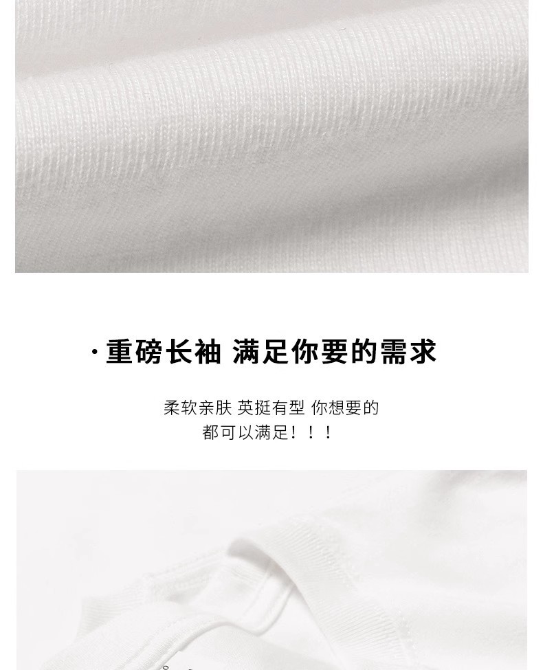 | 颜色 | 白色【重磅螺纹袖口】, 黑色【重磅螺纹袖口】, 奶杏色【重磅螺纹袖口】, 藏青色【重磅螺纹袖口】, 酒红色【重磅螺纹袖口】 | 尺码 | XS建议80-100斤, S建议100-120斤, M建议120-140斤, L建议140-165斤, XL建议165-190斤, XXL建议190-220斤 |