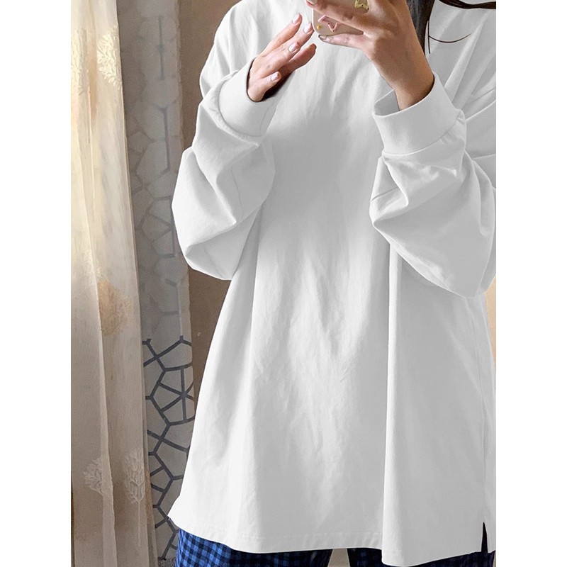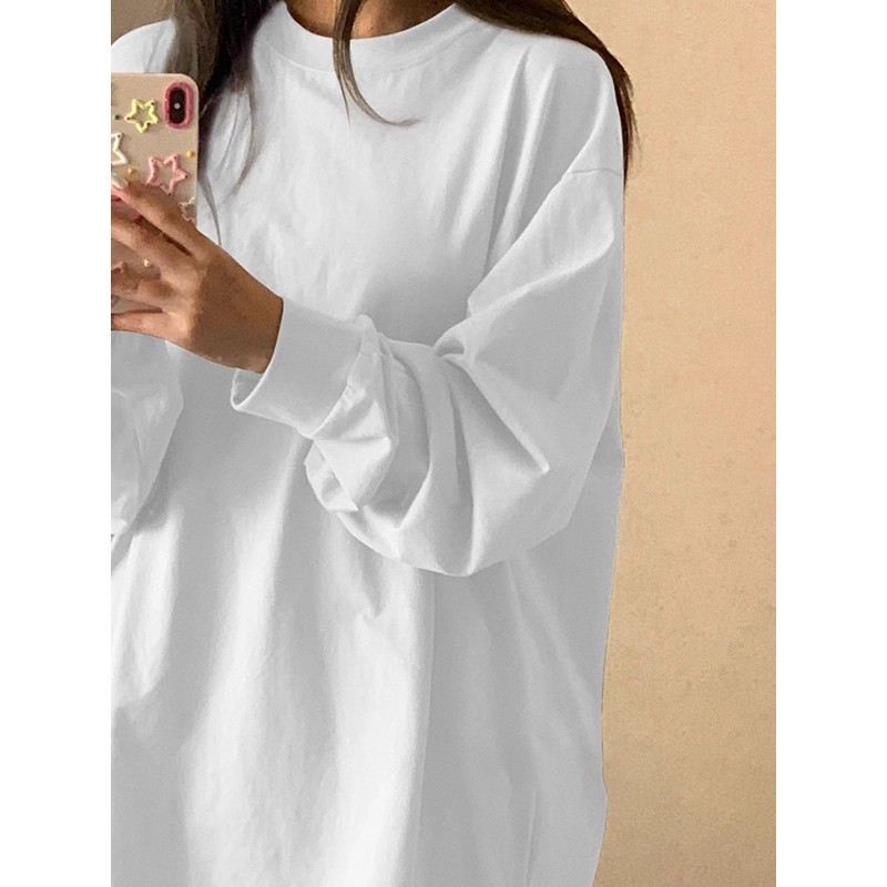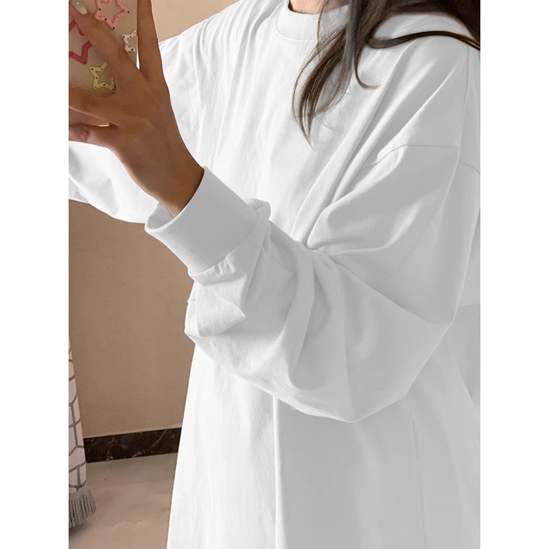 400g 헤비급 순면 긴팔 여성용 이너웨어 2025 가을 신상 루즈한 순면 화이트 티셔츠 탑