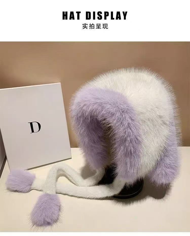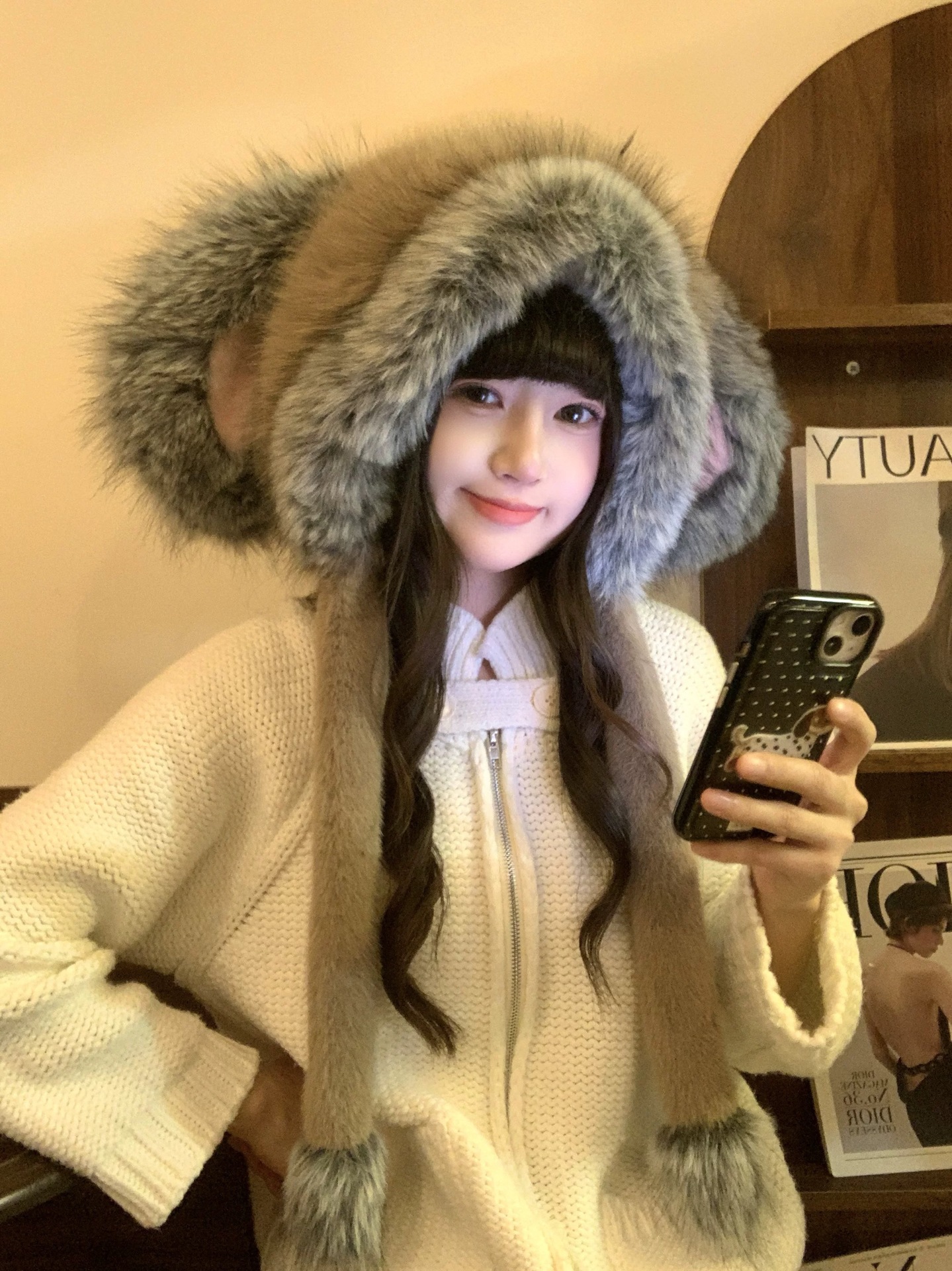 가을 겨울 인조 모피 여우털 토끼귀 귀마개 따뜻한 고급스러운 원형 요정 스타일 여성 겨울 모자