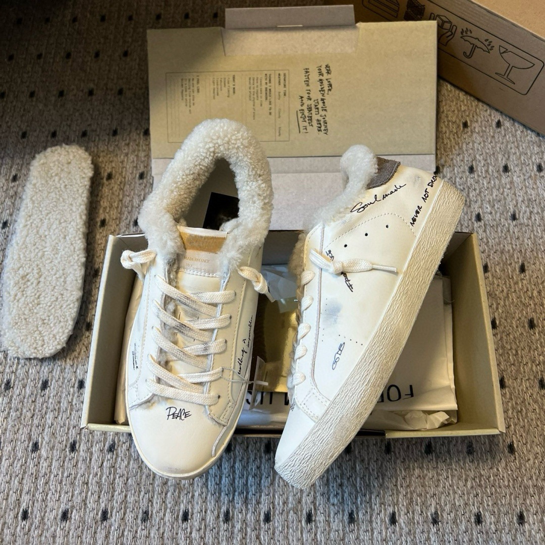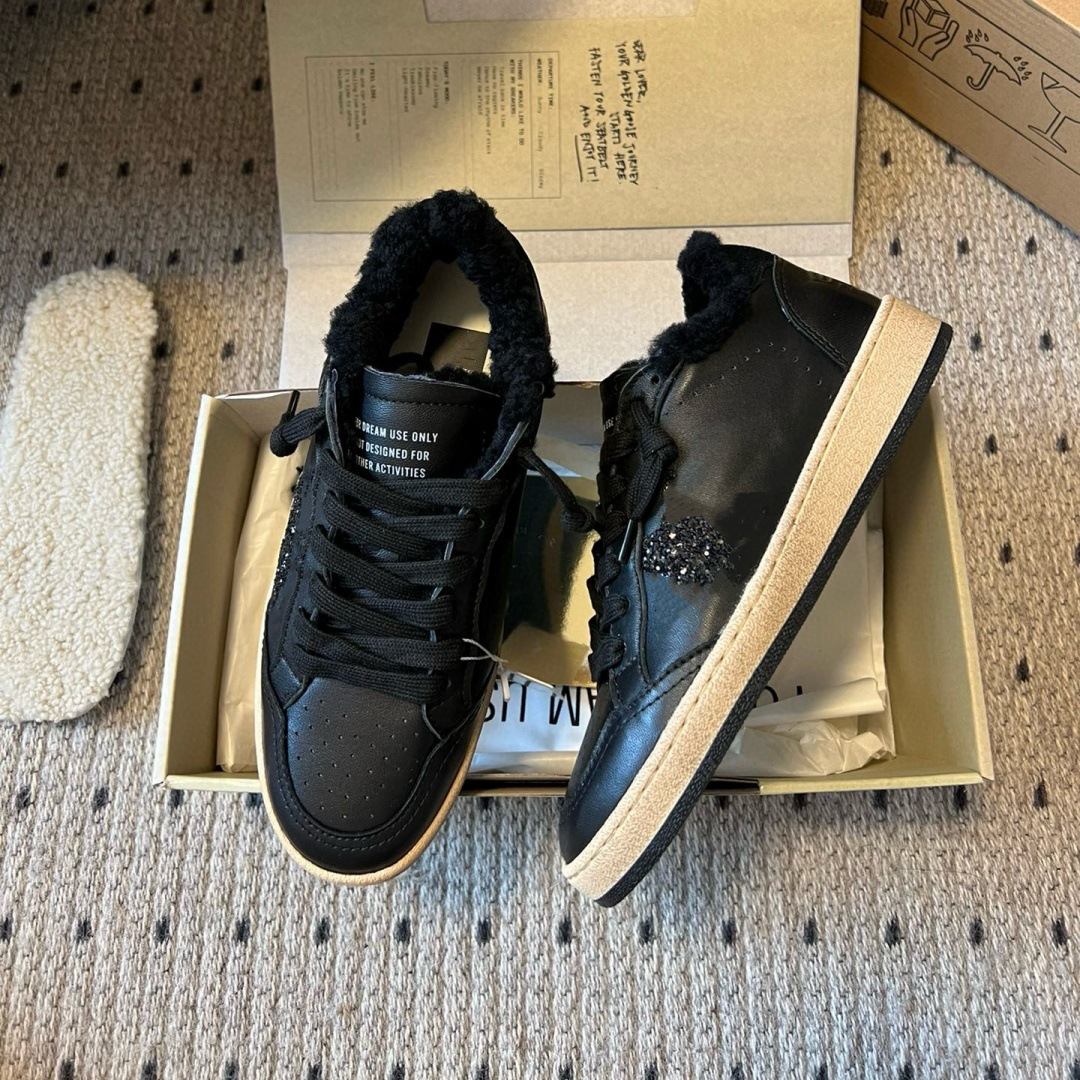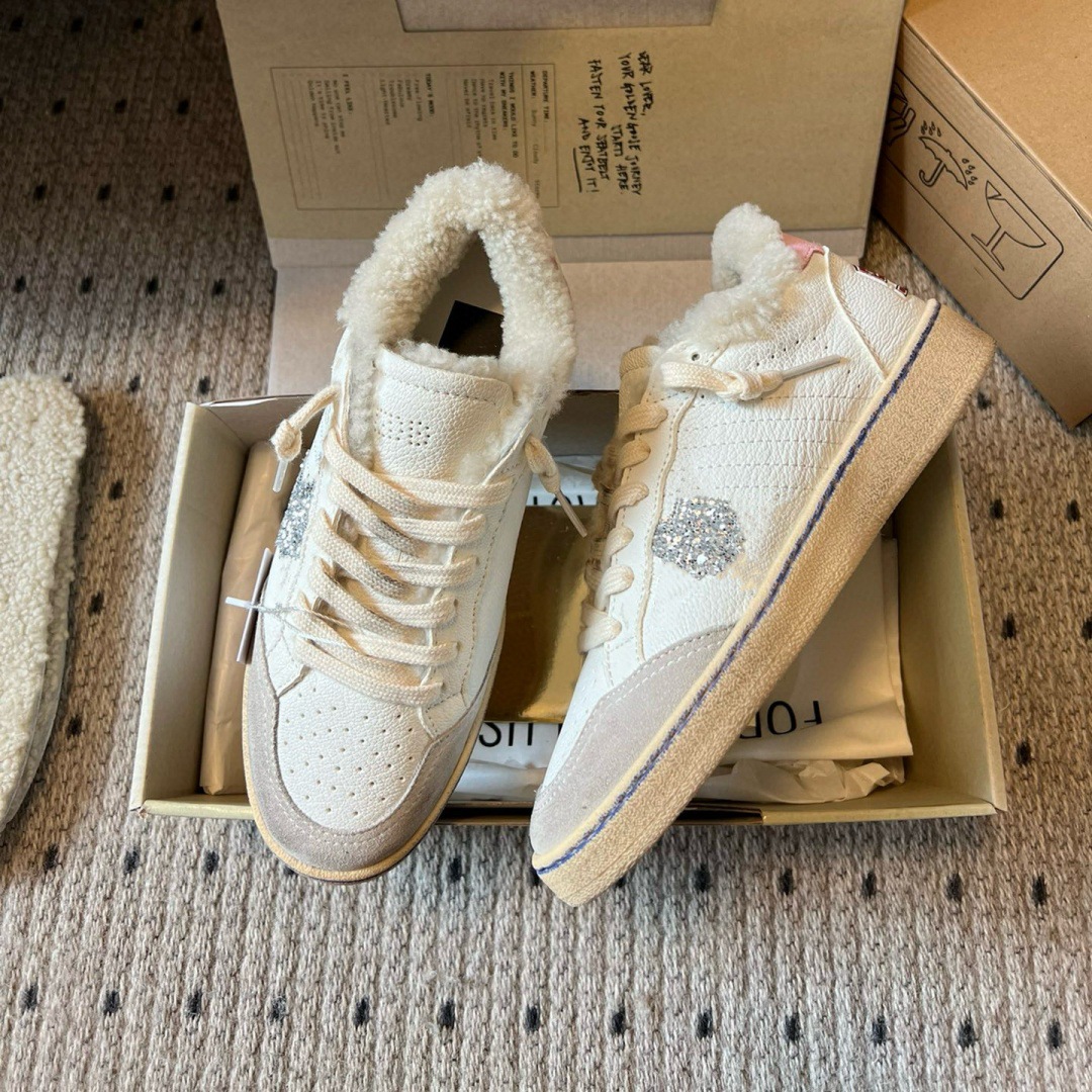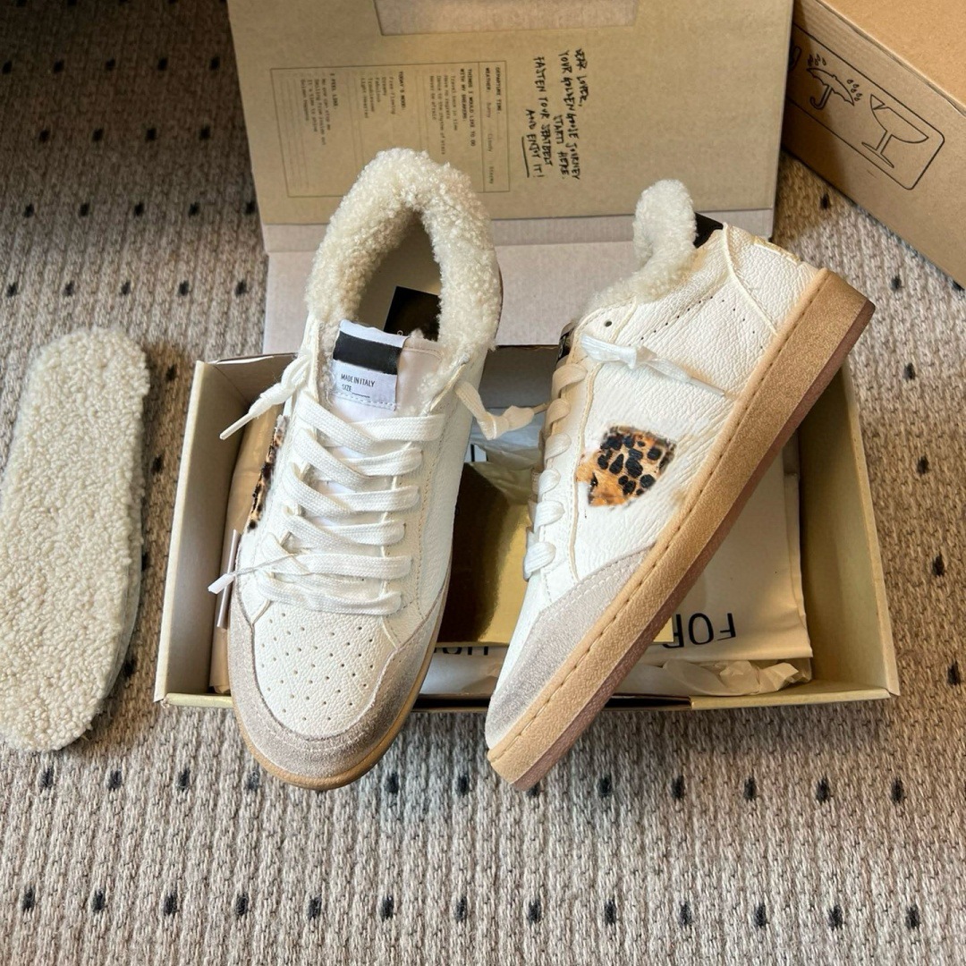 2025 가을 겨울 스타일 스타리 스니커즈 여성용 가죽과 모피 일체형 레트로 캐주얼 운동화 플러스 벨벳 화이트 슈즈
