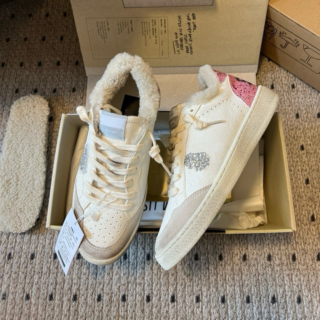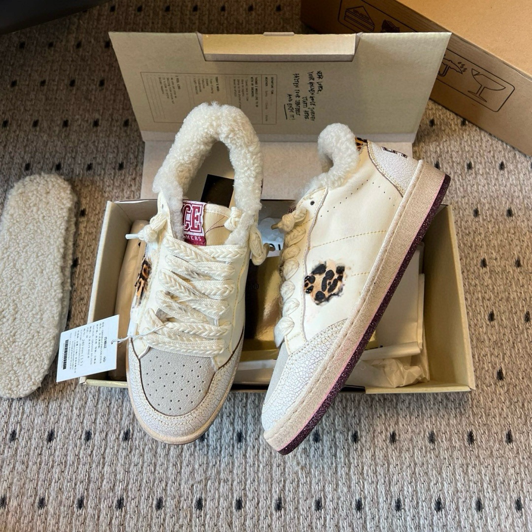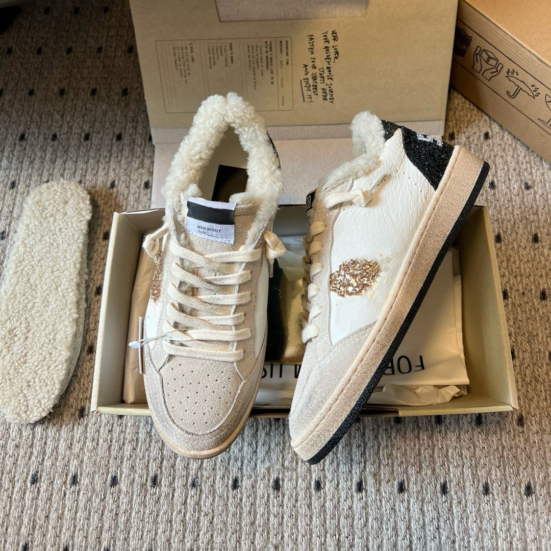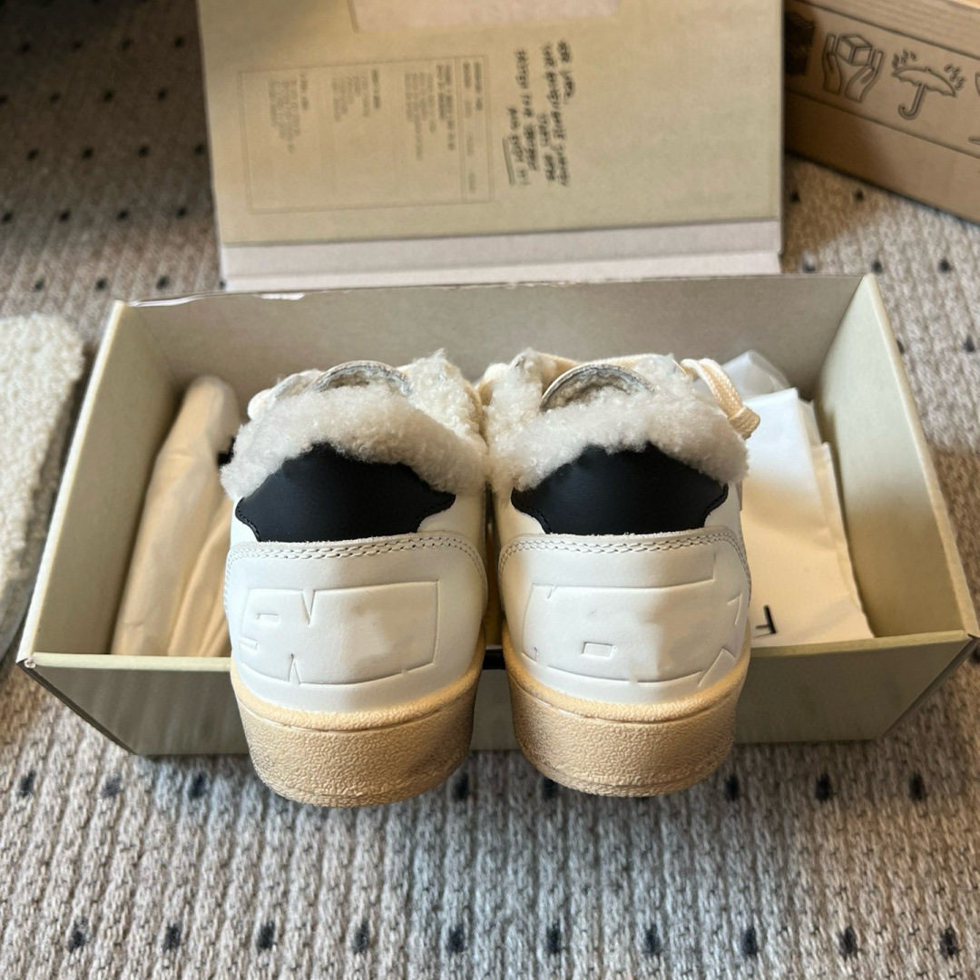 2025 가을 겨울 스타일 스타리 스니커즈 여성용 가죽과 모피 일체형 레트로 캐주얼 운동화 플러스 벨벳 화이트 슈즈