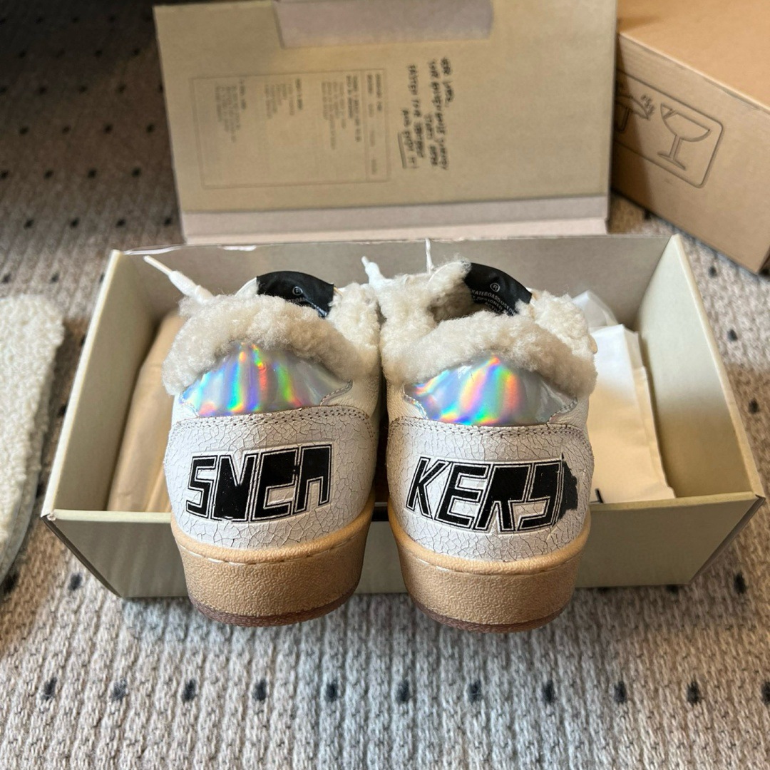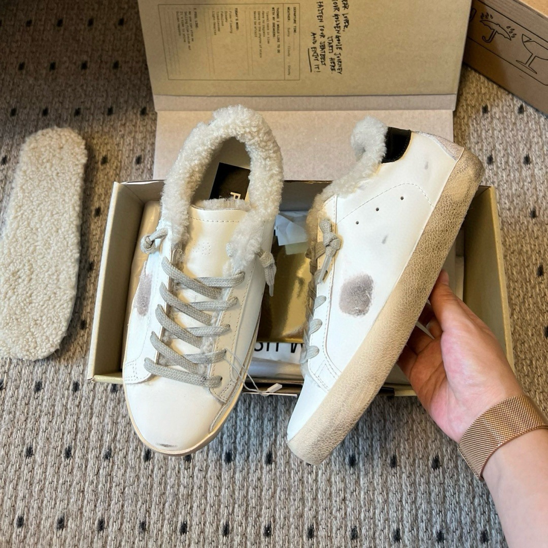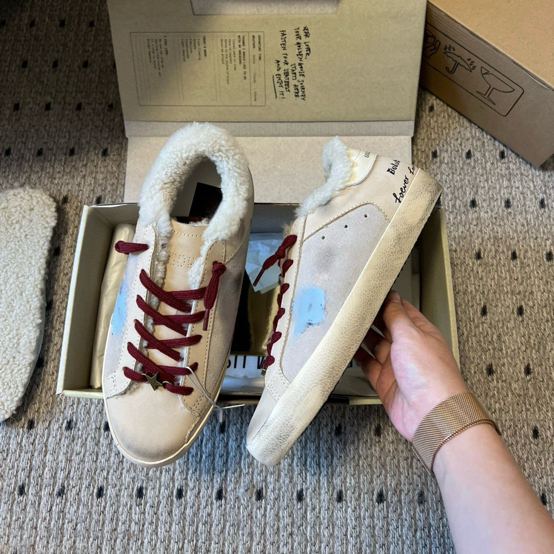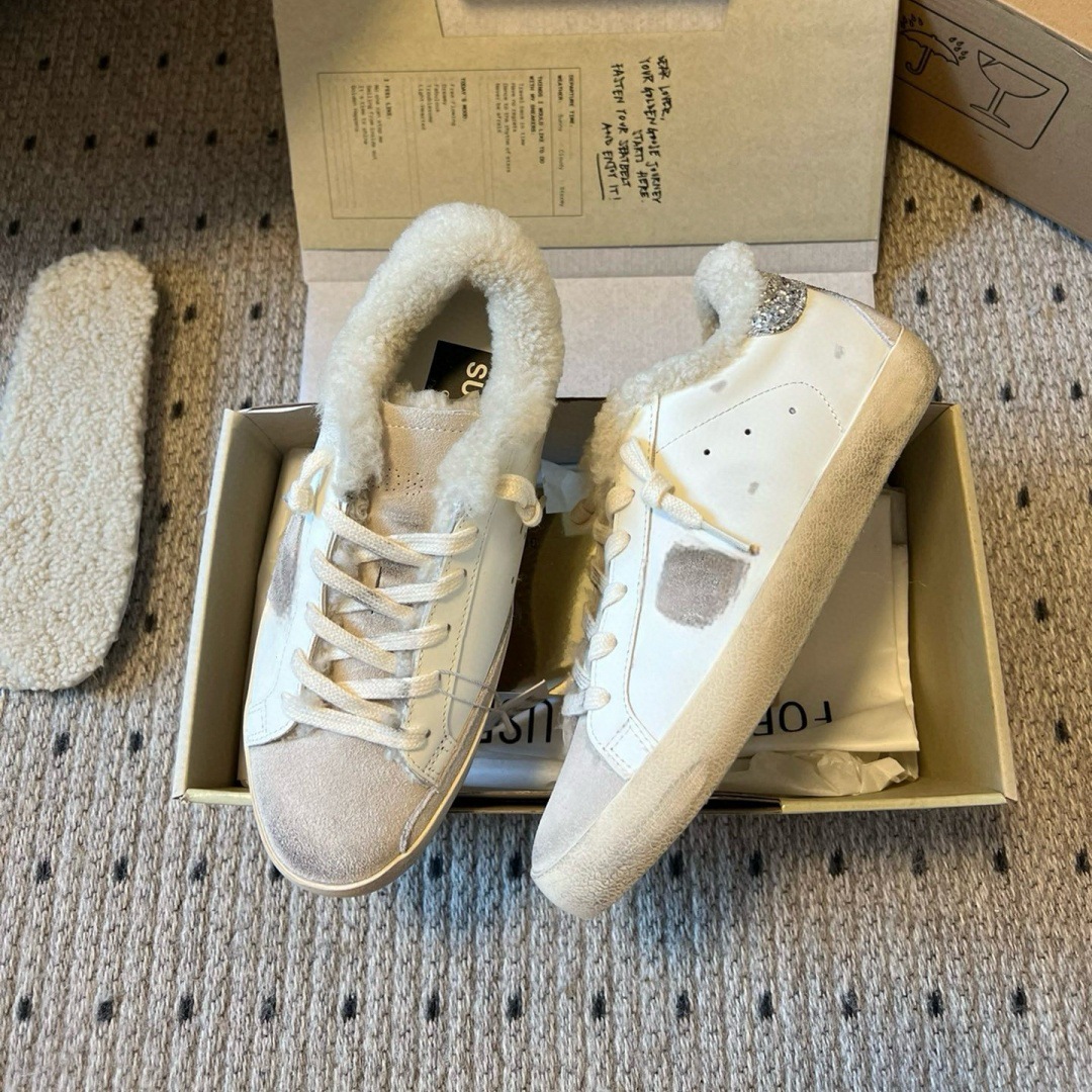 2025 가을 겨울 스타일 스타리 스니커즈 여성용 가죽과 모피 일체형 레트로 캐주얼 운동화 플러스 벨벳 화이트 슈즈