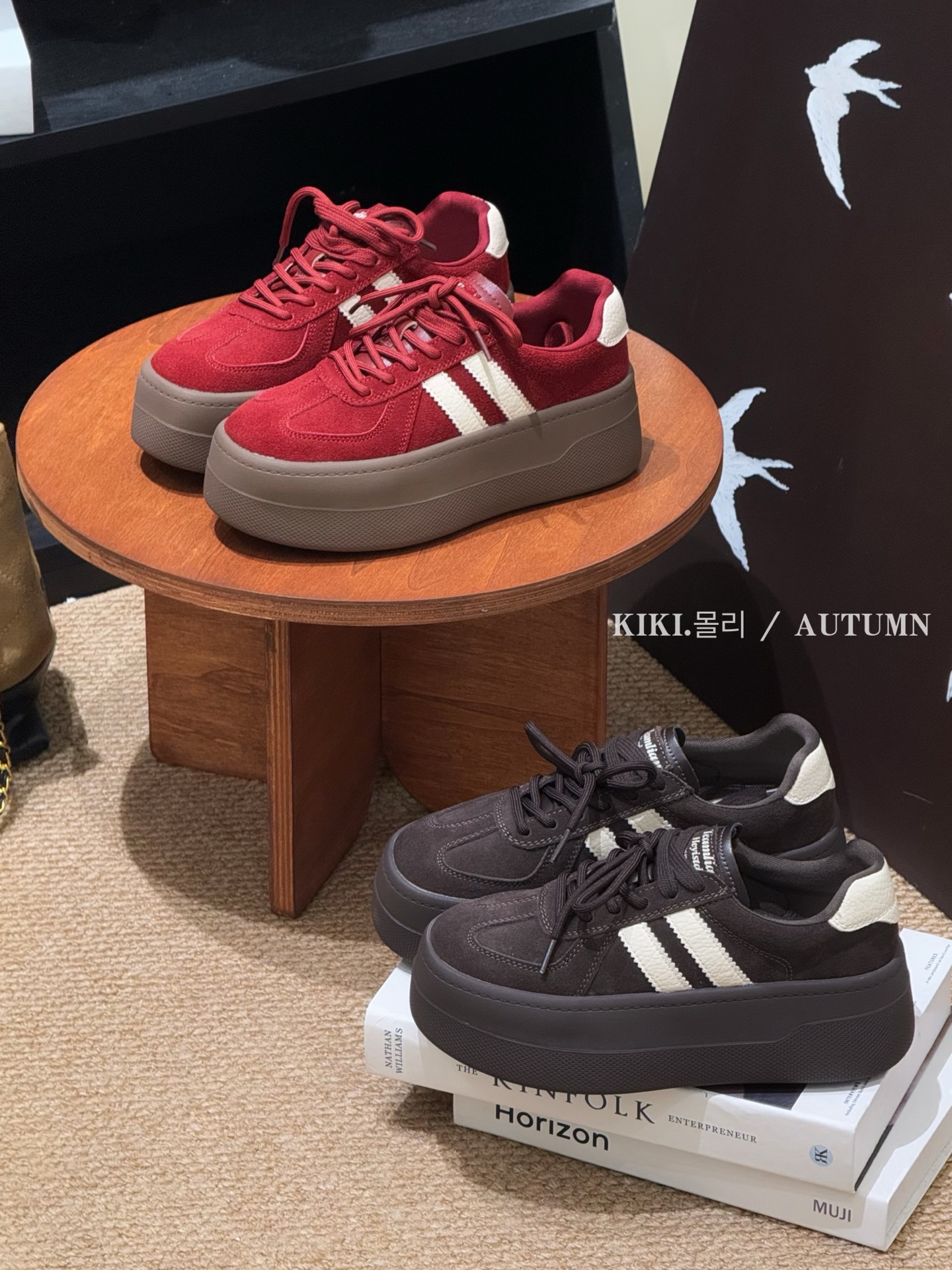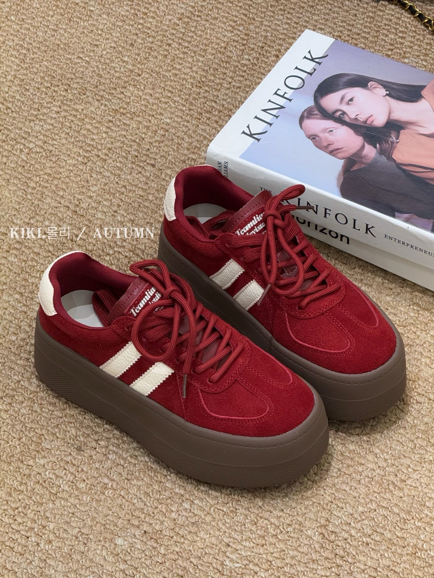 유럽 두꺼운 밑창 캐주얼 여성 2025 가을 새로운 복고풍 한국 스타일 고급 다용도 누벅 가죽 훈련 신발 유행