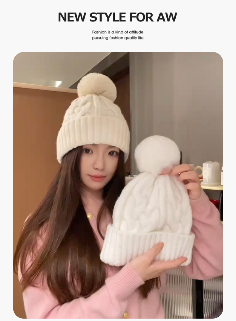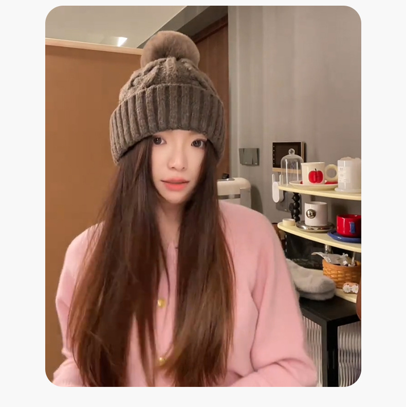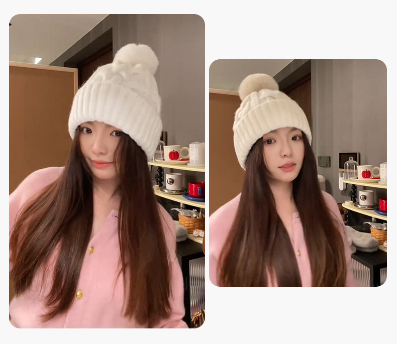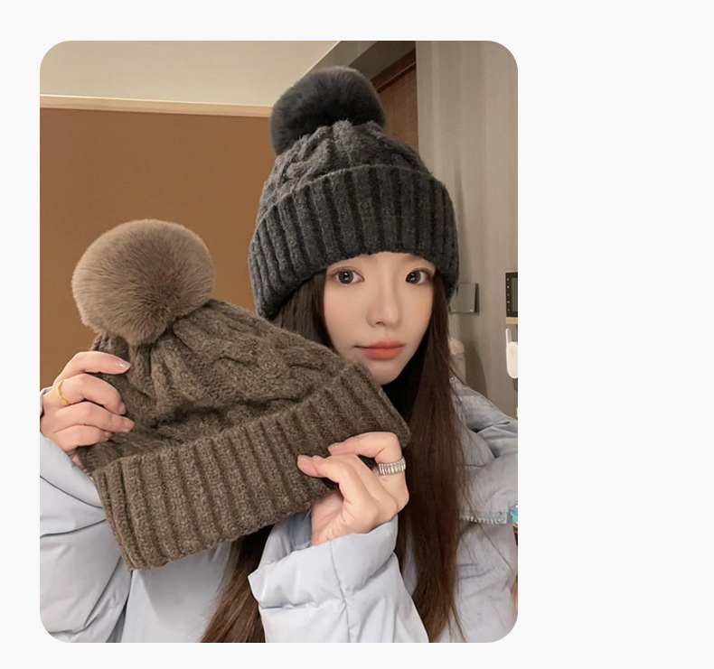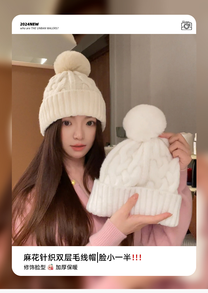 겨울철 여성을 위한 트위스트 울 니트 모자, 따뜻하고 벨벳으로 두꺼워진 다용도 풀오버 모자, 방풍 귀 보호, 토캡 방한 모자