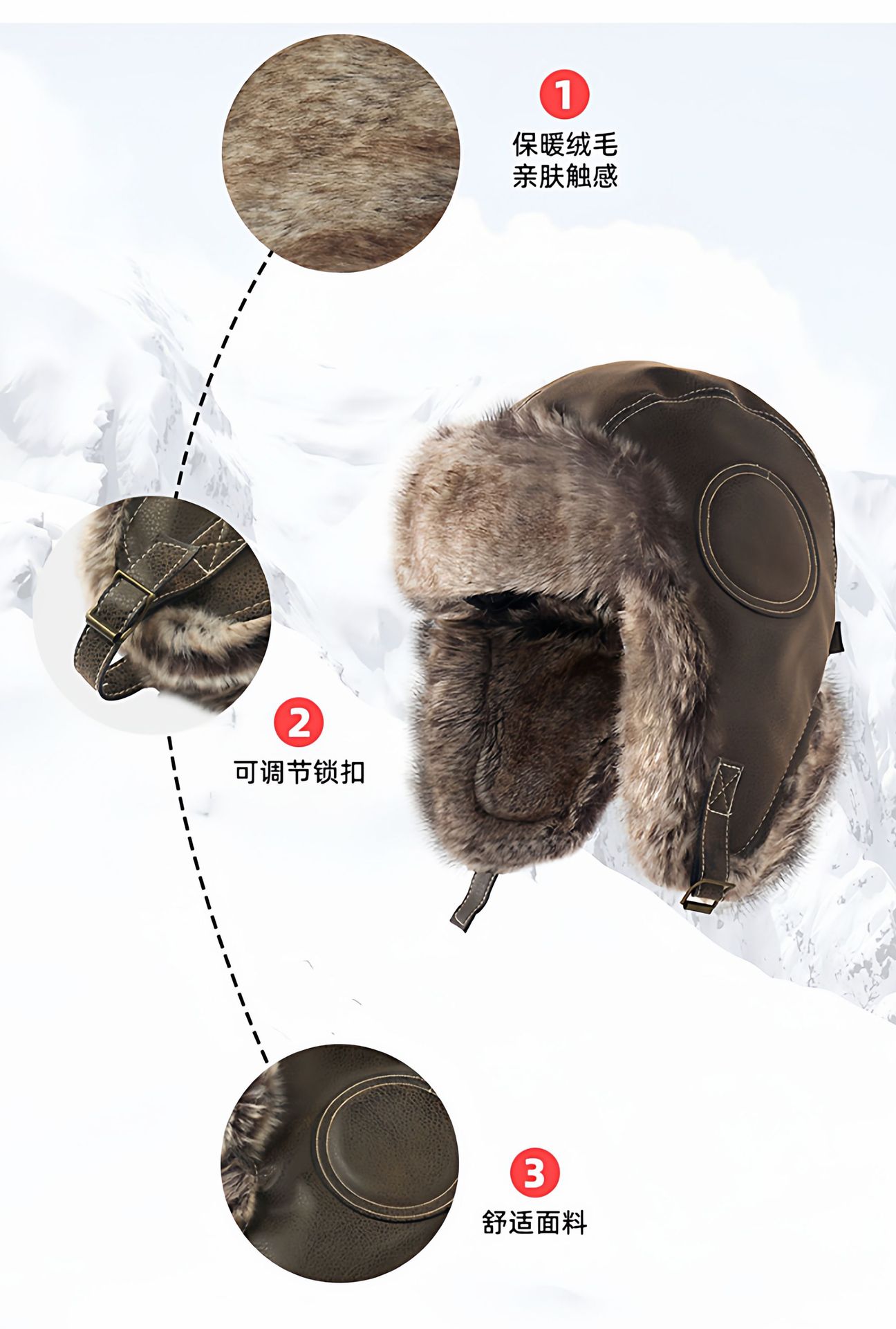 가죽 모자, 레이펑 모자, 남성용 겨울 두꺼운 파일럿 따뜻한 모자, 여성용 북동 방풍 사이클링 귀 보호대, 큰 머리 둘레