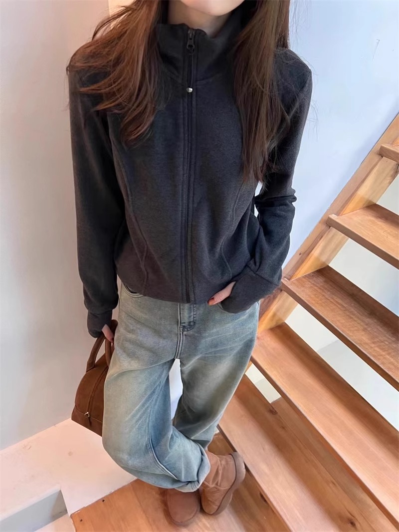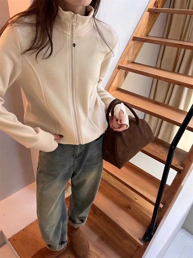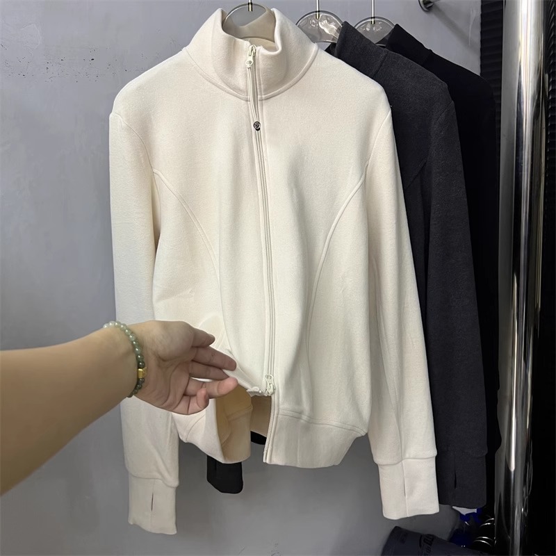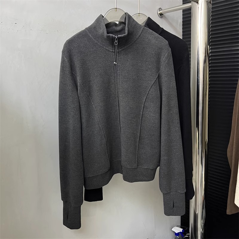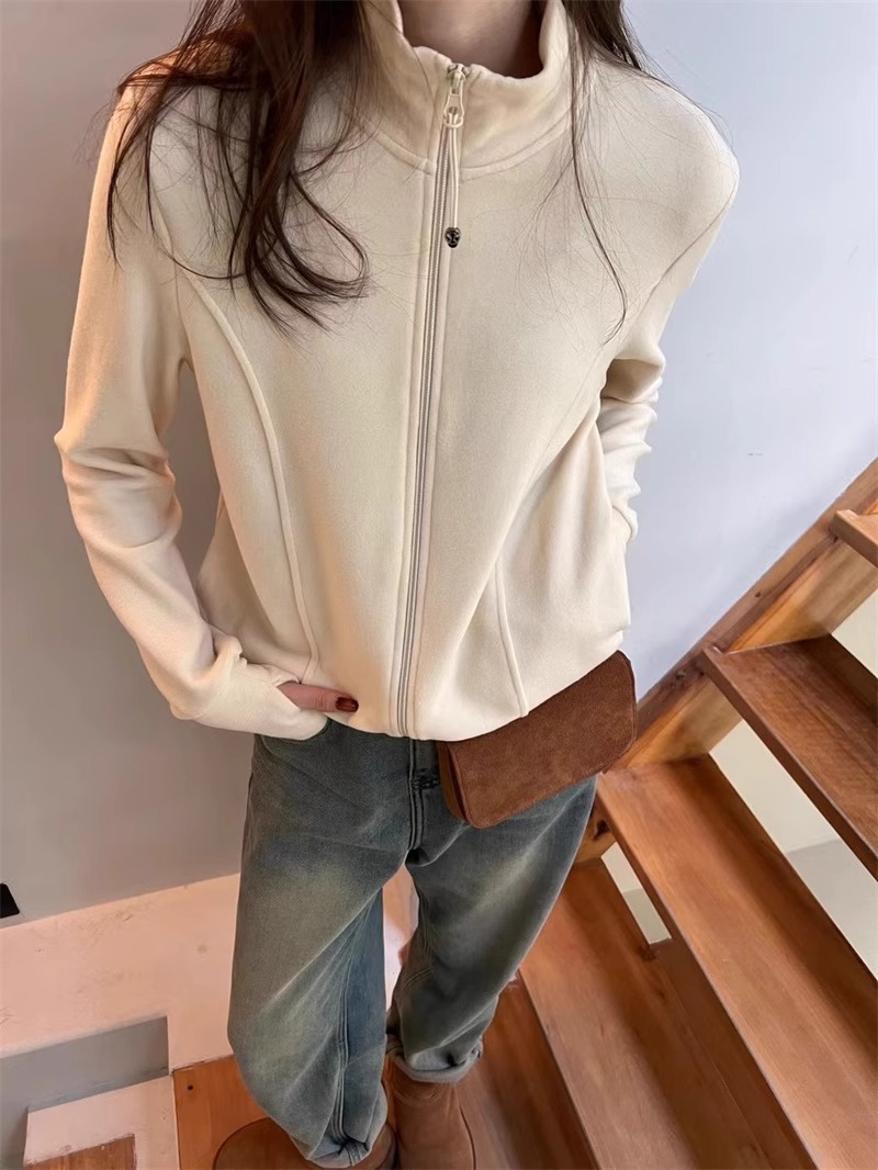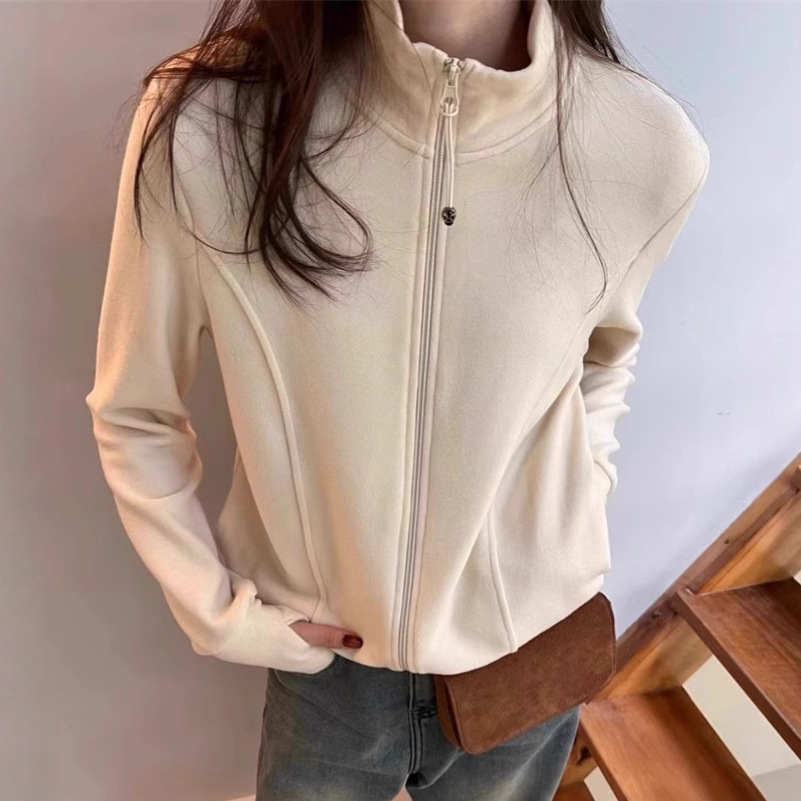 양면 독일 벨벳 여성용 양털 스웨트 셔츠 세련된 솔리드 컬러 새로운 2025 스탠드 업 칼라 지퍼 카디건 플러스 사이즈 여성 자켓