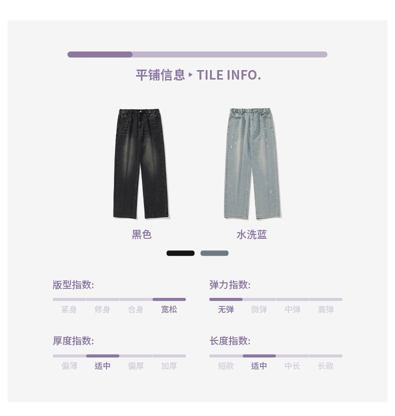 | 颜色 | 黑色, 水洗蓝 | 尺码 | M, L, XL, XXL, XXXL |