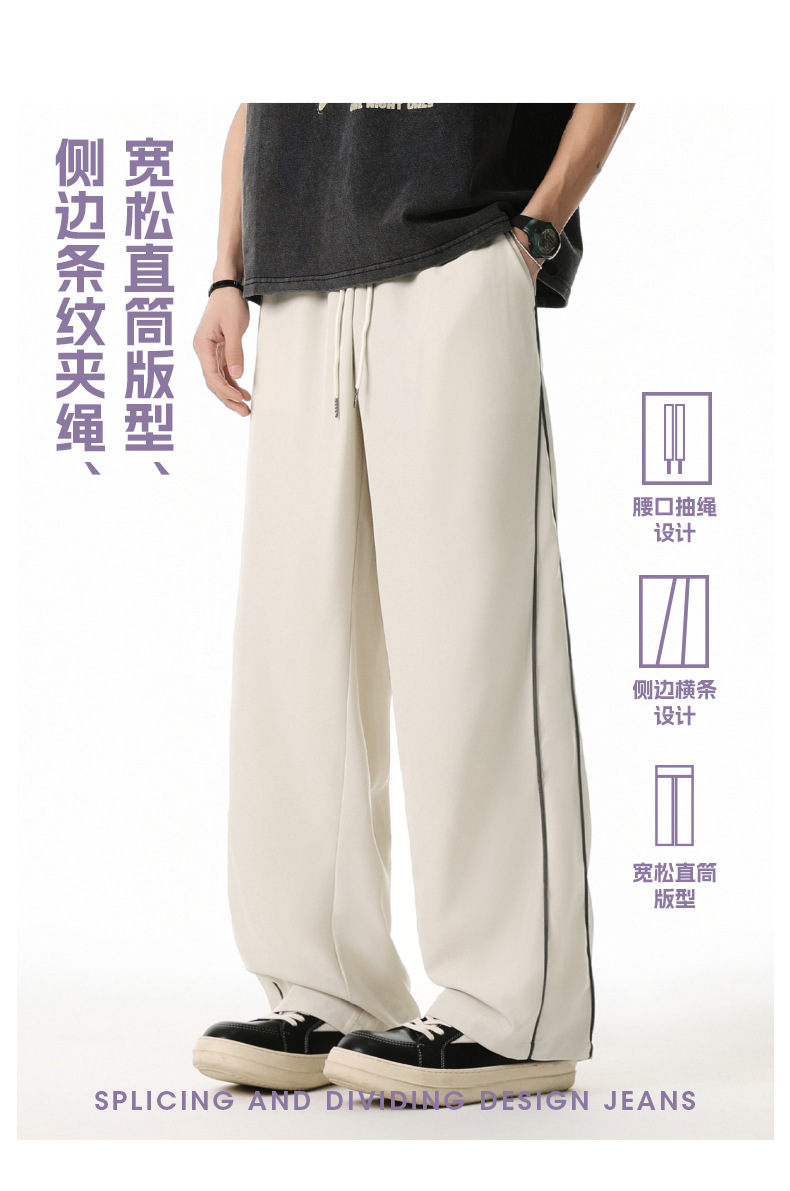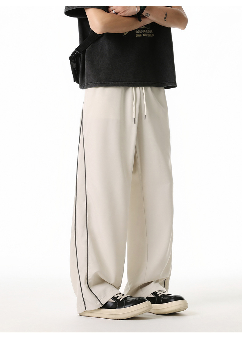 배색 스플릿 컷 스포츠 캐주얼 팬츠 봄 여름 신작 트렌디 브랜드 아메리칸 레트로 다재다능하고 주름이 잘 생기지 않는 롱 팬츠 q