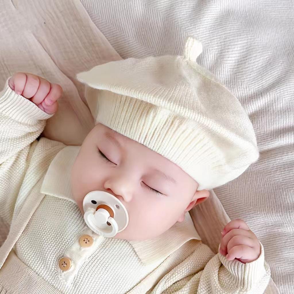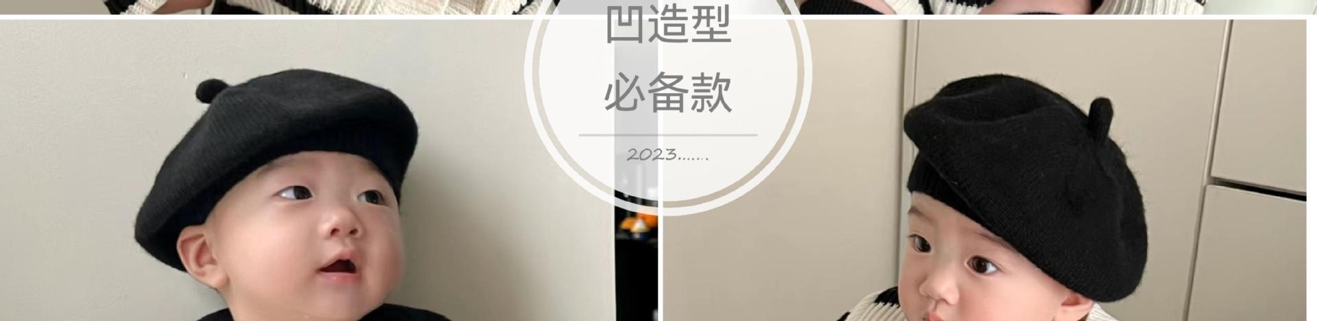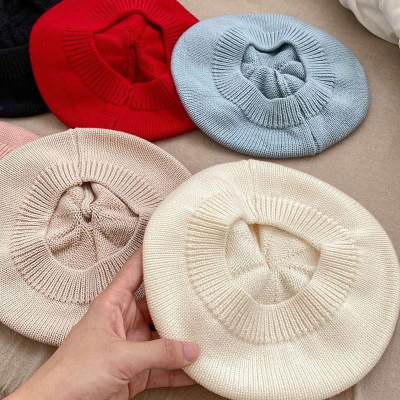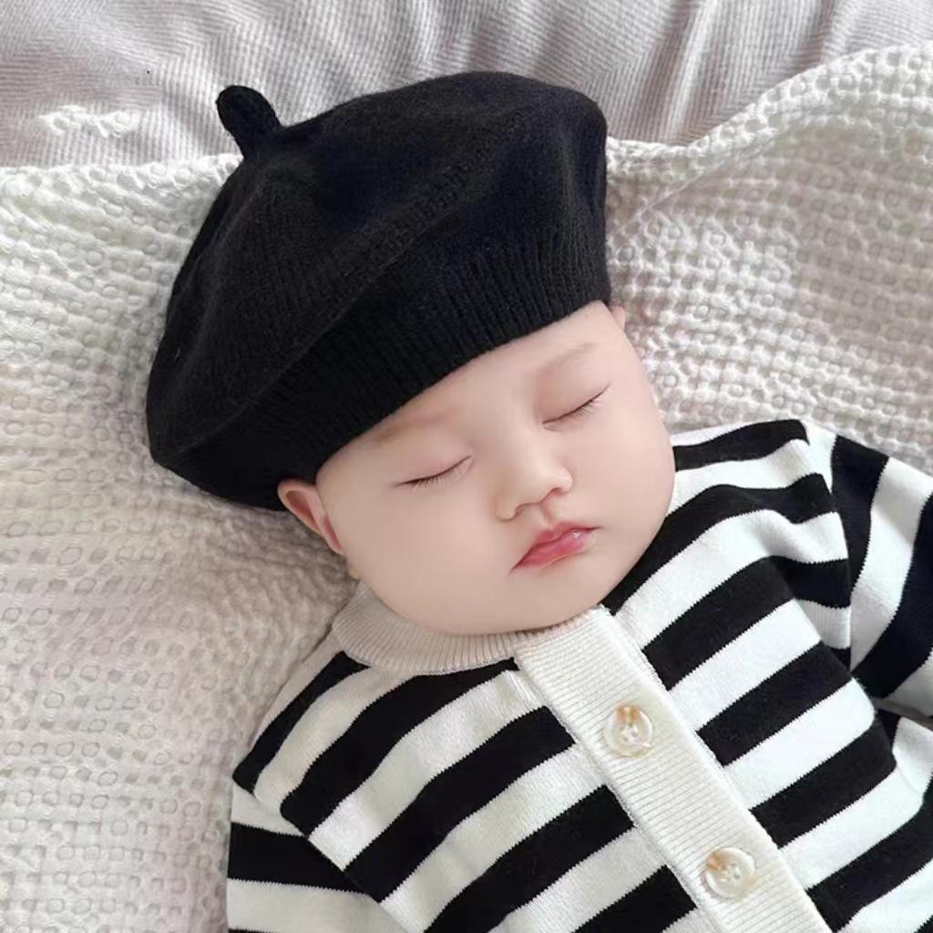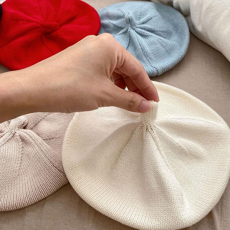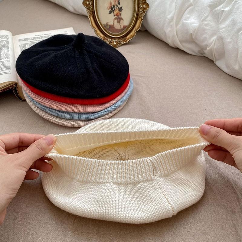 ins 일본과 한국 어린이 니트 모자 베레모 오목 모양 소년 소녀 화가 모자 단색 서양식 가을 겨울