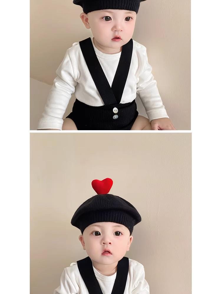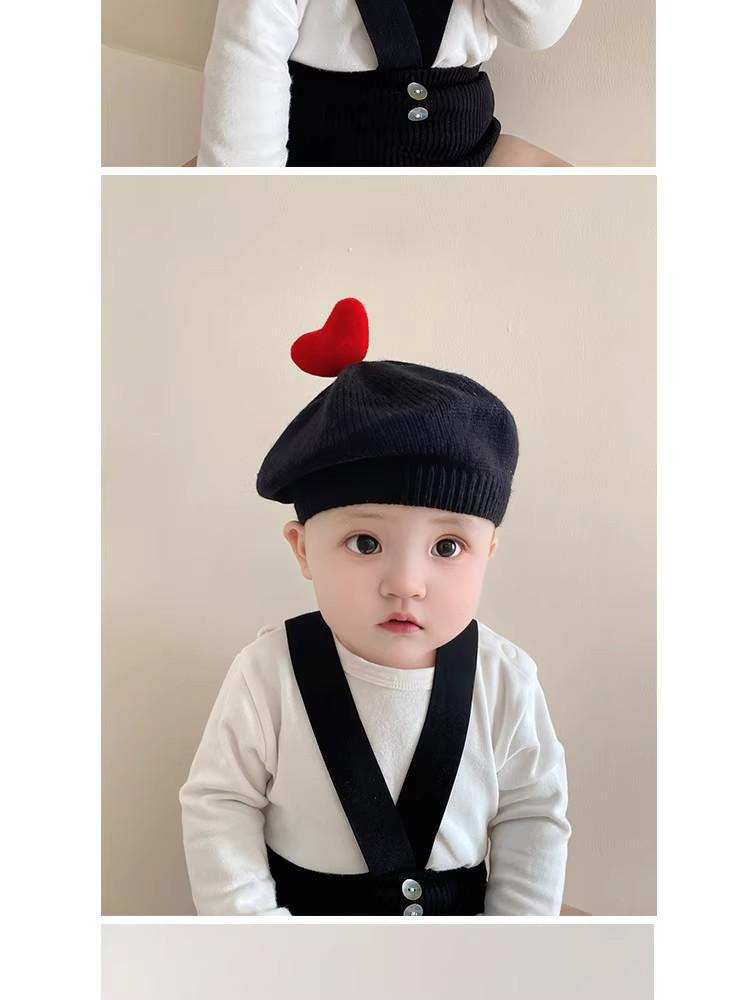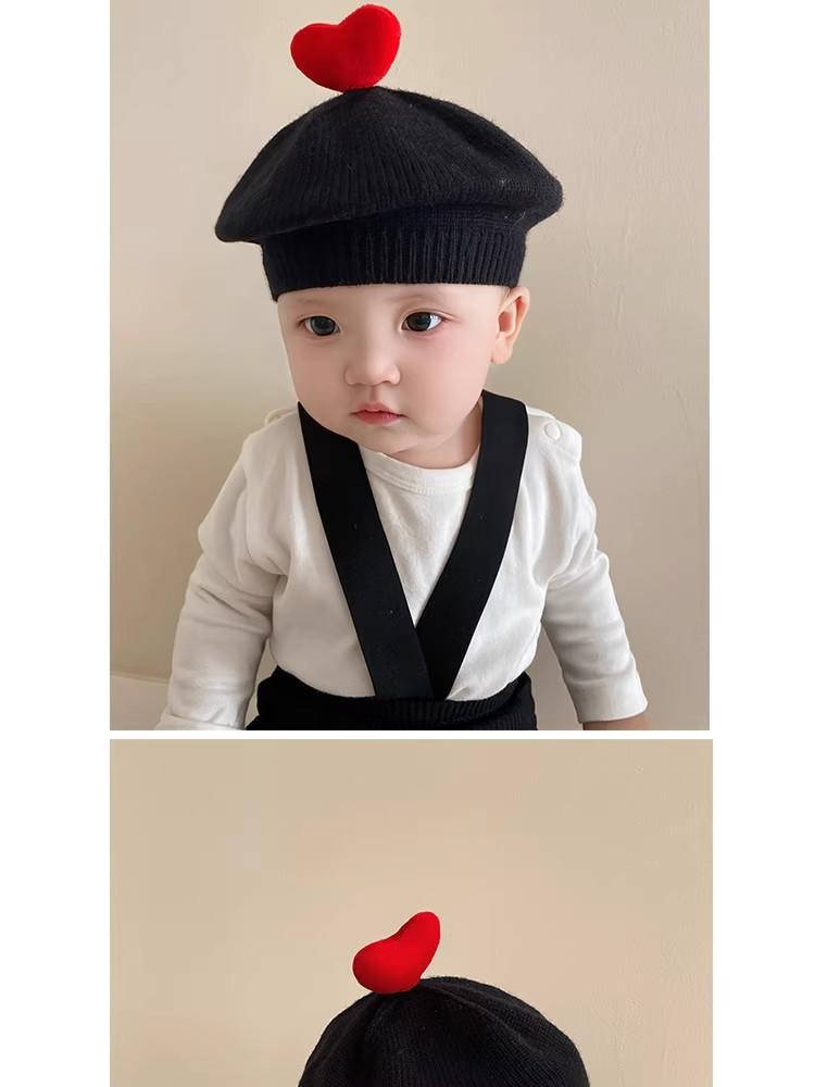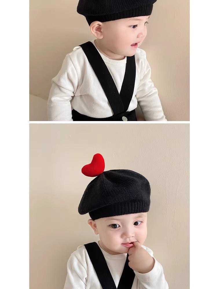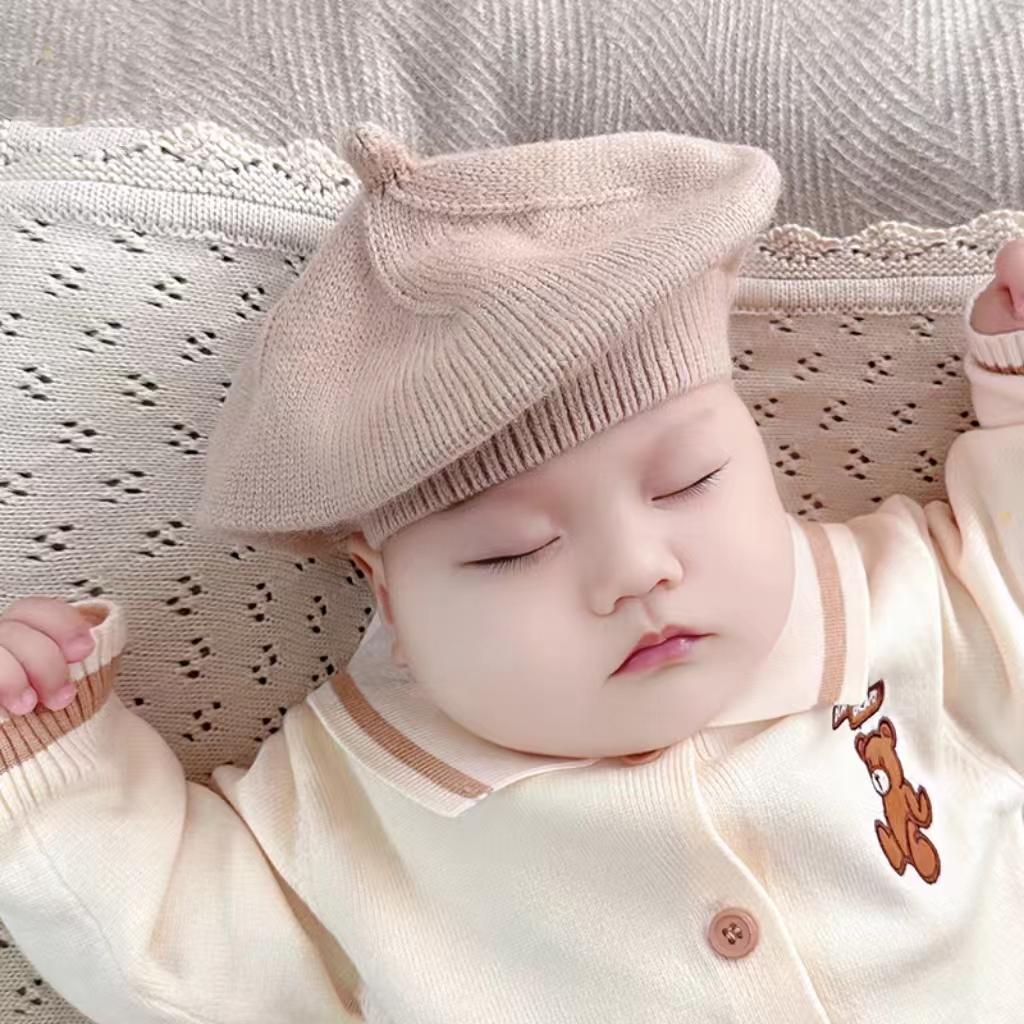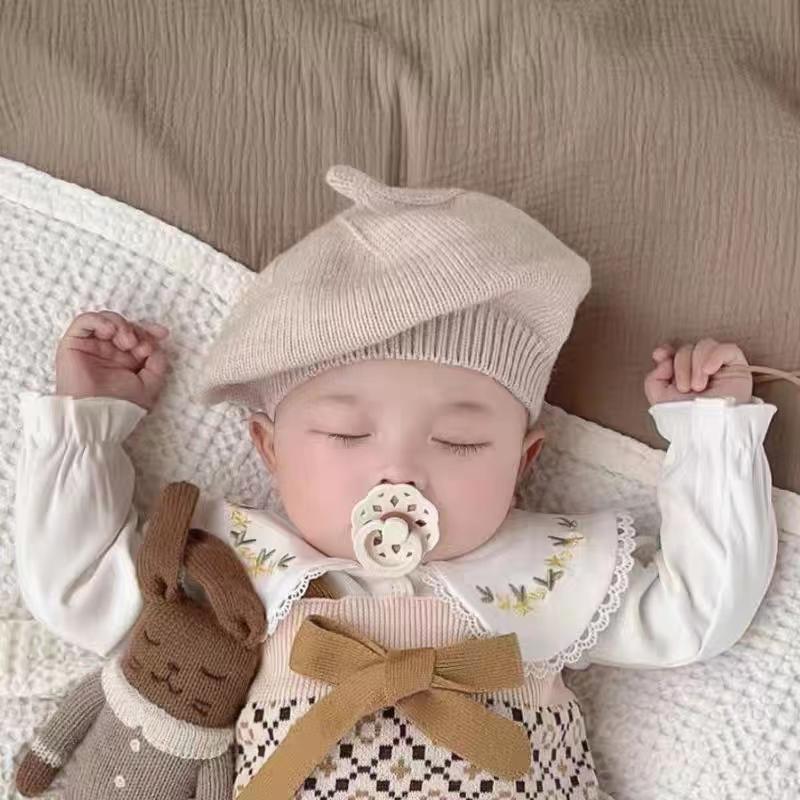 ins 일본과 한국 어린이 니트 모자 베레모 오목 모양 소년 소녀 화가 모자 단색 서양식 가을 겨울