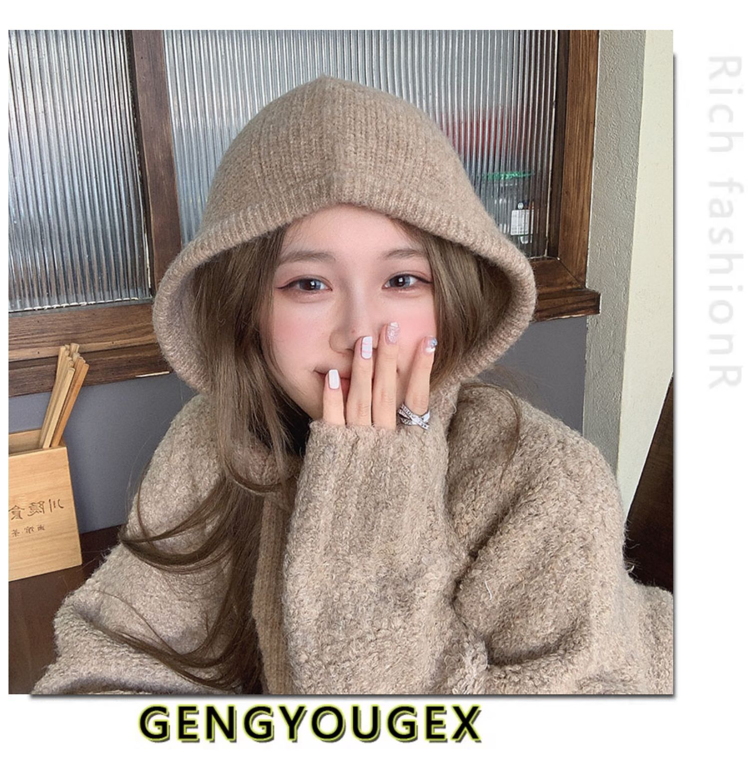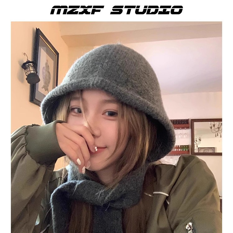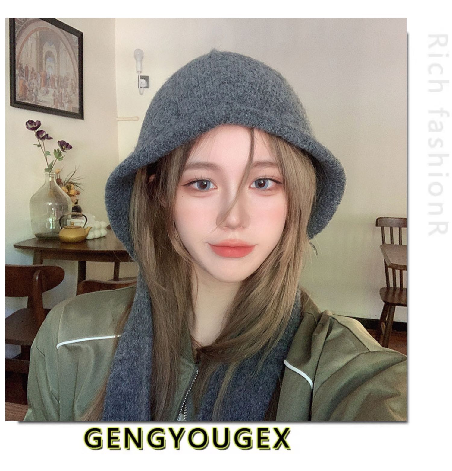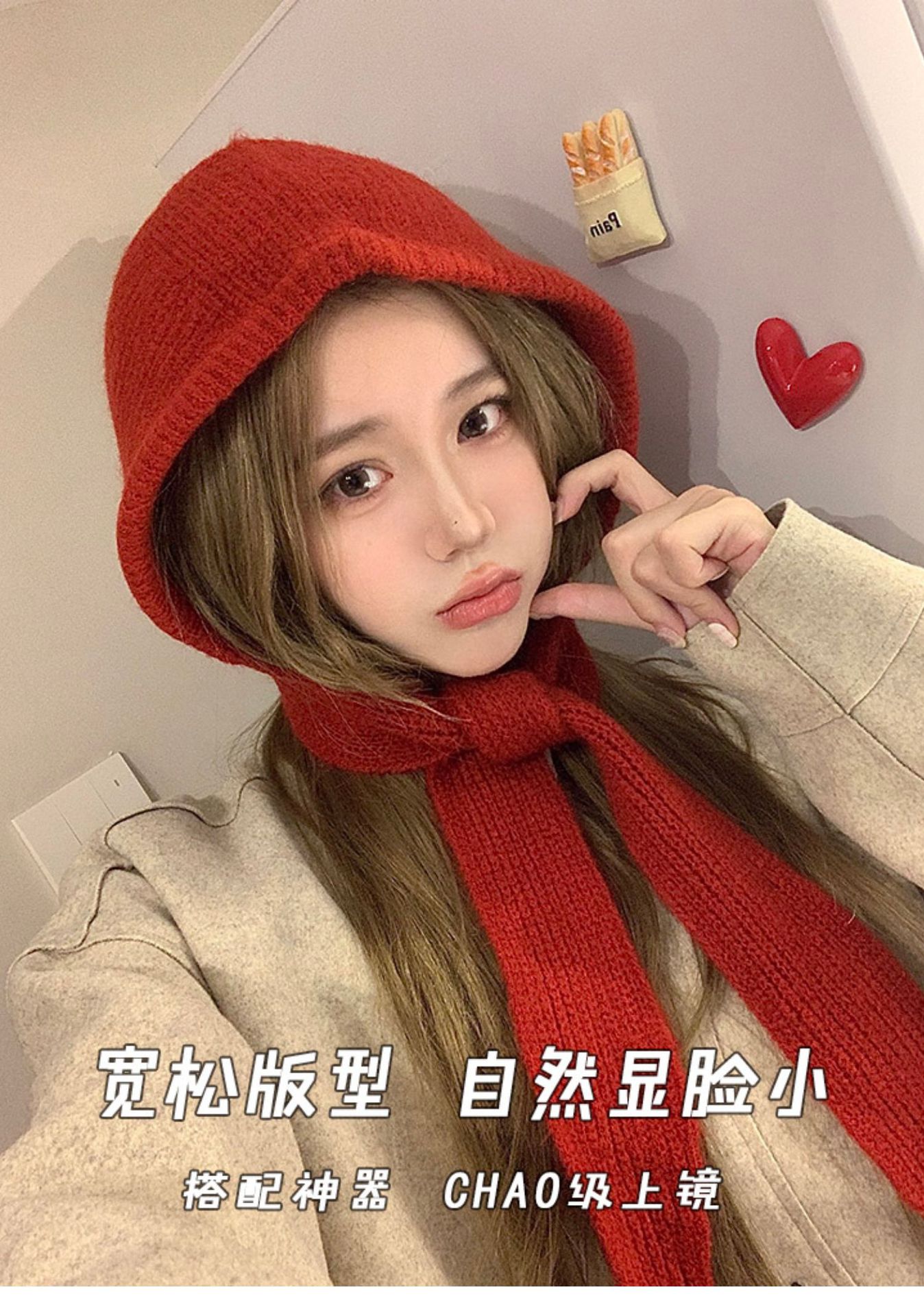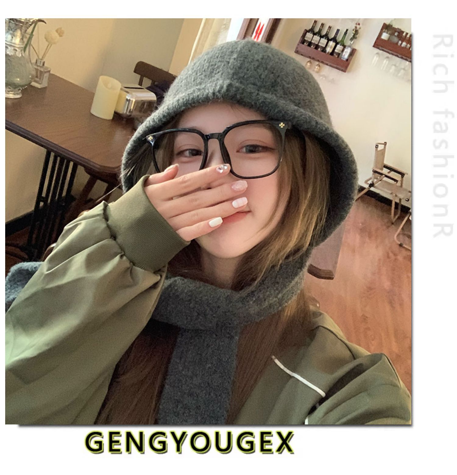 Balacon Raffia Hat 여성 가을, 겨울 한국어 버전 새로운 기능 따뜻한 귀 보호 모직 모자 스카프 올인원 다용도 트렌드