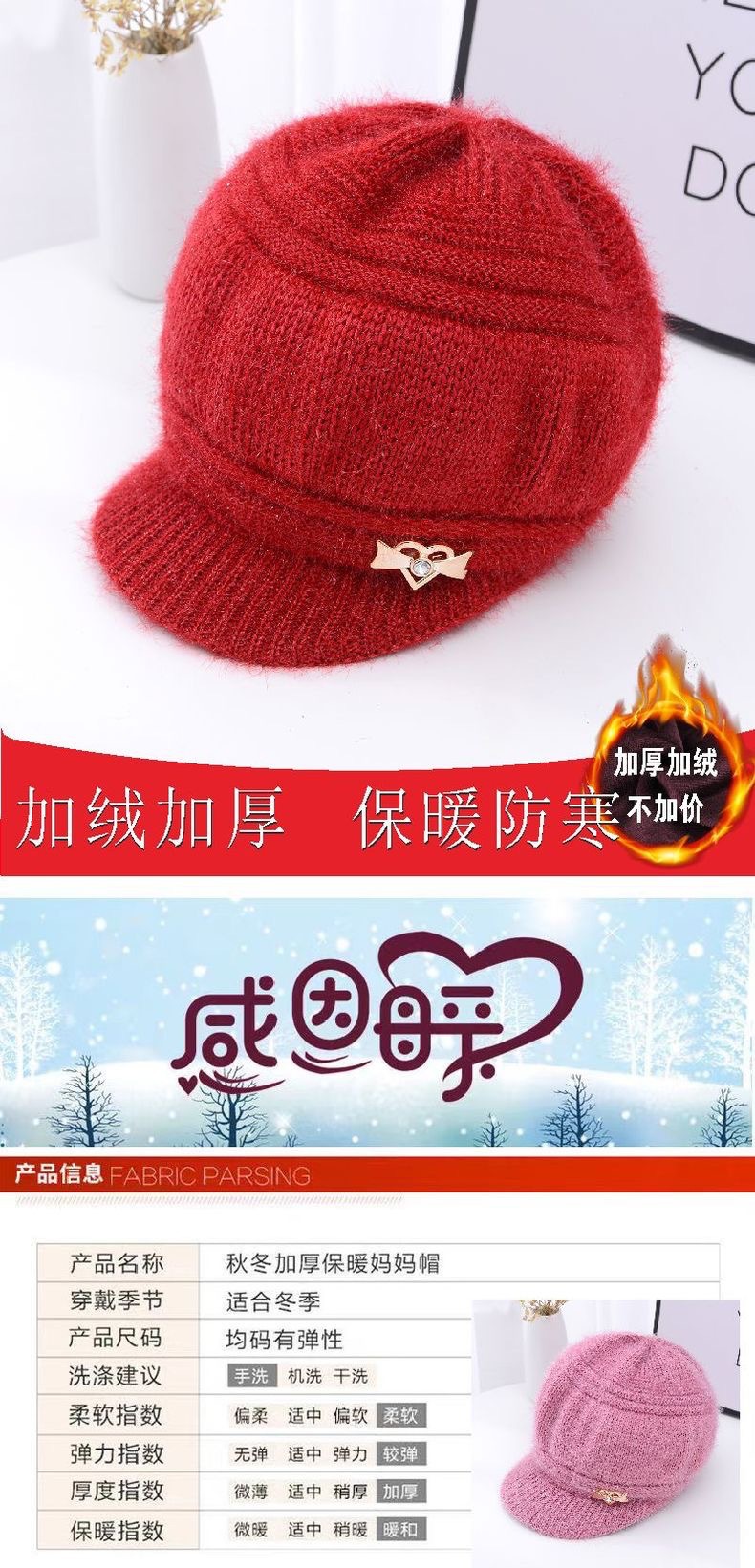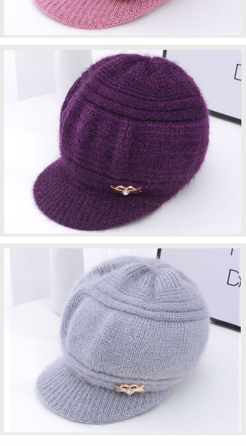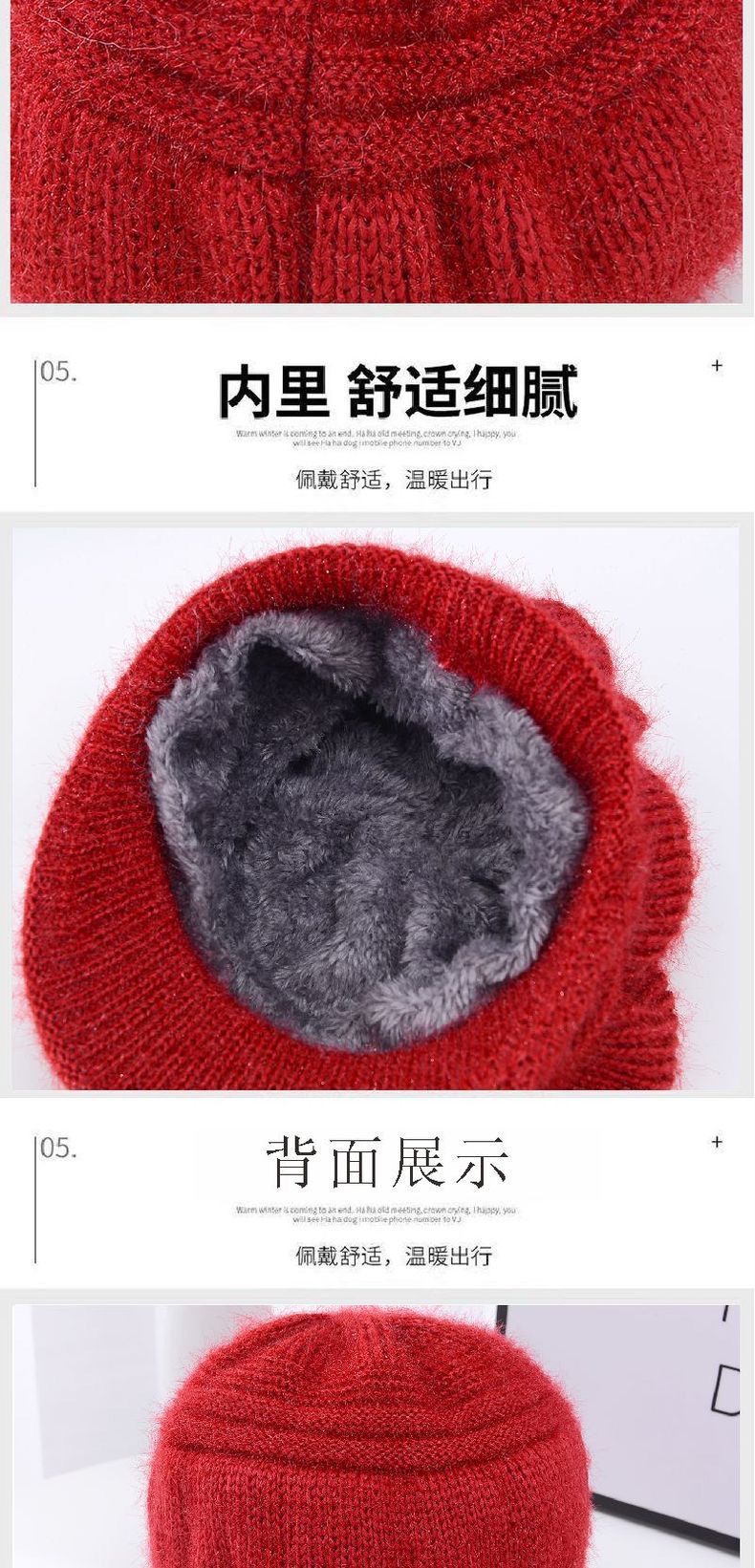 중년 및 노년 여성을 위한 겨울 두꺼운 귀 보호 니트 모자, 새로운 벨벳 원피스 모자, 사이클링 따뜻하고 패셔너블한 풀오버 모자