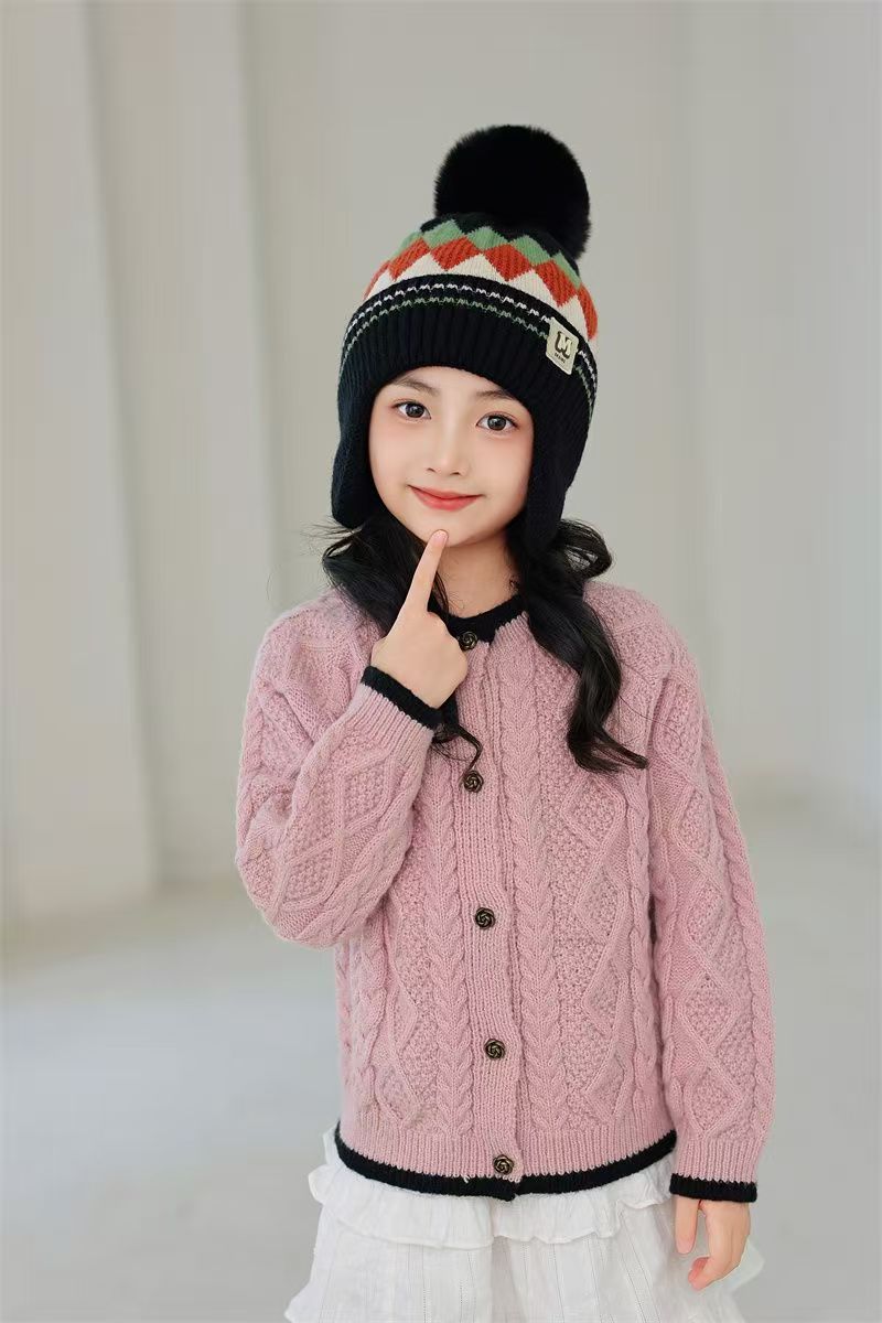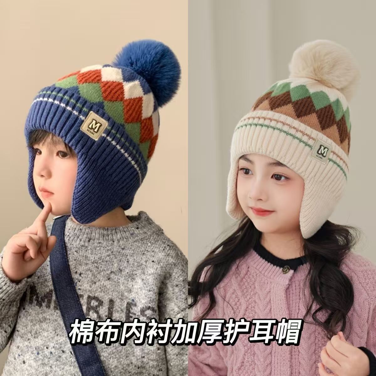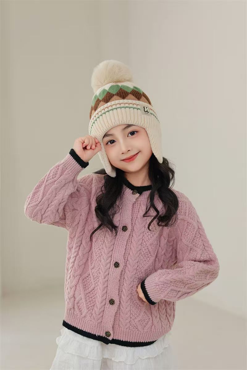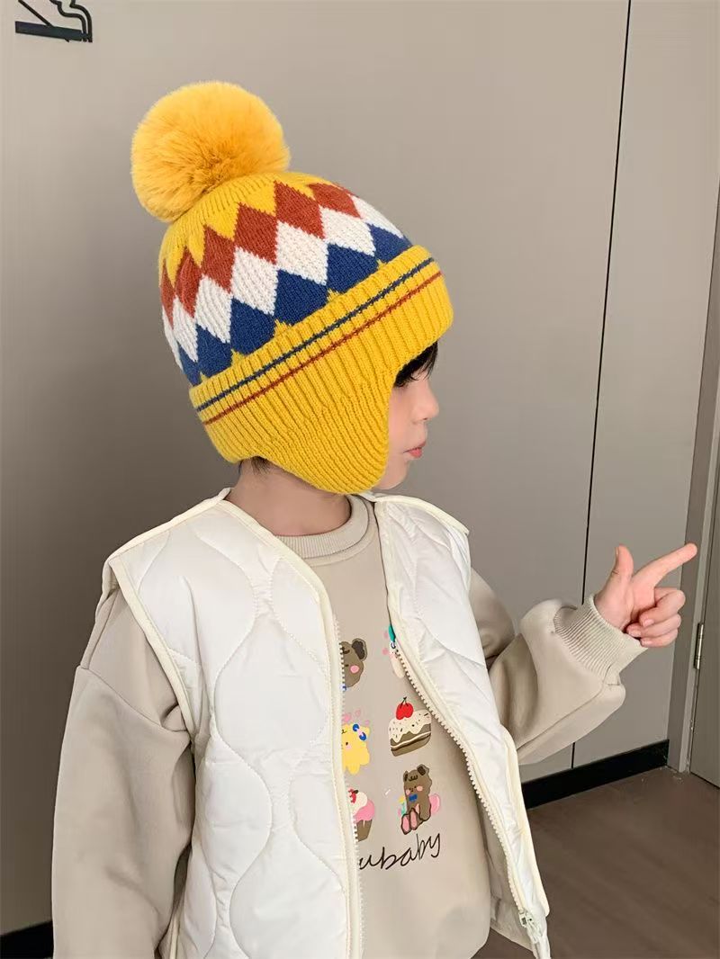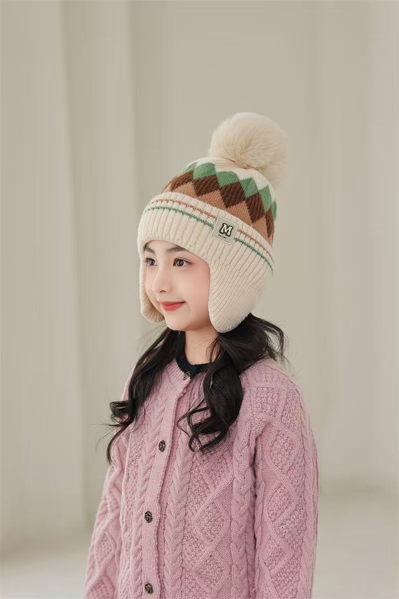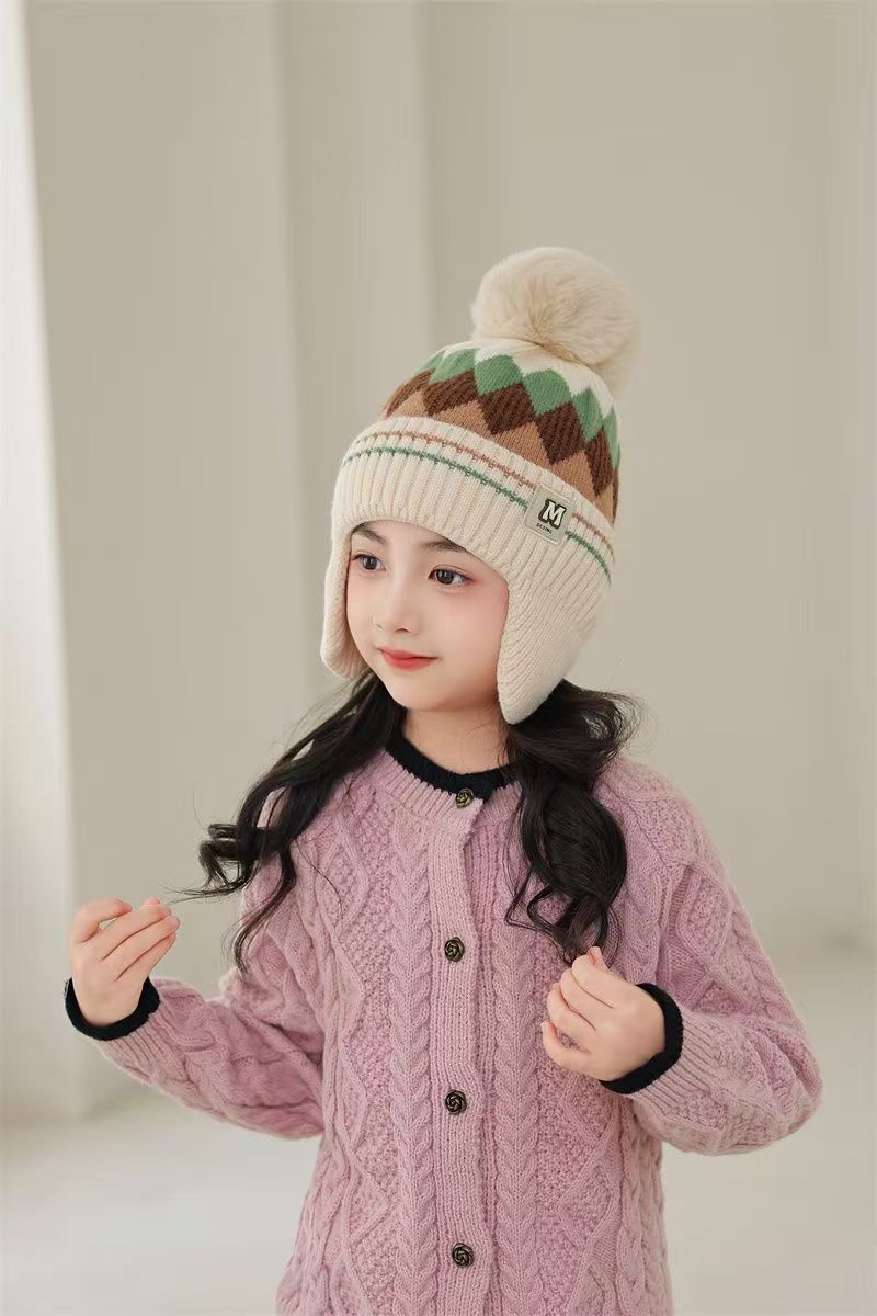 어린이 따뜻한 모자 가을, 겨울 소년과 소녀를위한 마름모 방풍 귀 보호 모자 아기 니트 두꺼운 모직 모자 겨울