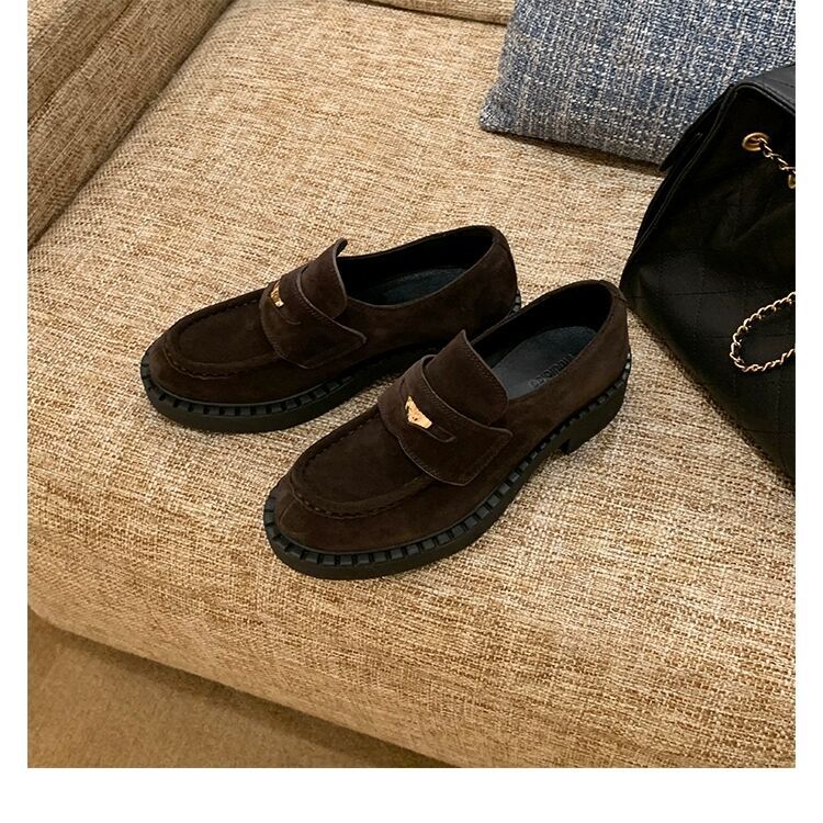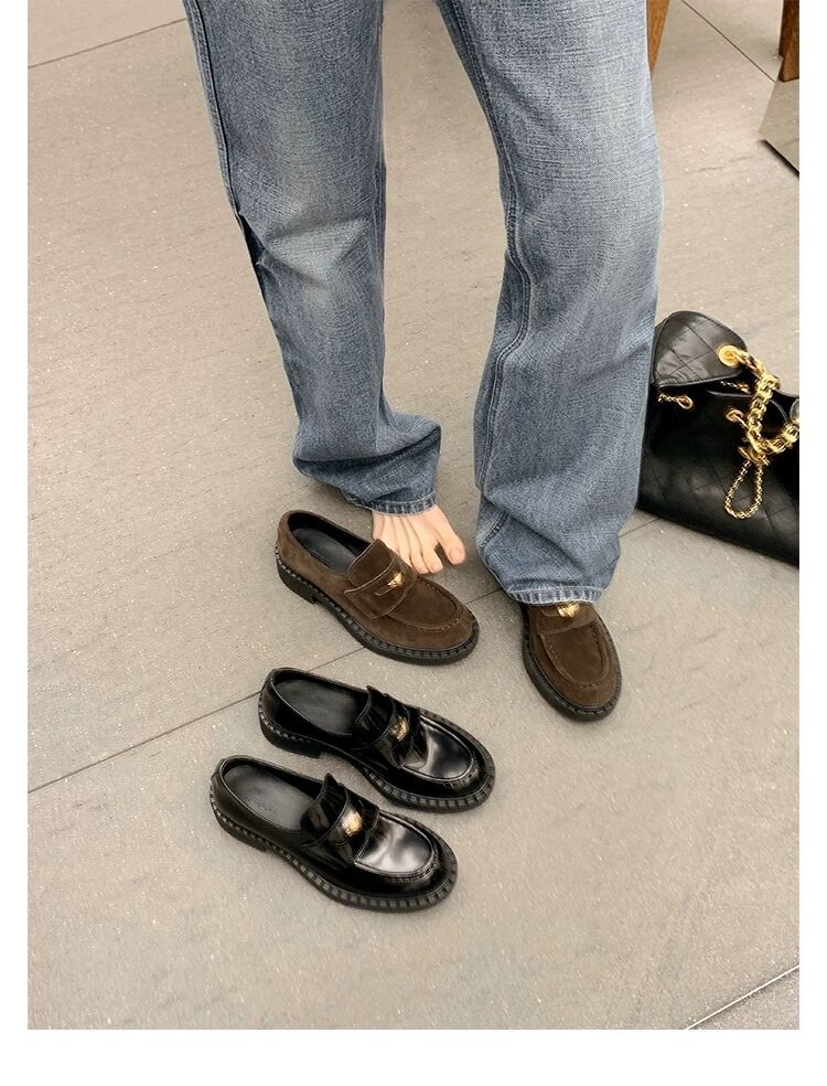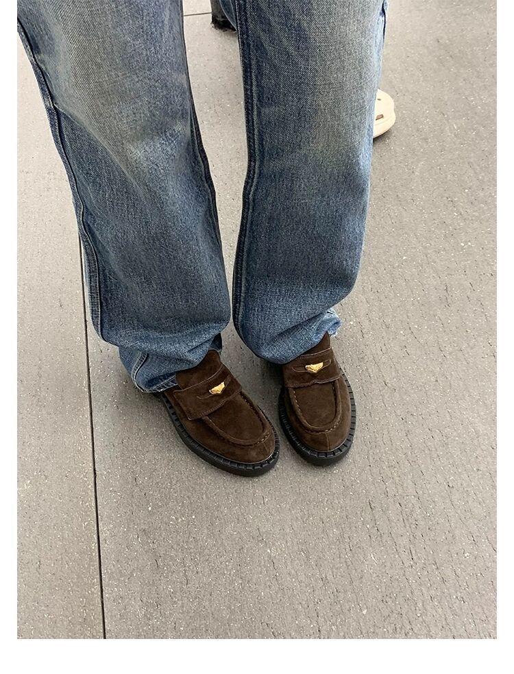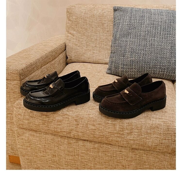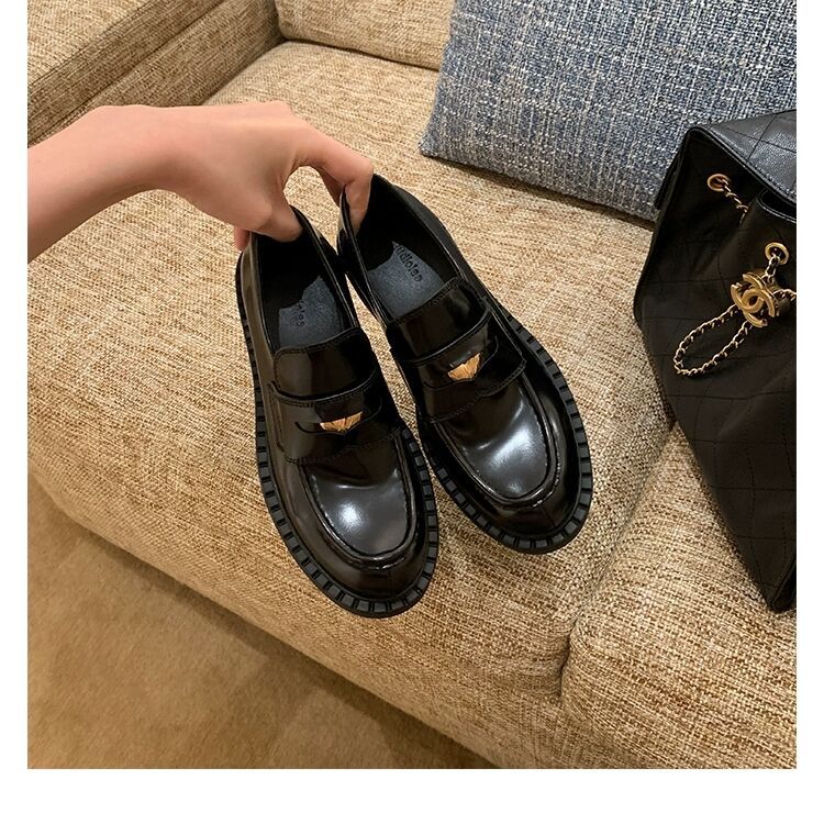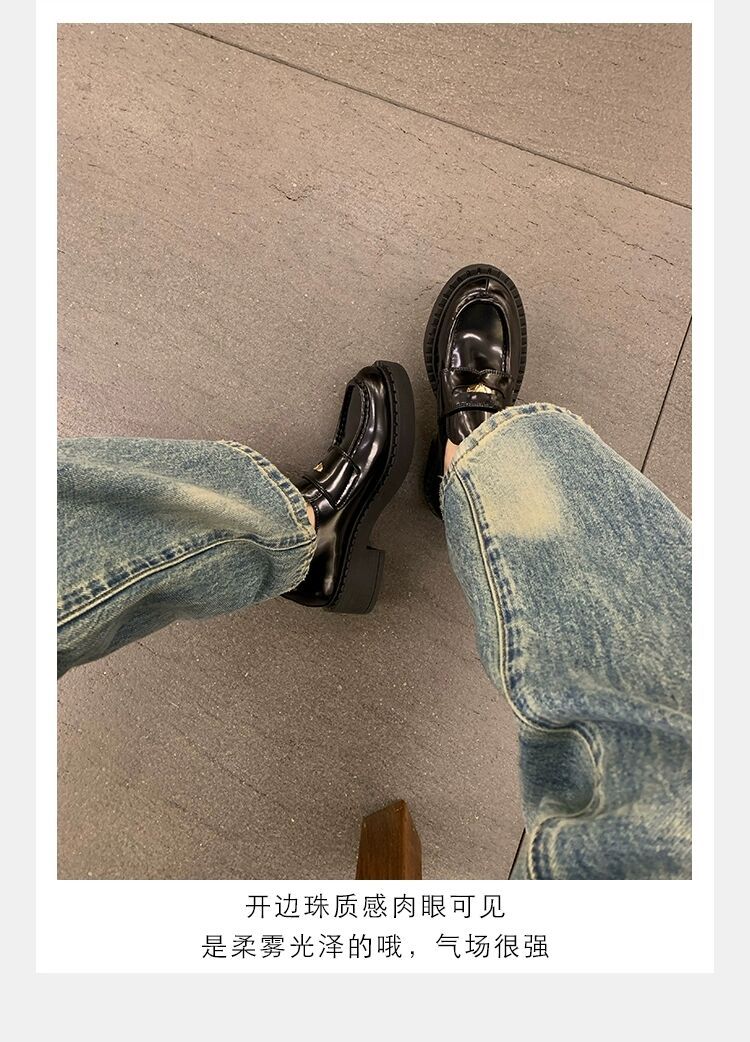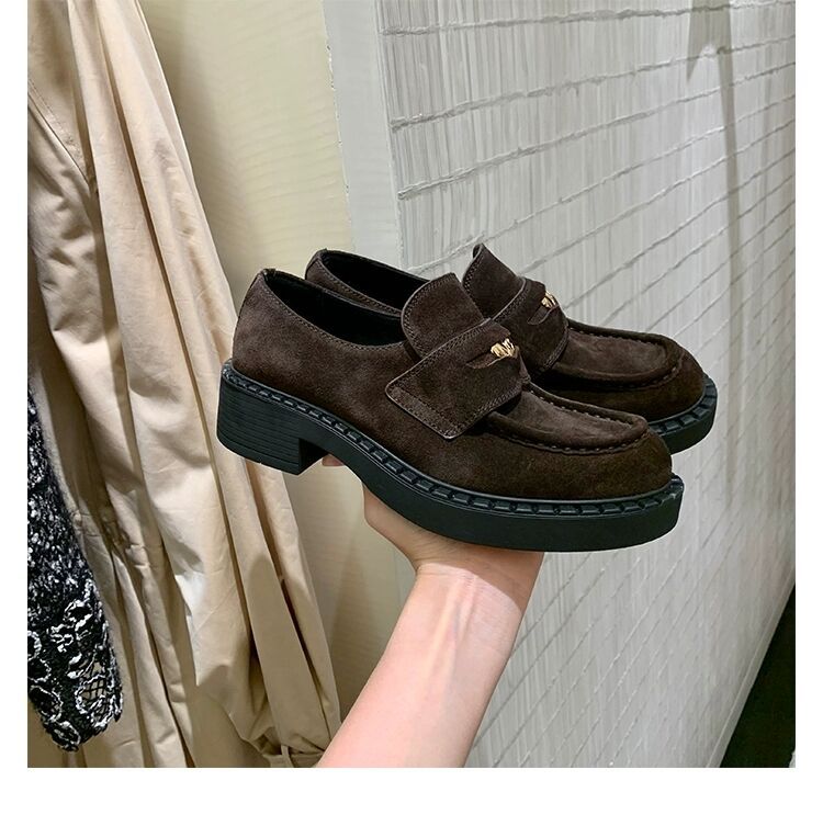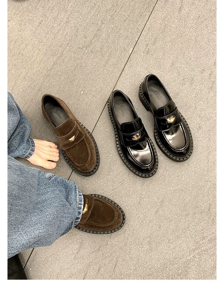 즉시 배송 가능, 키 높이 5cm 증가~ 클래식 오픈토 비즈 소가죽 고급스러운 작은 동전 장식 로퍼