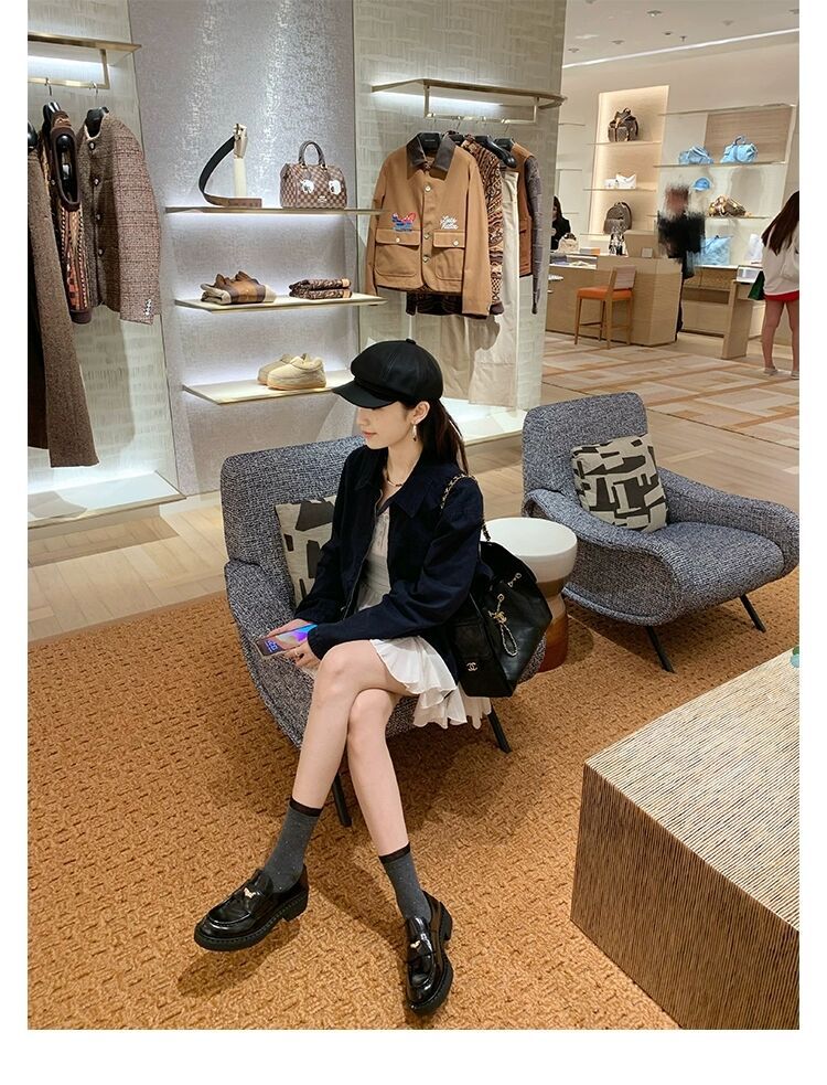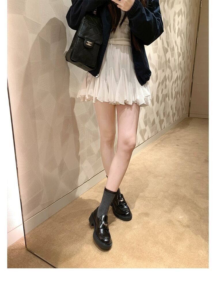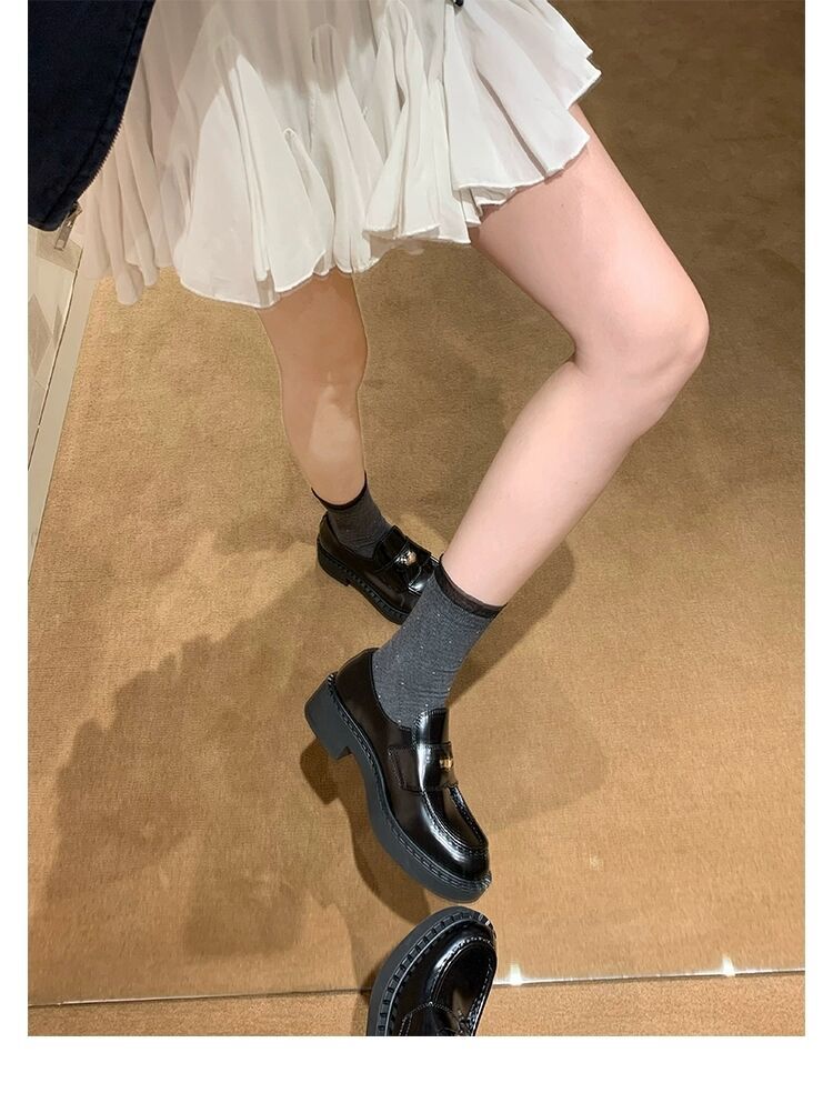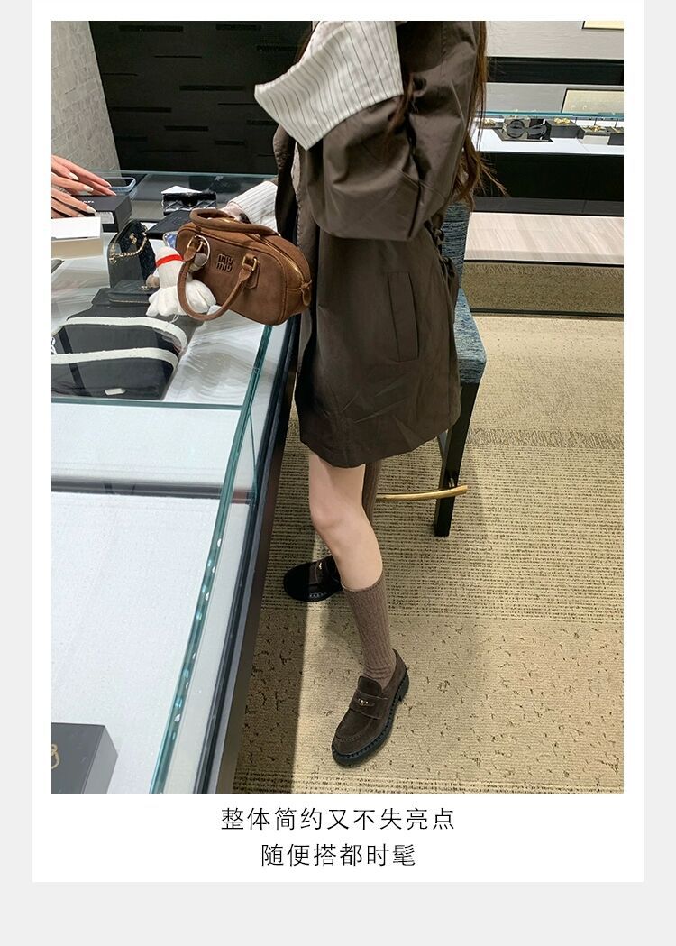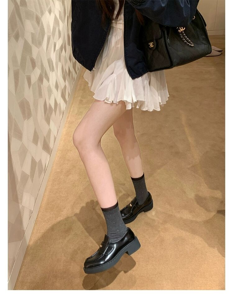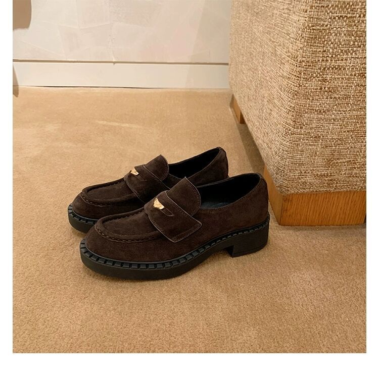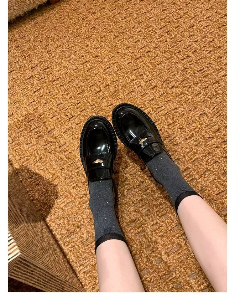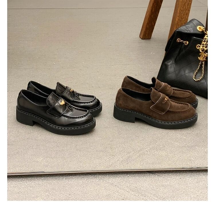 즉시 배송 가능, 키 높이 5cm 증가~ 클래식 오픈토 비즈 소가죽 고급스러운 작은 동전 장식 로퍼