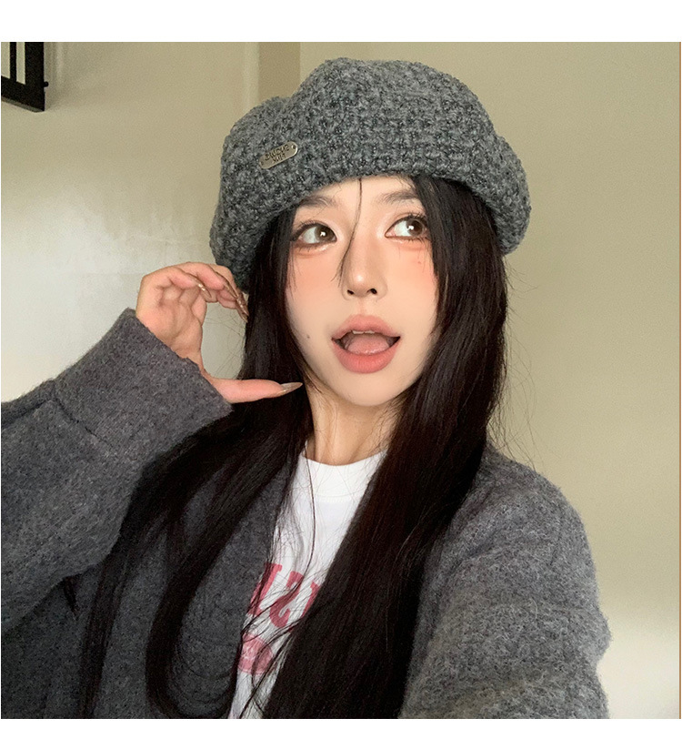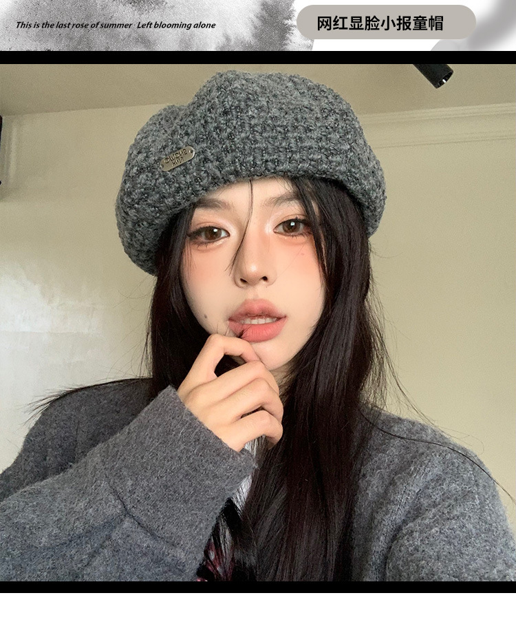 2025년 신형 여성용 베레모, 가을 겨울 대형 머리둘레, 베이비페어 화가 모자, 인터넷 연예인 얼굴이 보이는 작은 신문 모자