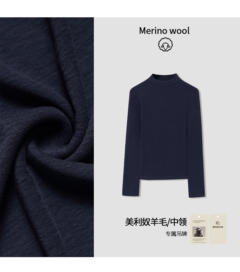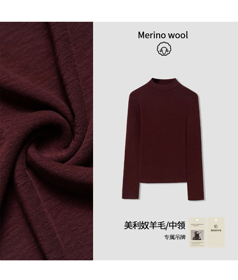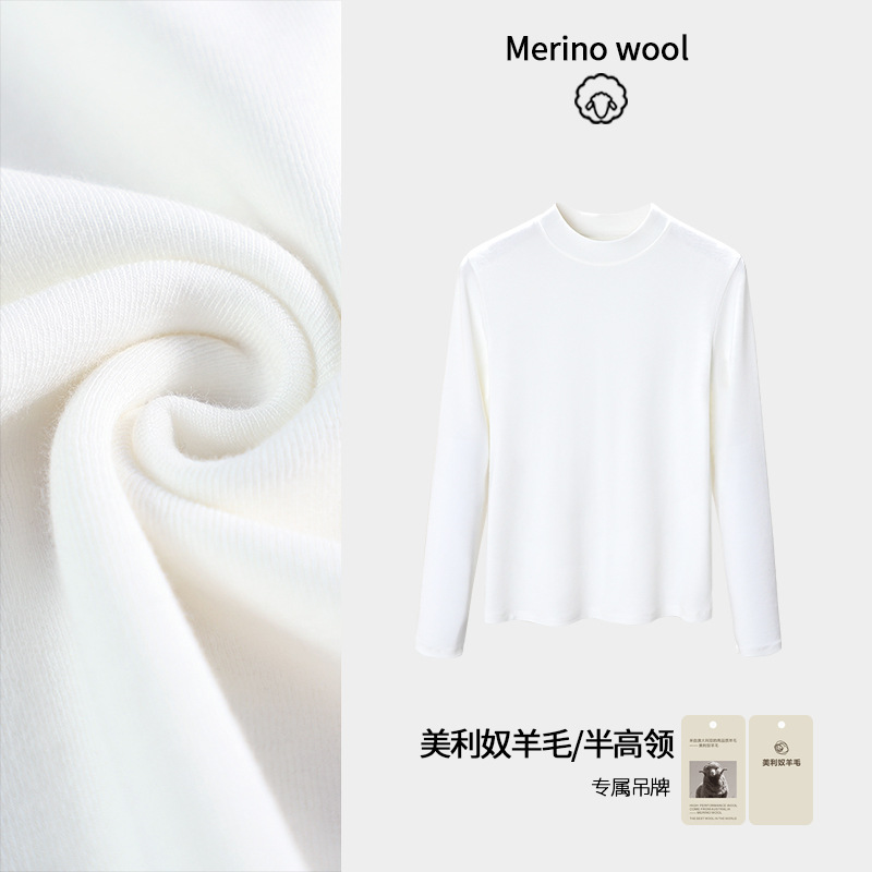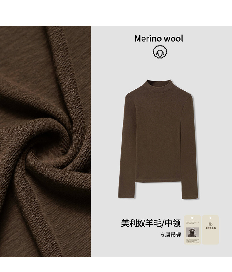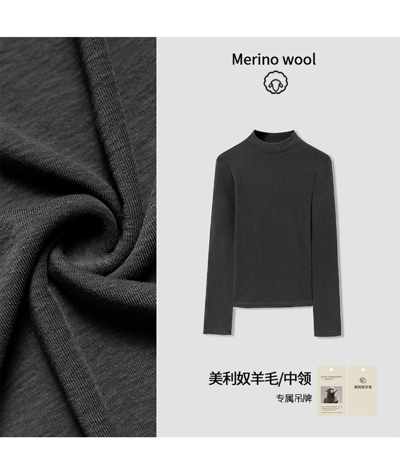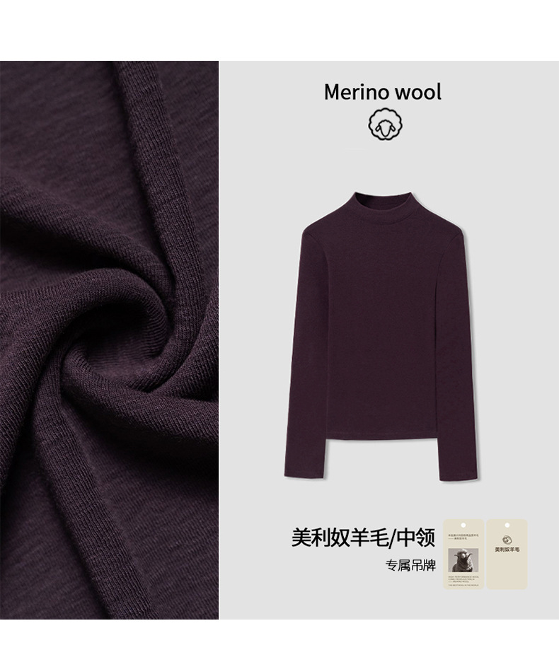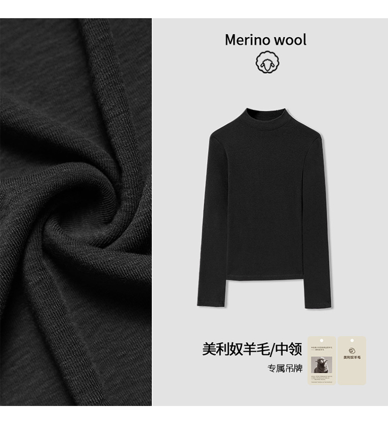 2025 가을 신상 울 소프트 왁시 하이엔드 미드 칼라 슬림핏 스몰 스탠드 칼라 티셔츠 탑과 베이스 레이어로 패셔너블한 스타일