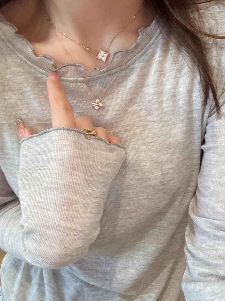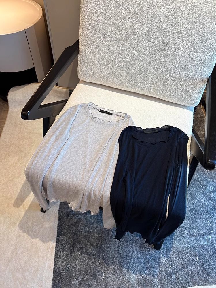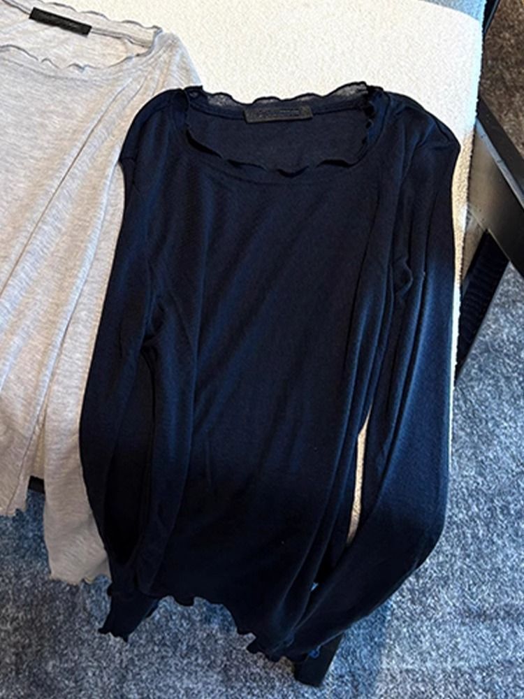 여성용 프렌치 그레이 버진 엣지 긴팔 오른쪽 어깨 티셔츠 초가을 하이엔드 이너 레이어드 셔츠 쇼트 슬림핏 탑