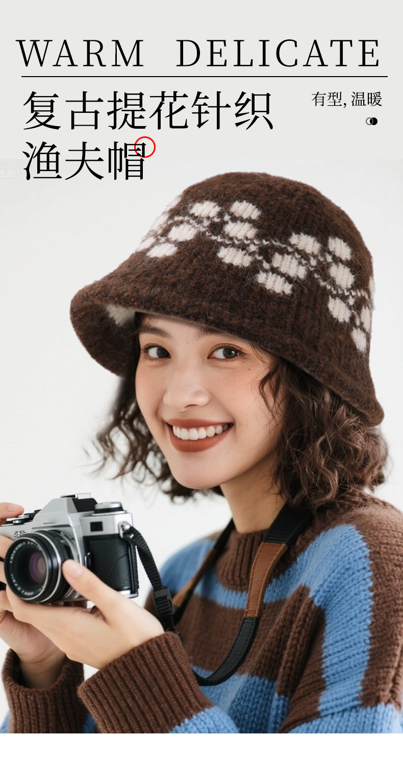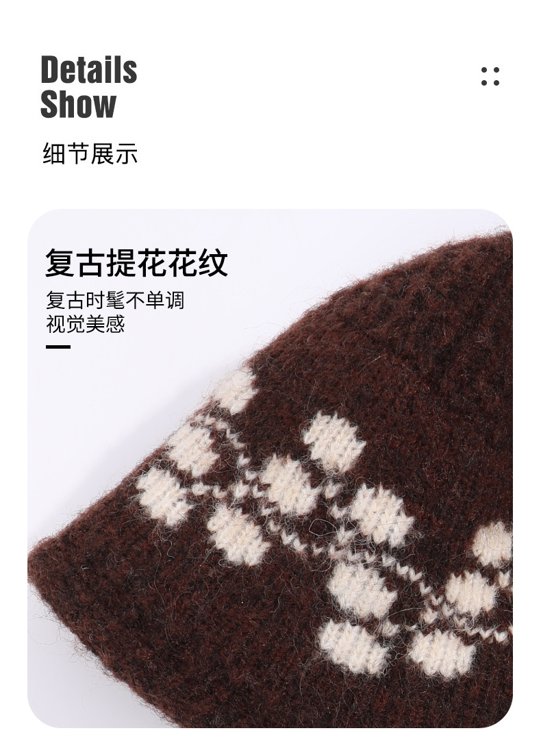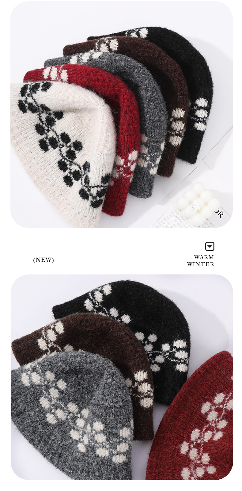 새로운 겨울 야외 모자 남자 복고풍 자카드 어부 니트 모자 여성 혼합 양모 방한 따뜻한 모자 여성
