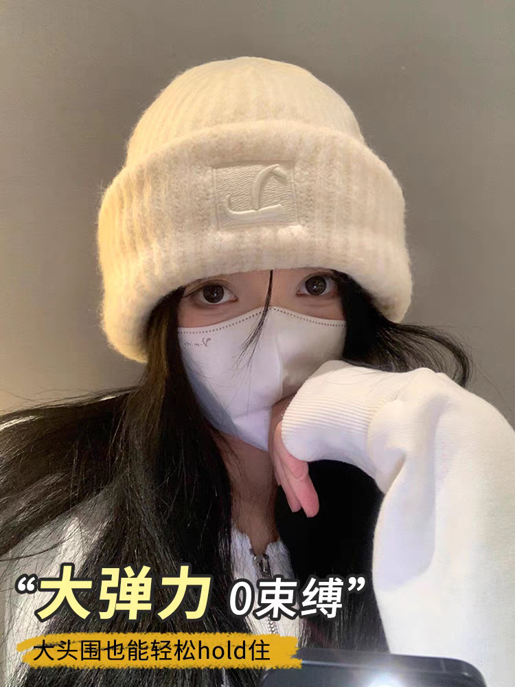 모자 여성 가을, 겨울 플러시 푸시 모자 큰 머리 둘레 다목적 패션 한국 스타일 모직 모자 따뜻한 귀 보호 니트 모자
