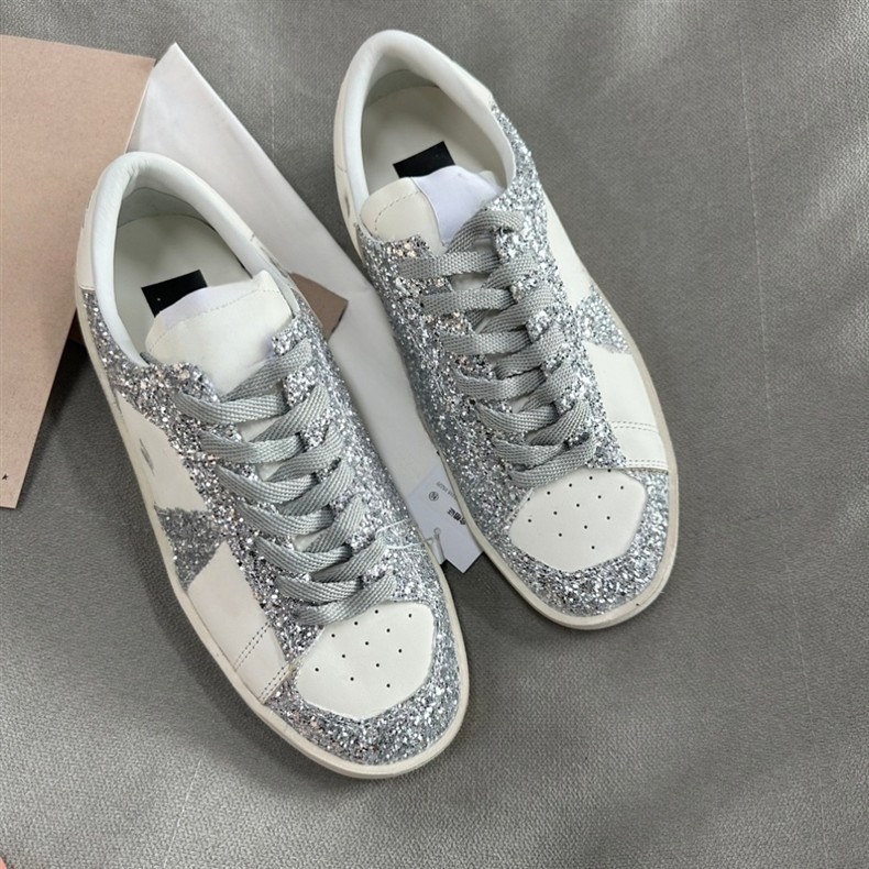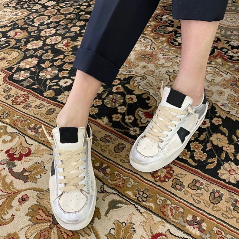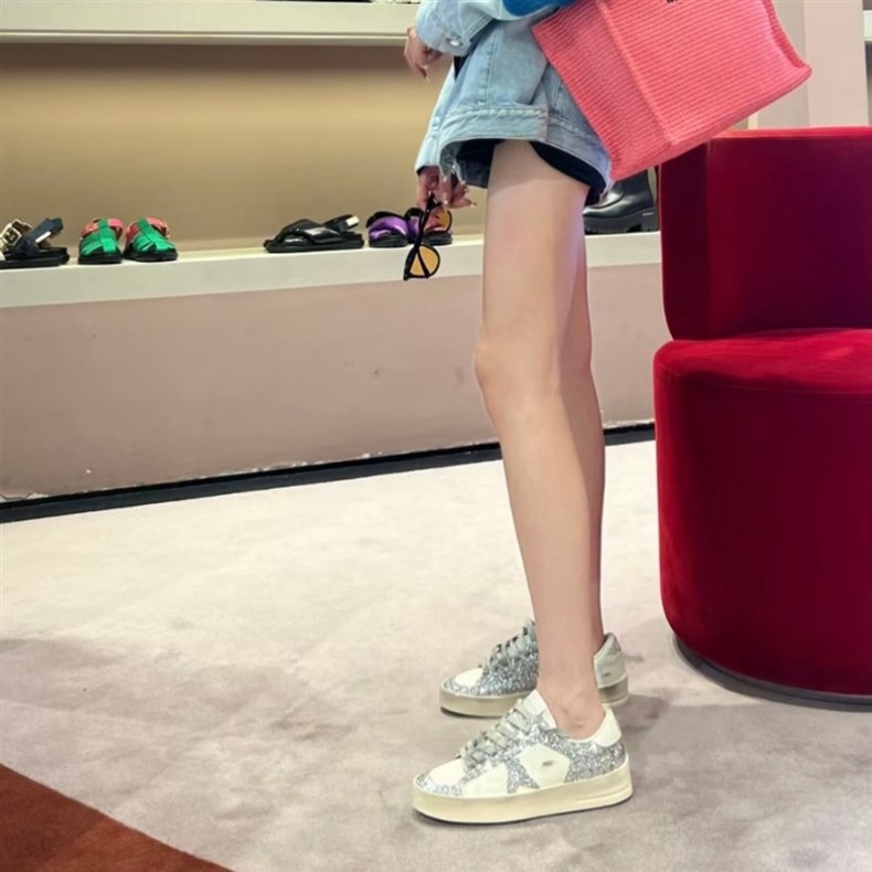 2025 레트로 올드 스타 더티 슈즈 더티 슈즈 캐주얼 스니커즈 레이스 업 스팽글 화이트 슈즈 여성용