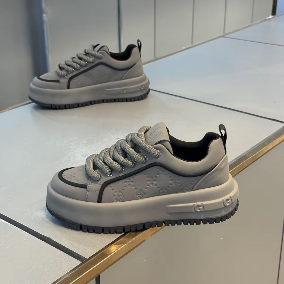 인기 남성 신발 2025 가을 새로운 프린트 두꺼운 밑창 캐주얼 신발 레이스 업 로우 탑 스니커즈 트렌디하고 다재다능한 운동화
