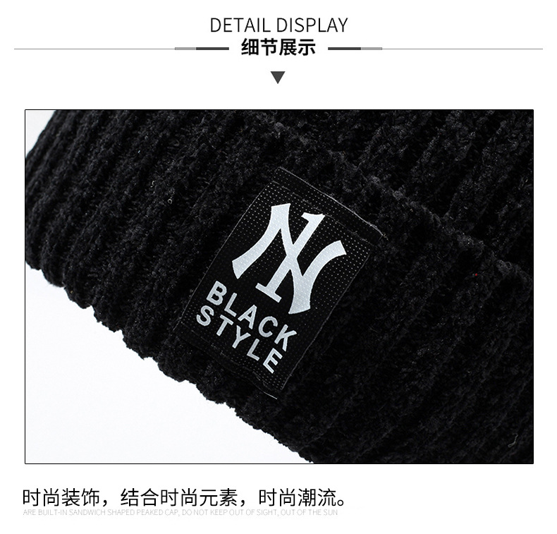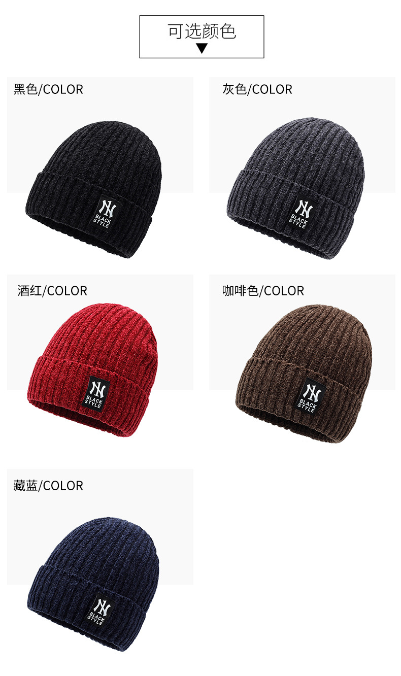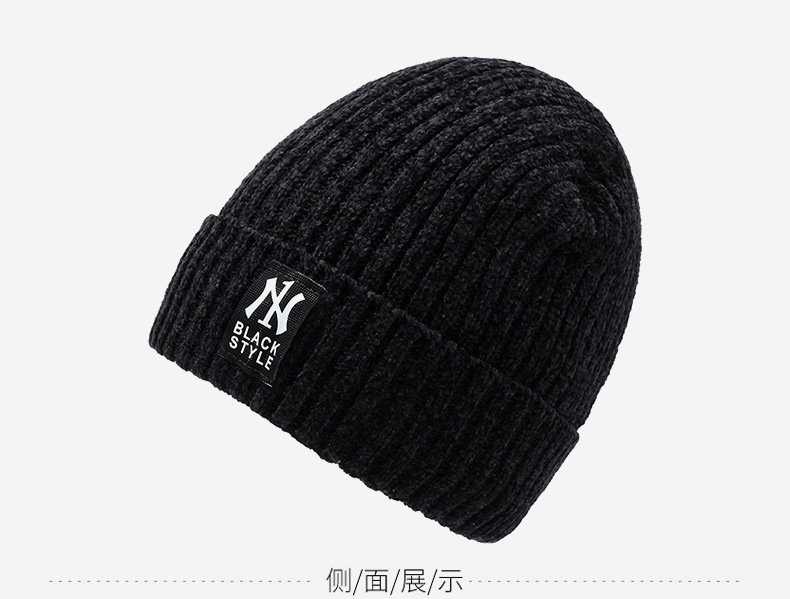 셔닐 니트 모자, 따뜻하고 방한 기능이 있는 면 모자, 벨벳 안감과 두꺼운 남성용 모자, 스키 겨울 야외용 풀오버 모자