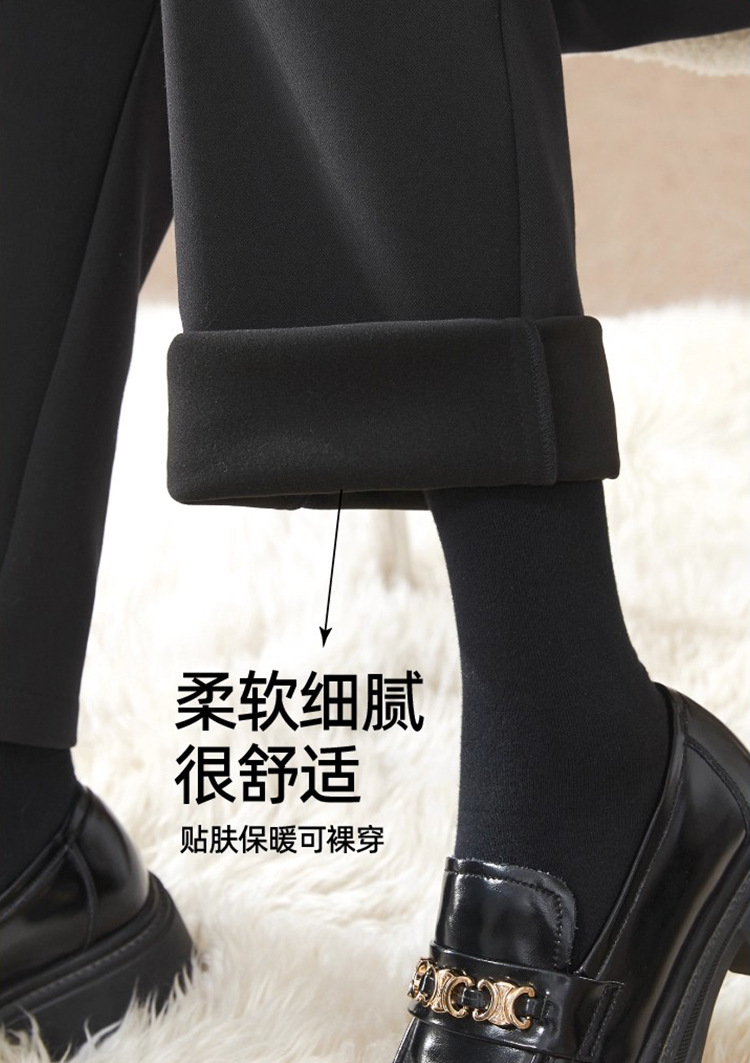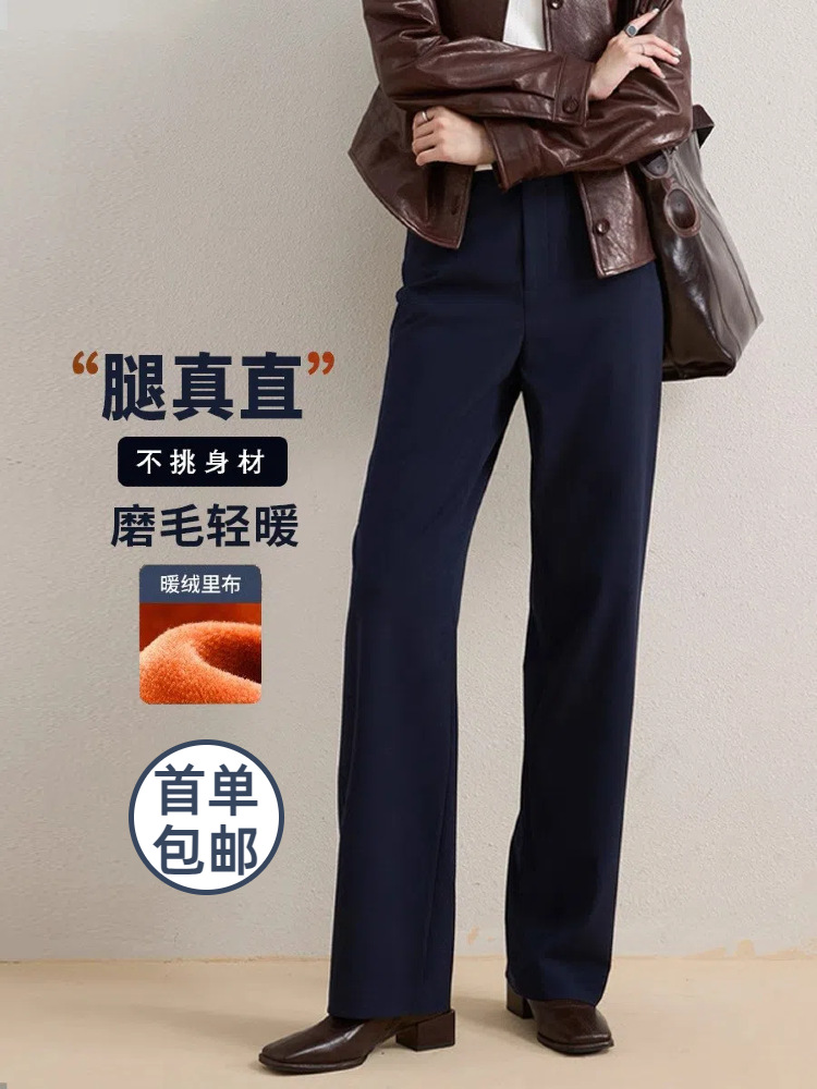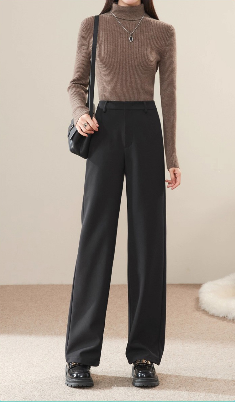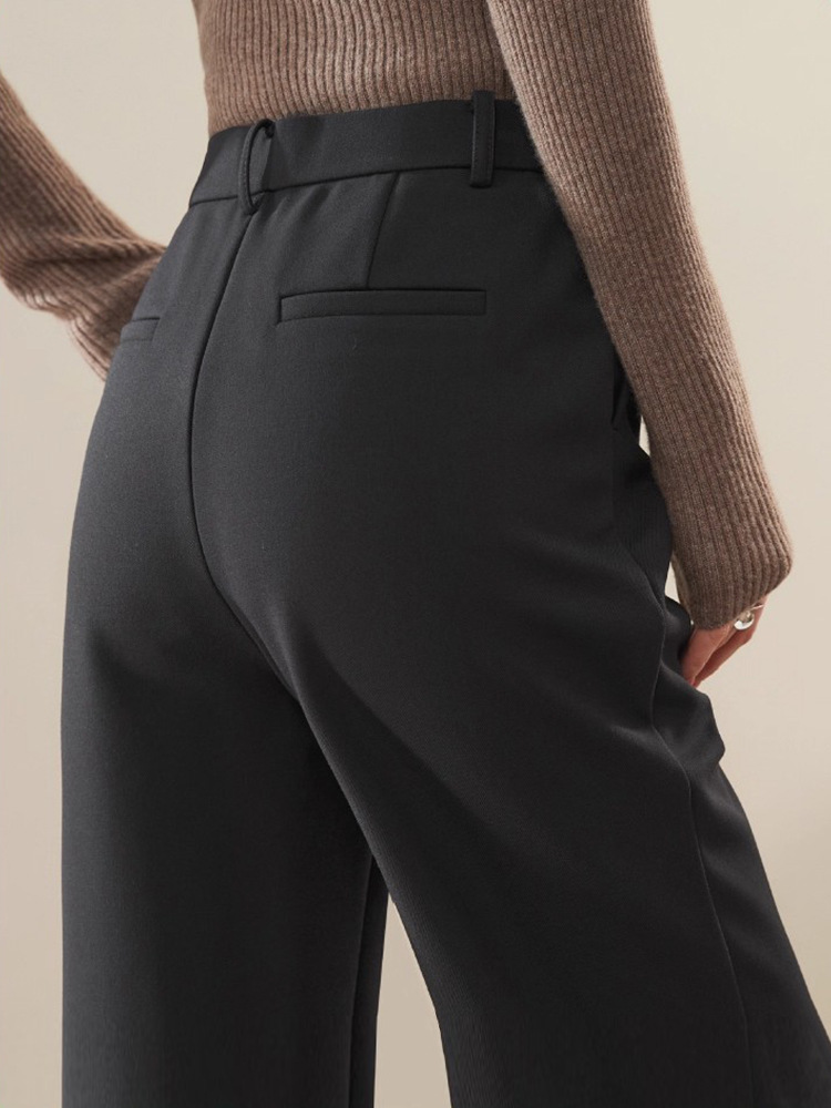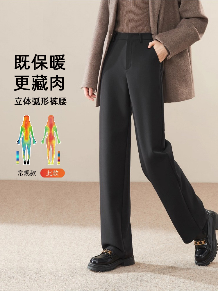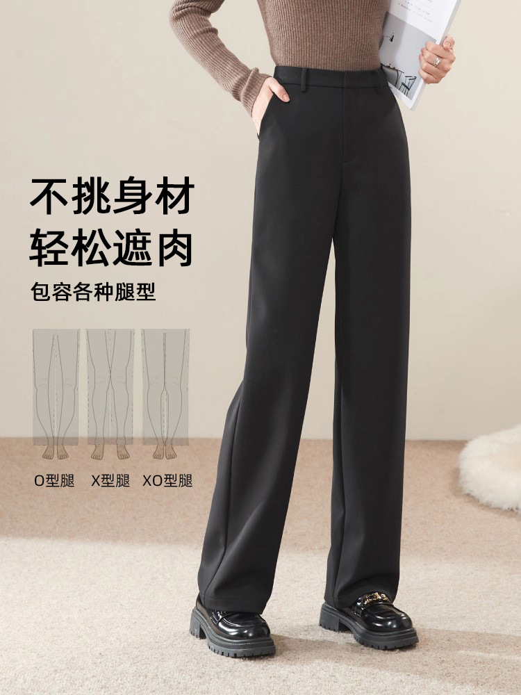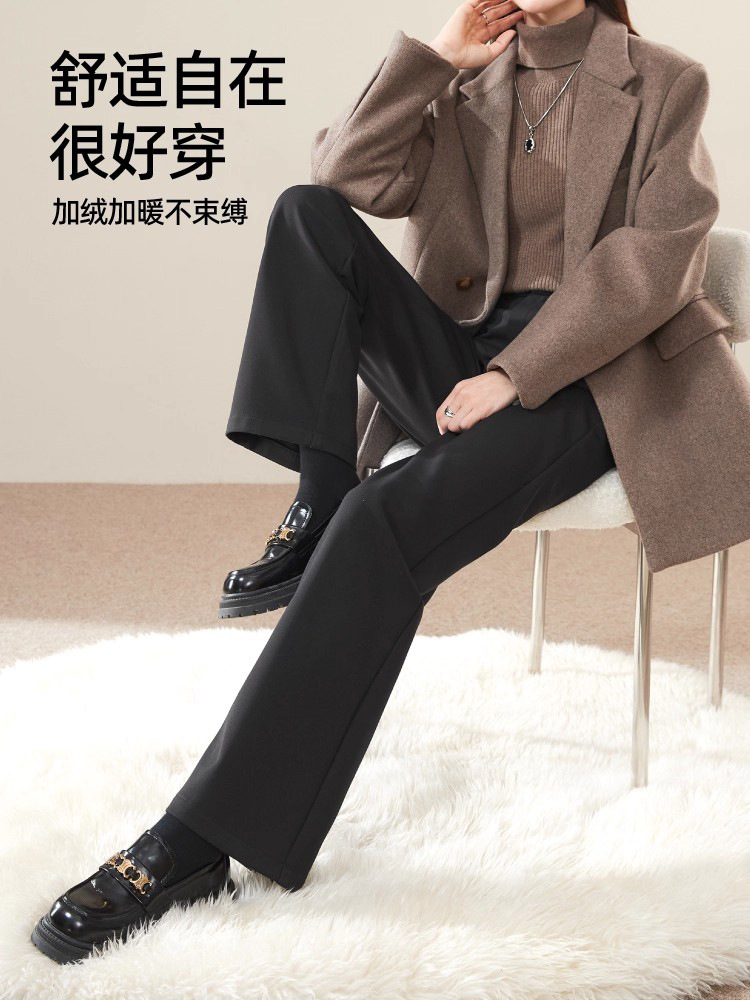 여성용 캐주얼 팬츠 가을 신상 고급스러운 슬림핏 와이드 팬츠 블랙 기모 두꺼운 여성용 팬츠 출근용 정장 팬츠