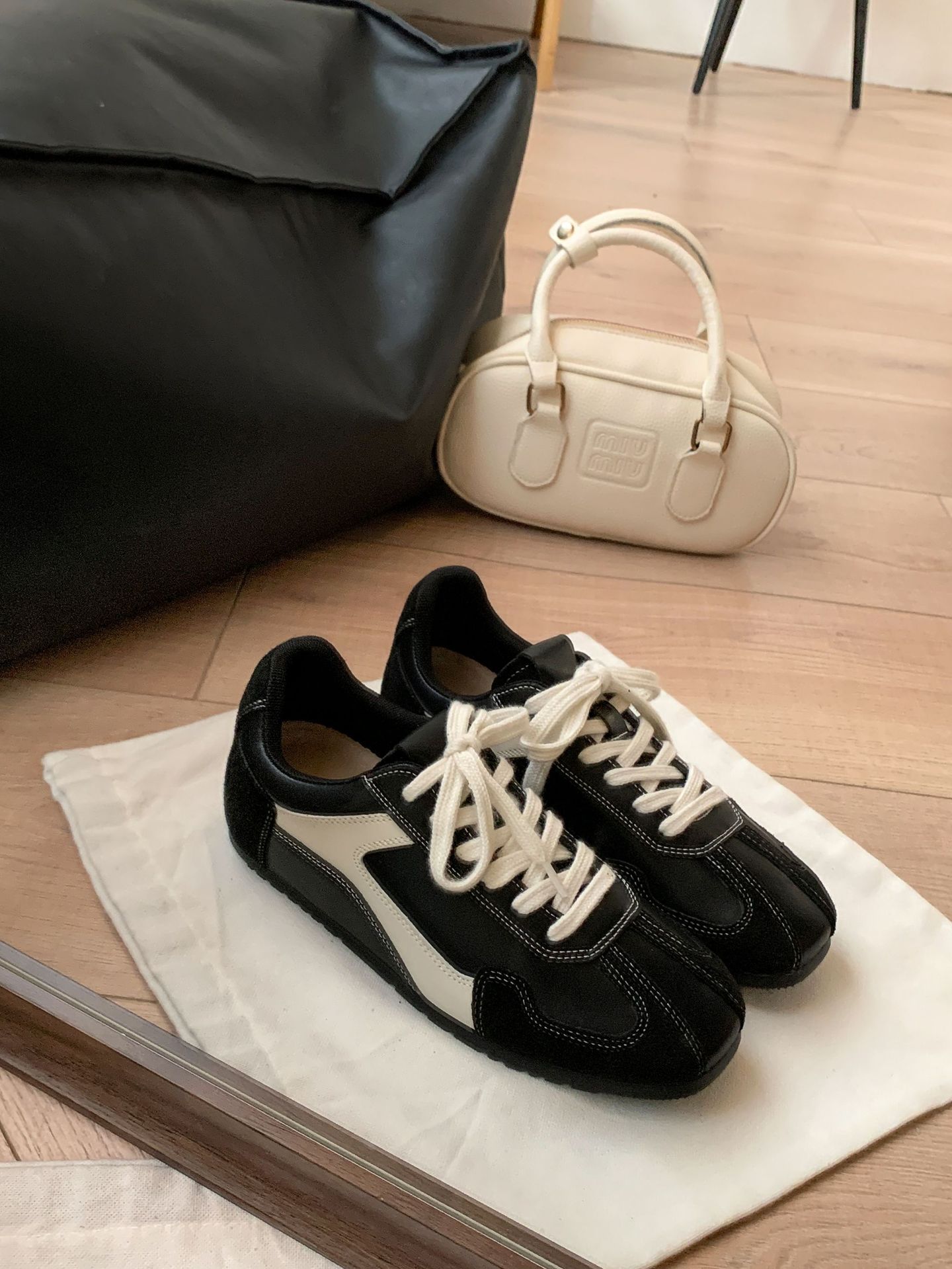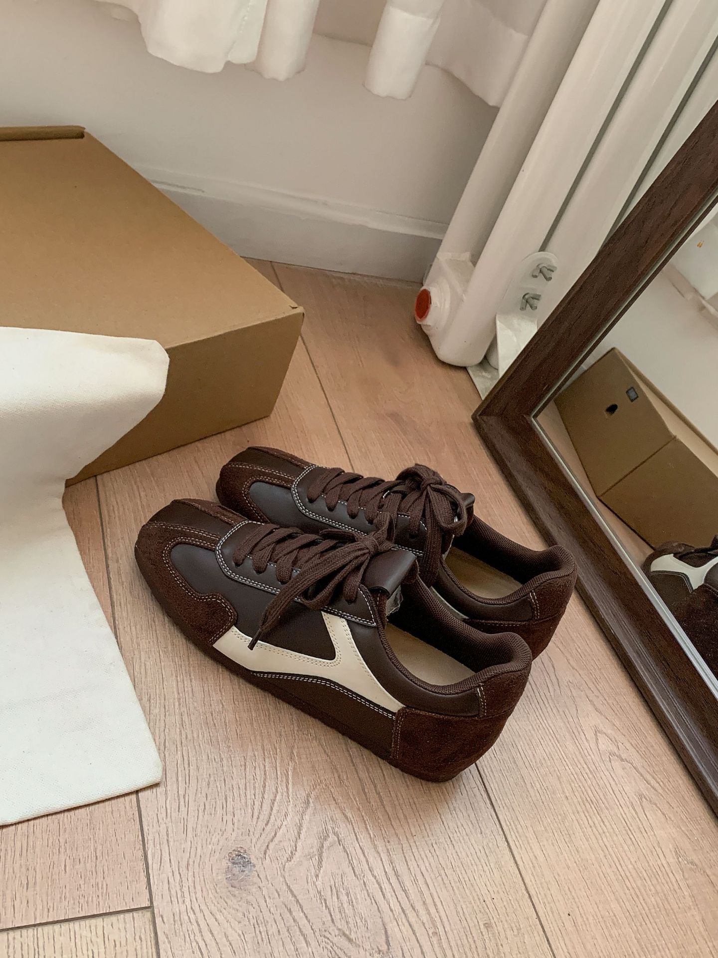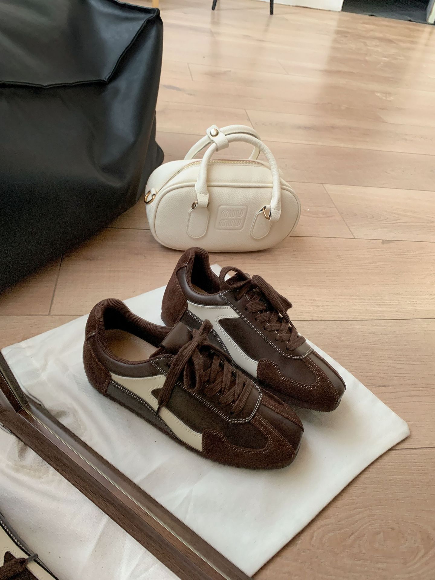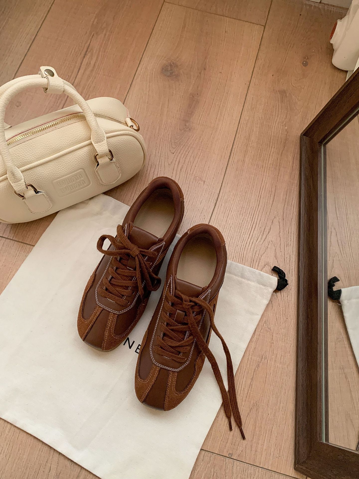 부드러운 가죽 버전~ 가을 유행 레트로 배색 라운드 스퀘어 토 캐주얼 스타일 인스 여성 키높이 아가르드 트레이닝화