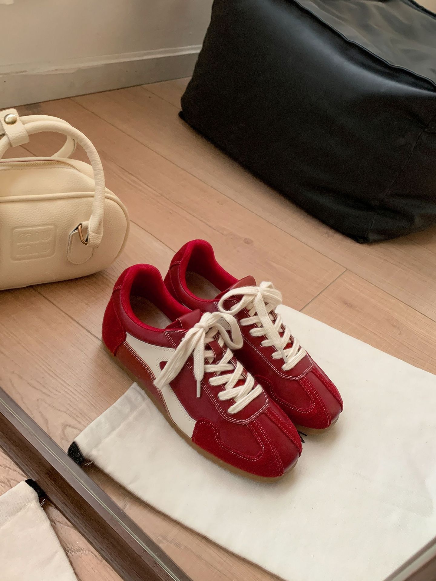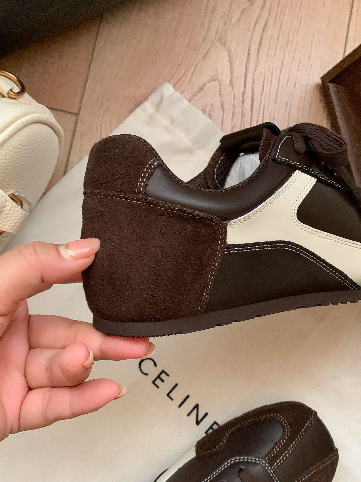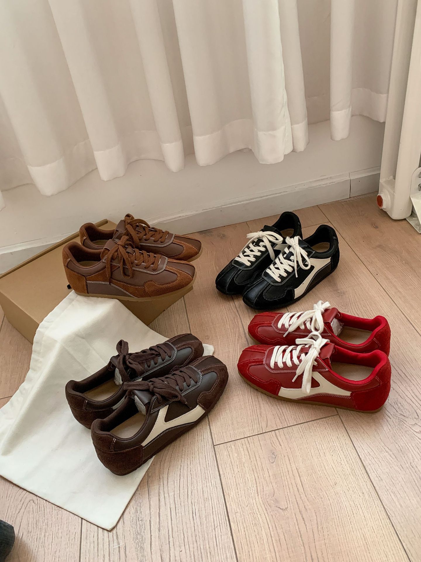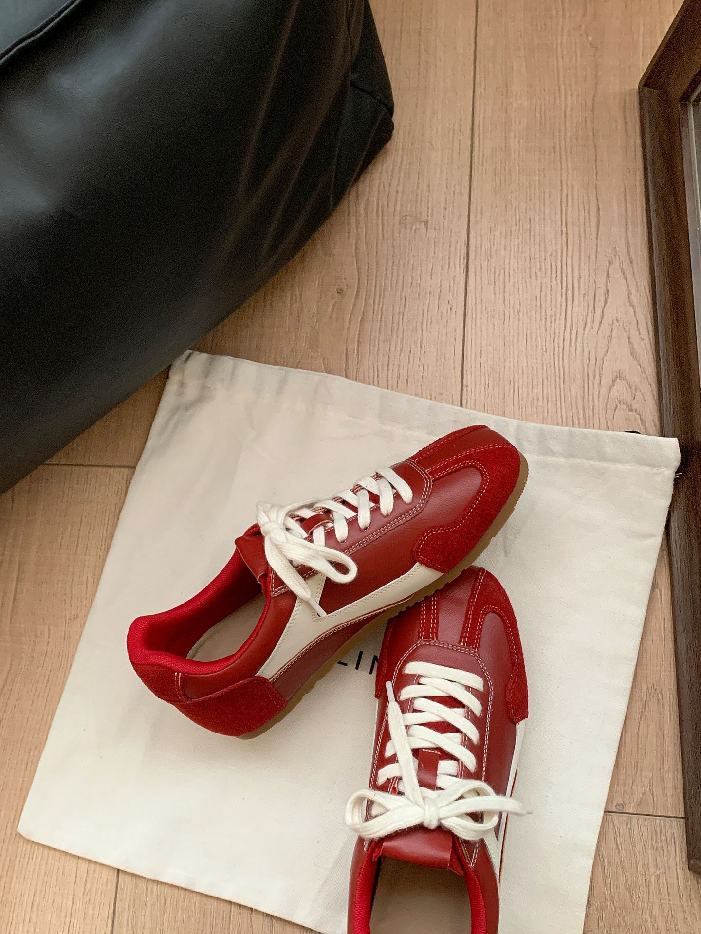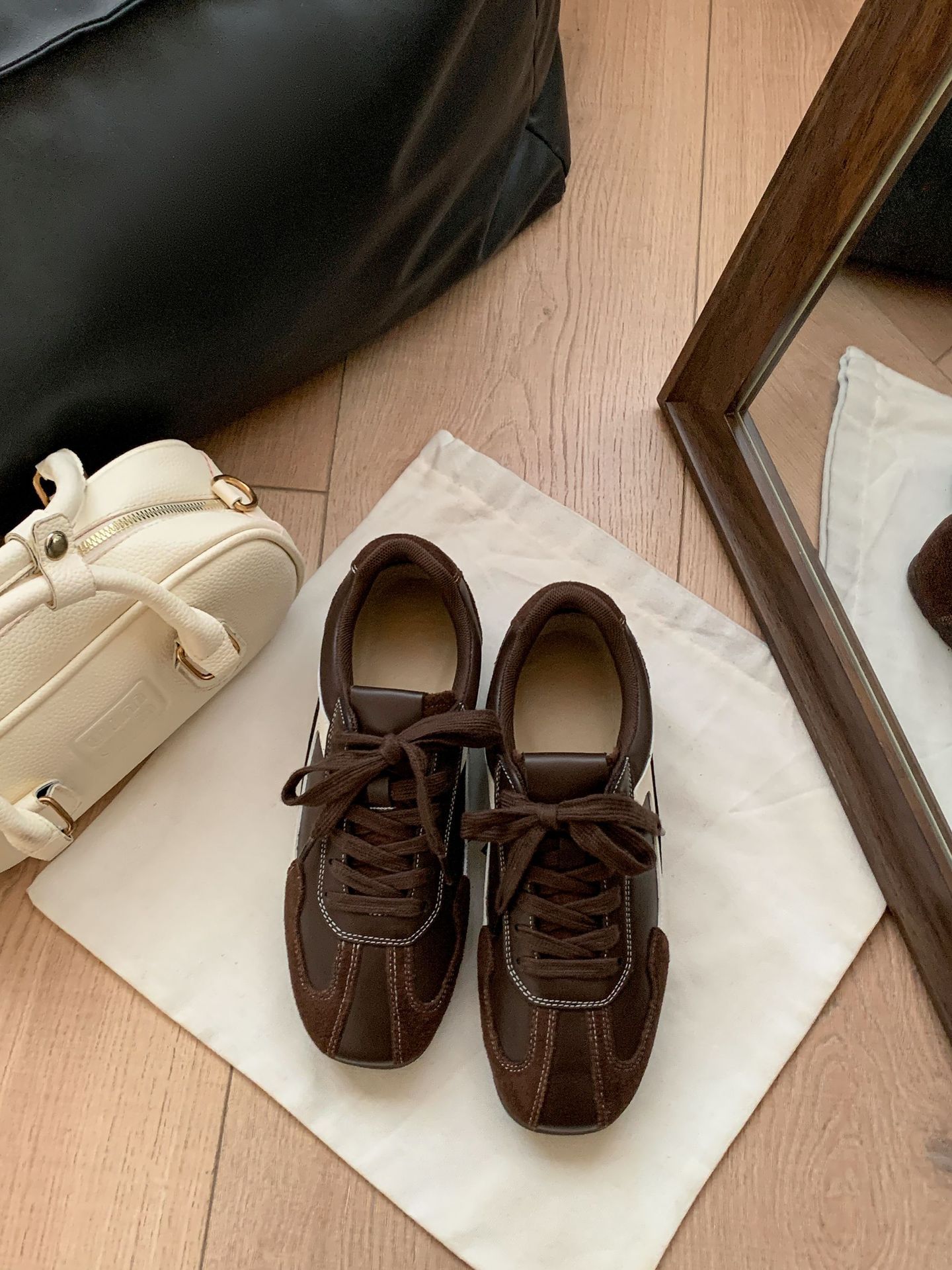 부드러운 가죽 버전~ 가을 유행 레트로 배색 라운드 스퀘어 토 캐주얼 스타일 인스 여성 키높이 아가르드 트레이닝화