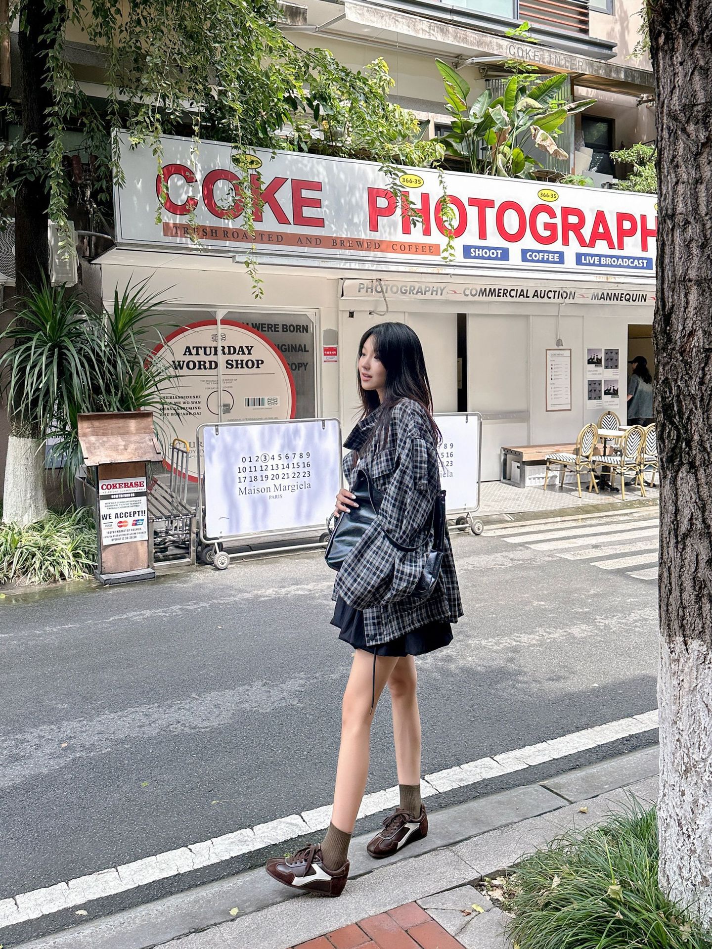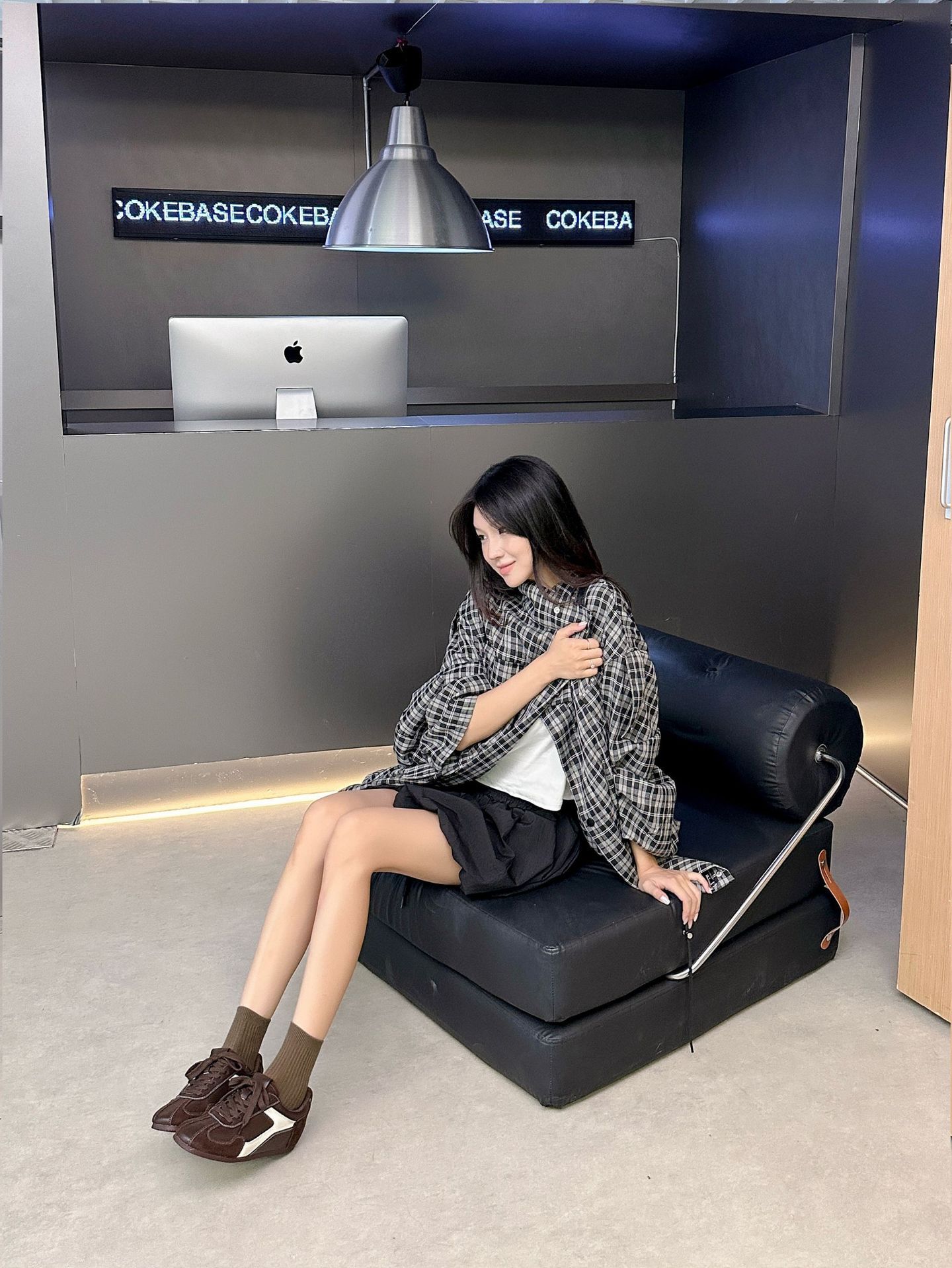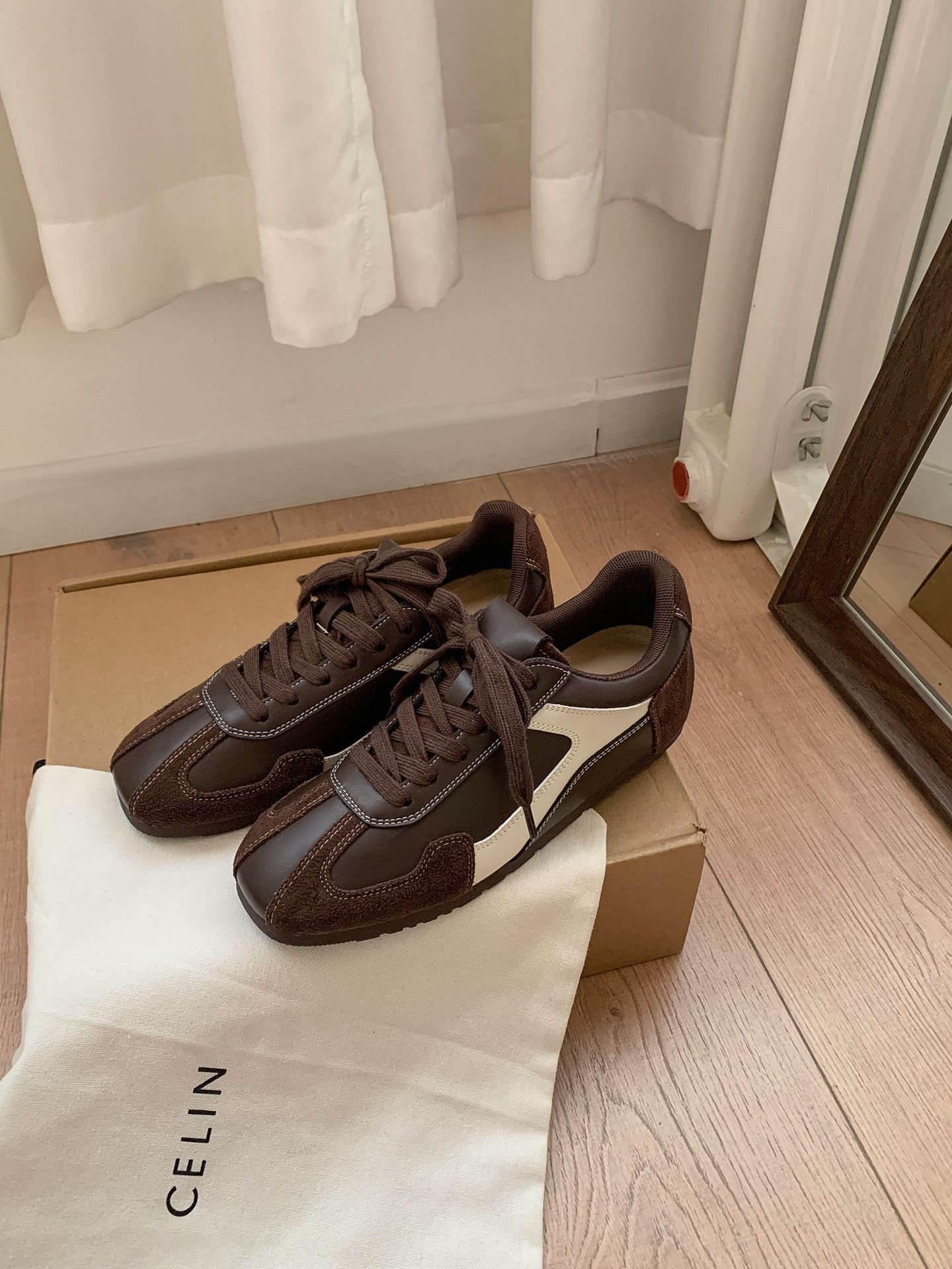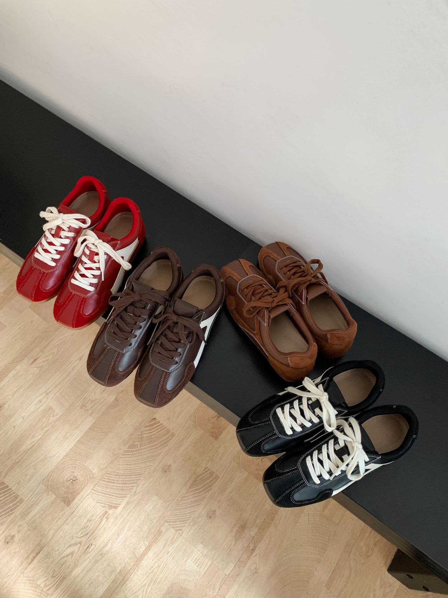 부드러운 가죽 버전~ 가을 유행 레트로 배색 라운드 스퀘어 토 캐주얼 스타일 인스 여성 키높이 아가르드 트레이닝화