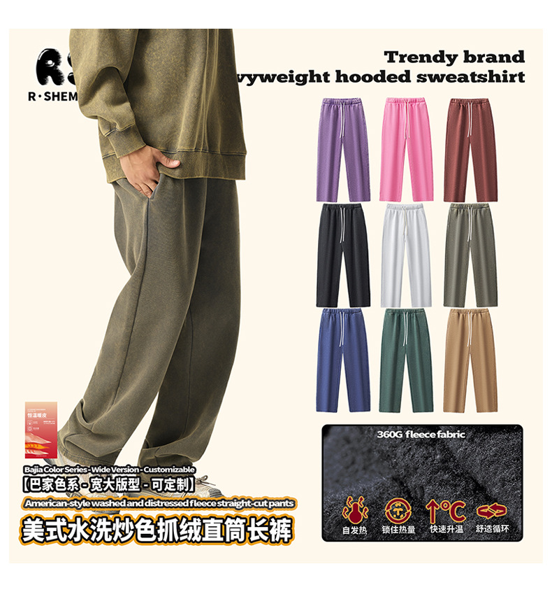 RS 남성복 | 남성용 크로스보더 360G 프라이드 워싱 디스트레스드 캐주얼 팬츠 남성용 크로스보더 유럽 및 미국 ins 헤비급 와이드 레그 스웨트팬츠