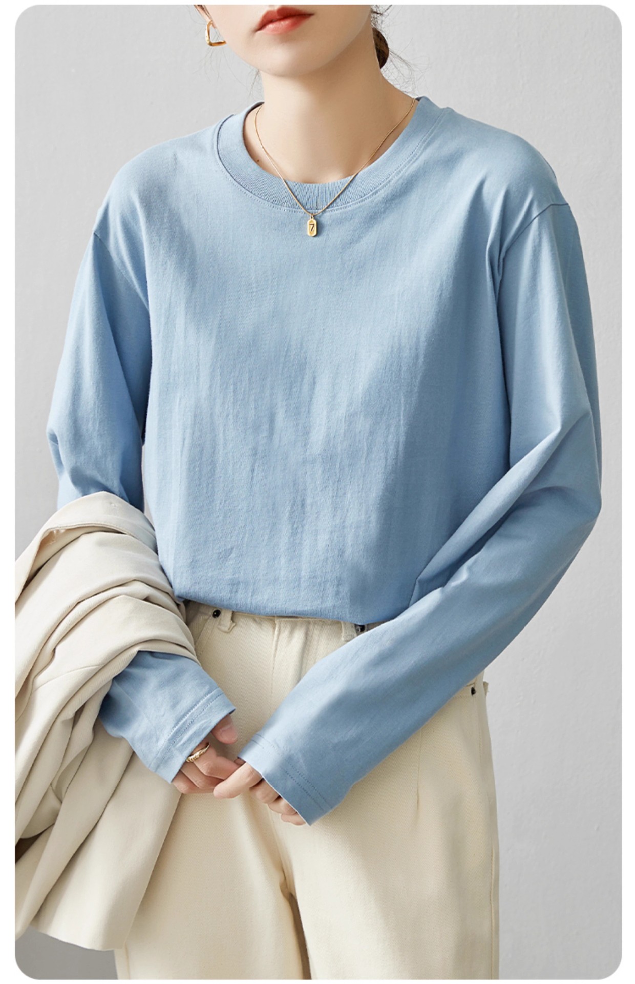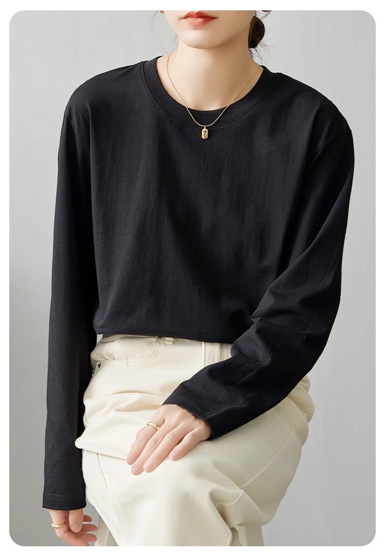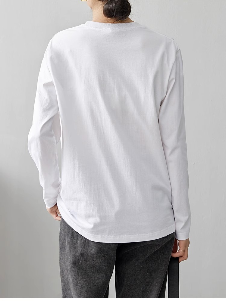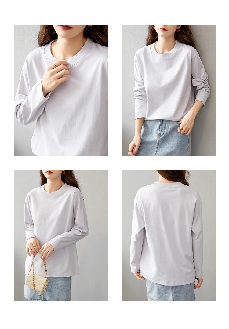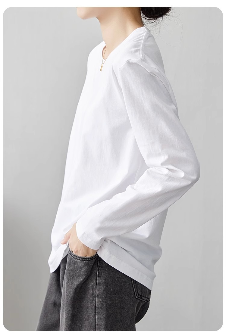 신장 순면 흰색 긴팔 티셔츠 여성용 봄, 가을, 겨울 기본 레이어드 셔츠 다용도 캐주얼 상의