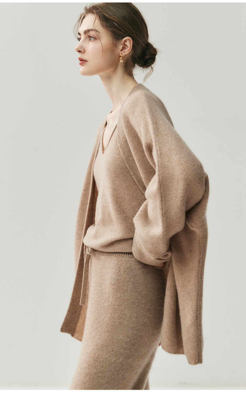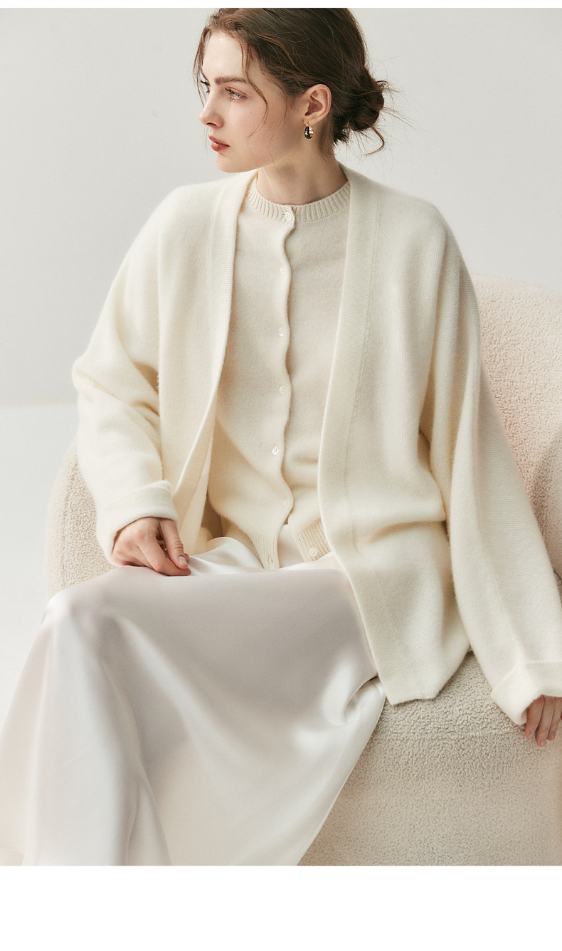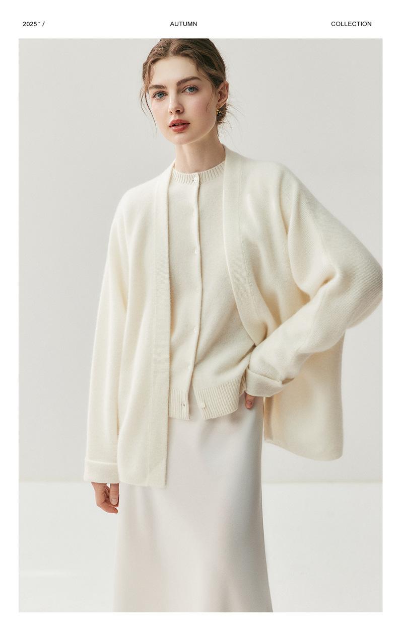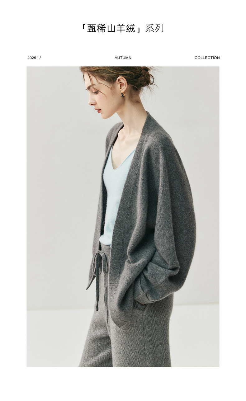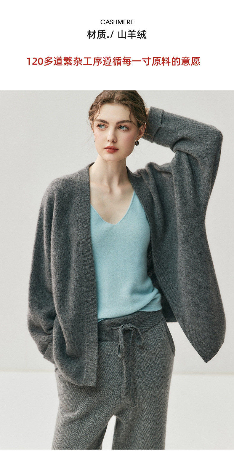 루즈하고 여유로운 스타일의 캐시미어 가디건 여성용 숄 스웨터 피부 친화적이고 부드러운 코트 가을 겨울 신상 니트웨어 아우터
