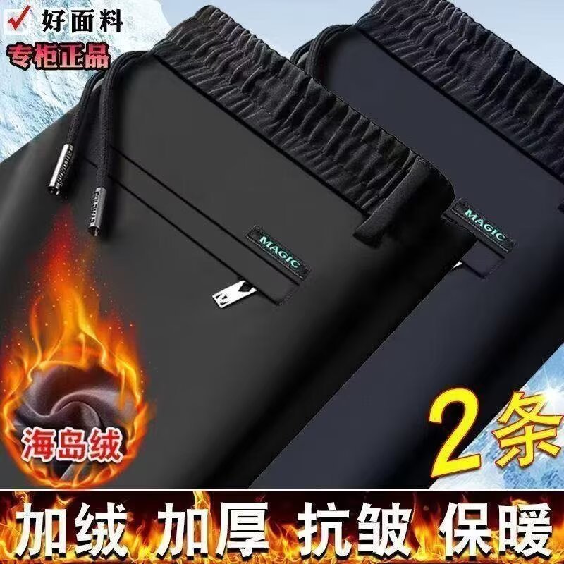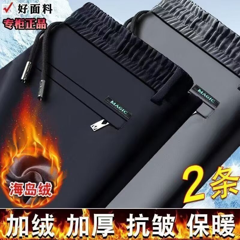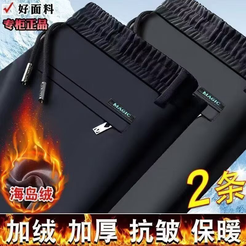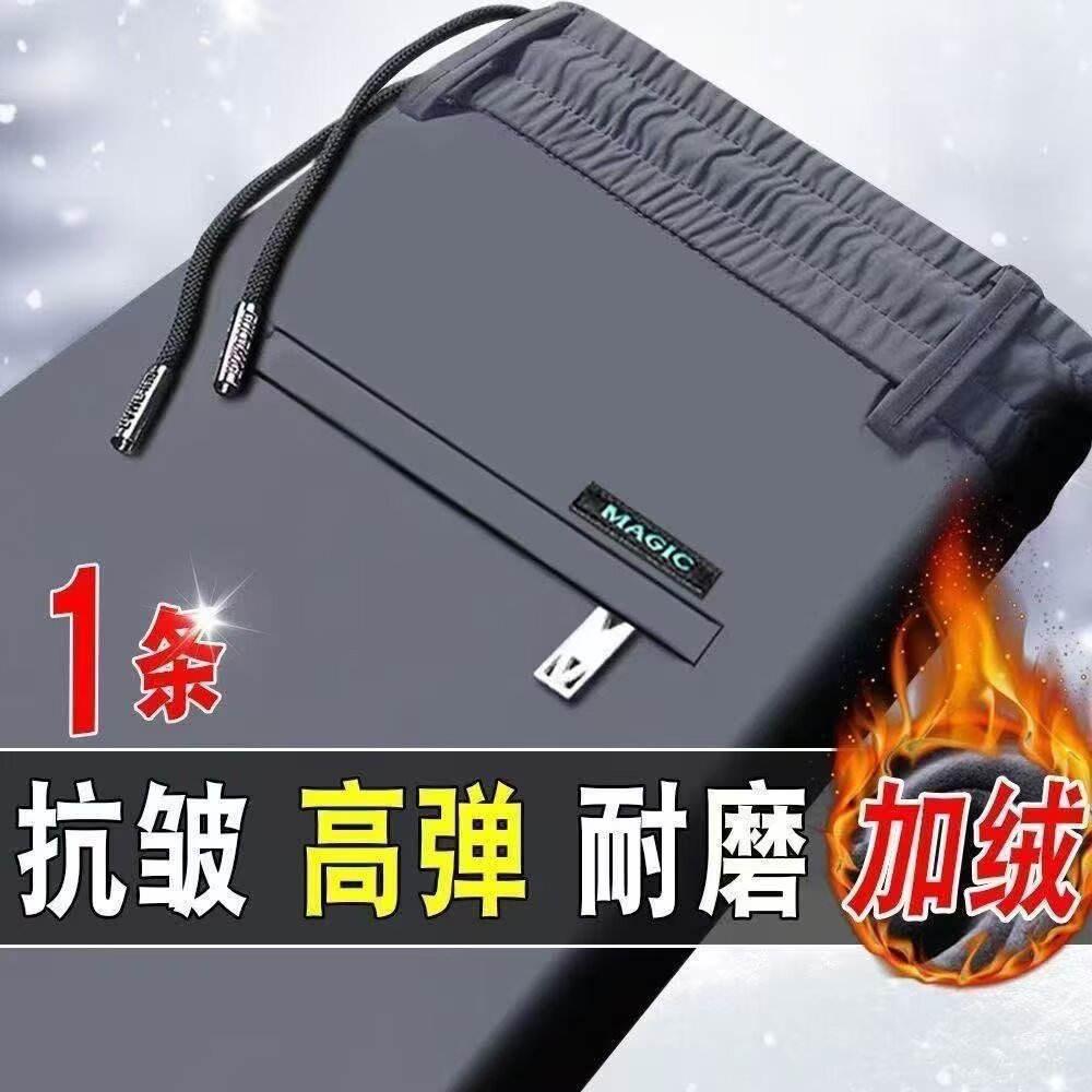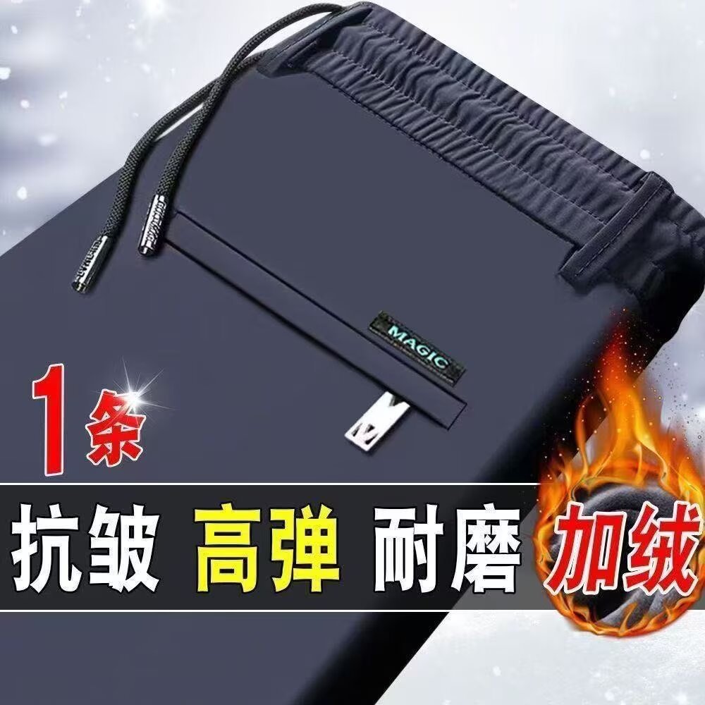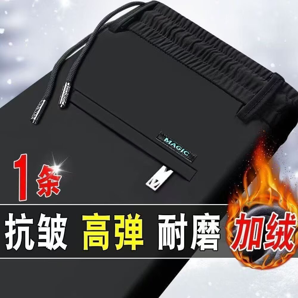 남성 캐주얼 바지 가을 겨울 벨벳 신축성 중년 남성 바지 새로운 스트레이트 비즈니스 바지 무압착 주름 방지 긴 바지