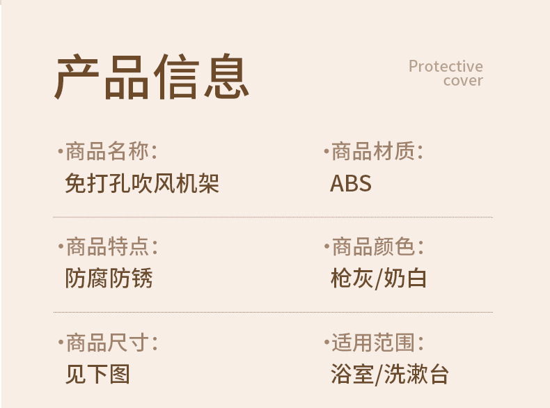 | 尺寸 | 枪灰-吹风机置物架(贴片款), 奶油白-吹风机置物架(贴片款) | 型号 | 135 |