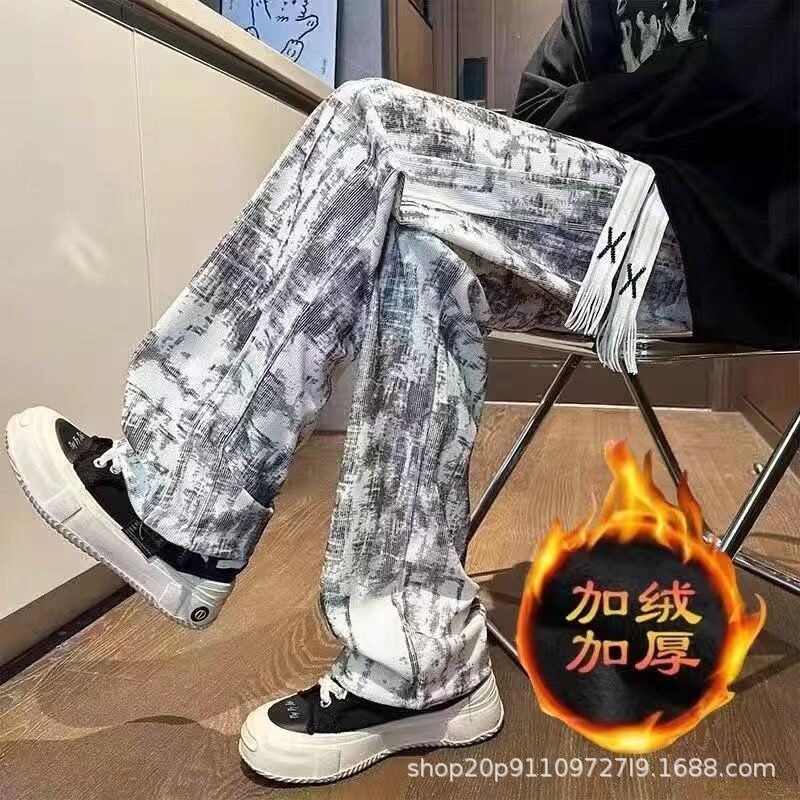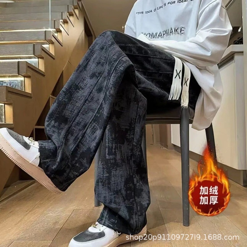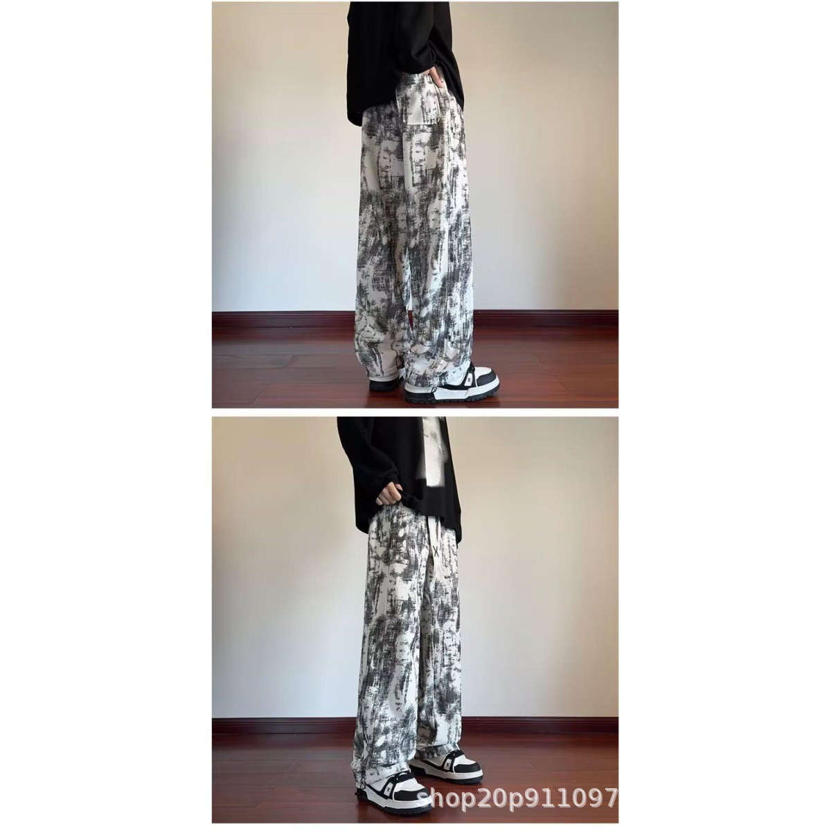 가을 남성용 니치 다이 드레이프 팬츠, 아메리칸 바이브 하이엔드 스웨트팬츠, 청소년 하이스트리트 와이드 레그 스웨트팬츠