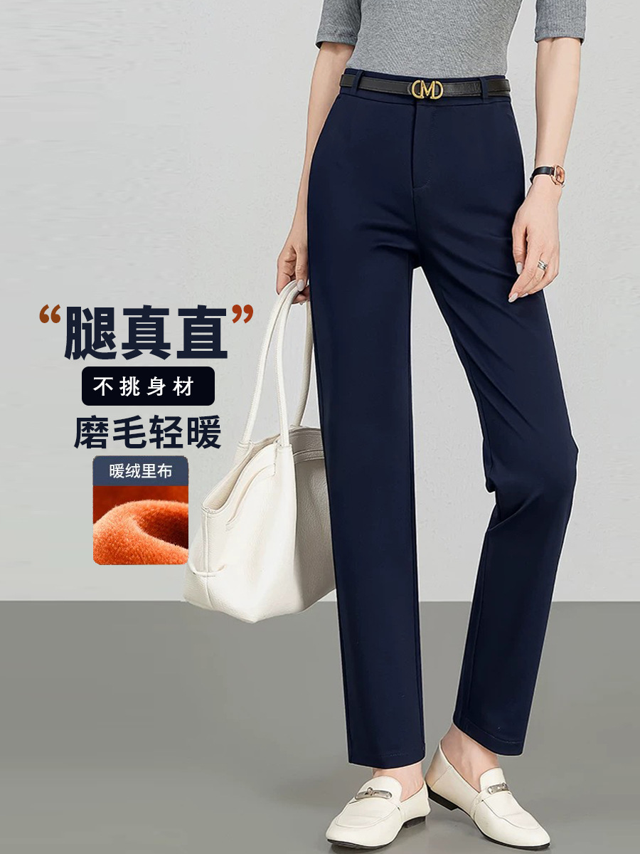 여성용 정장 바지 가을 겨울 신상 고급 슬림핏 스트레이트 팬츠 여성용 기모 두꺼운 드레이프 캐주얼 바지