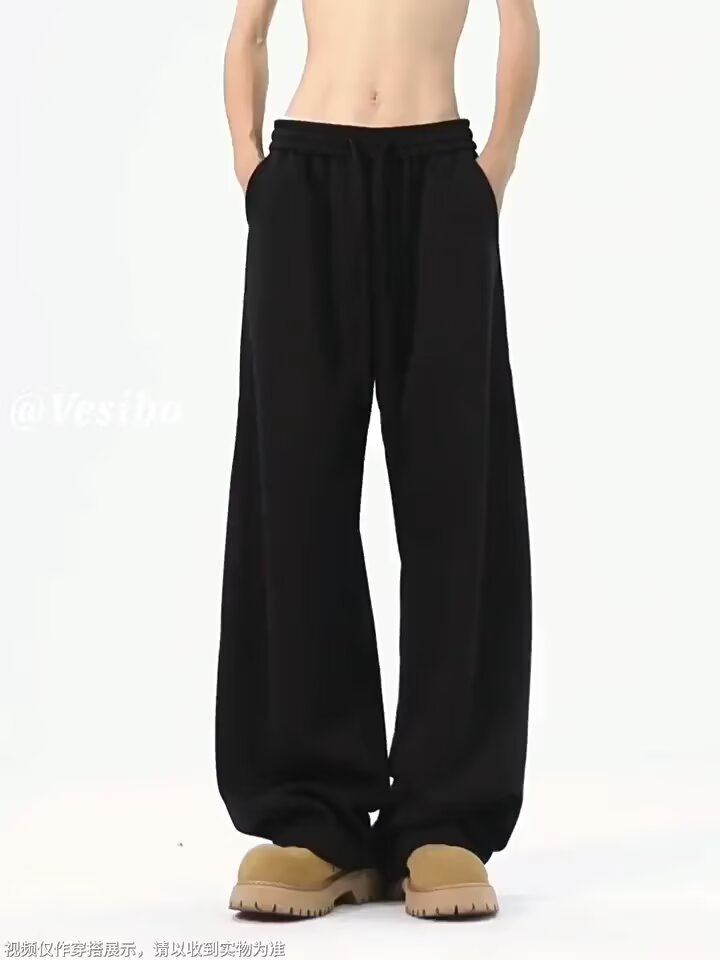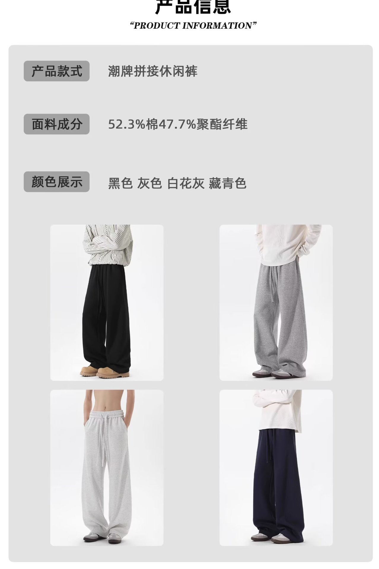 가을 트렌디 브랜드 스플라이스 와이드 레그 스웨트팬츠 레트로 드레이프 다용도 캐주얼 팬츠 남성용 아메리칸 헤비웨이트 세이버 스웨트팬츠